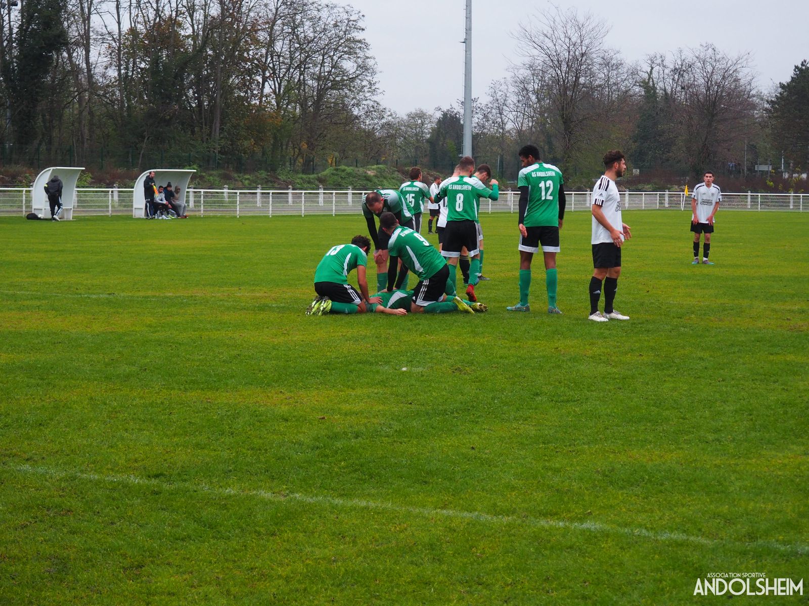 En ce dimanche humide et gris, notre équipe fanion reçoit l’entente WINTZFELDEN OSENBACH qui caracole en tête du championnat de D3. Cette équipe fait peur à tout le monde. Enfin presque tout le monde, car l’ASA les a battu à domicile le 28 Février dernier. Les verts n’ont plus peur de personne : qu’on se le dise, depuis les sudistes de Heiteren jusqu’au nordistes de KB en passant par les vignerons de Wettolsheim, de Wintzenheim et d’ailleurs ! L’ASA joue en vert : elle n’a donc jamais à rougir et devant personne ! Et ceci est valable des U7 aux vétérans. Bref, arbitrage officiel, ligne de touche surveillée par Serge, toujours aussi attentif. Première période en faveur des locaux. Très nombreuses actions dangereuses menées par Gabin, Micka, Josh, Flo et j’en oublie beaucoup. Pause. Cafés colombiens, sodas américains, boissons alsaciennes, vous connaissez le couplet. On note la visite remarquée de l’adjoint au maire Raymond HUSSER qui vient très gentiment, et avec sa bonne humeur légendaire, nous apporter les encouragements de la municipalité. On remet ça dans la bonne humeur mais boum, sur une petite erreur « gardien et défense réunies », et ça arrive même aux plus grands, les visiteurs trouvent nos filets à la 50éme. On mène 12 actions chaudes à 6 mais au score ce sont les blancs qui mènent : « eh mince » pour rester poli… La suite ? L’ASA ne rougit pas, elle réagit ! Loïk et Lucas da Costa sont rentrés, on ne lâche rien et l’AS ANDOLSHEIM se bat sur chaque balle. A l’image de furieux débordements sur l’aile gauche, notamment une percée d’Adam qui est fauché dans la surface, mais sans sanction. Pas de VAR , pas de péno, c’est le foot amateur…la gagne se fait donc à la sueur, pas sur un tapis vert dans un camion climatisé avec 6 experts qui regardent en boucle 40 fois une séquence vidéo de 4 secondes… C’est qu’un jeu après tout, dédramatisons. D’ailleurs Adam partage cette philosophie qui ne se plaint pas et reprend son match. 80 ème minute, cardiaques s’abstenir : un blanc est seul face à notre gardien suite à une magnifique attaque éclair de Wintzfelden Osenbach. « Osenbach-era t il » marquer ? Eh bien non, il « n’osenbach » pas ! Ou plutôt, c’est notre gardien Vincent qui « ose » l’arrêter ! On a eu chaud et il reste 10 minutes. Puis 5 seulement. Et but de Mickael ! Mais on a une « punaise » d’équipe, toujours pour rester poli ! Notre gardien Jean-François, toujours convalescent, et qui est venu en famille, crie de joie comme tout le monde : l’ASA l’a fait ! Quel weekend : 4 points et 4 buts en 72 heures, qui dit mieux ? Personne, et c’est pour ça qu’on a jamais à rougir. Rendez-vous à Wettolsheim dimanche prochain et toujours en championnat. Allons-nous faire de l’ombre à la coupe du monde ? Plus sérieusement , et pour finir, je dédie cet article au comité, aux citoyens d’ANDOLSHEIM, à tous les bénévoles, à tous les parents et à tous les joueurs de toutes les équipes de l’ASA. Une belle performance des seniors 1 le dimanche après-midi est toujours votre victoire, à vous tous, ne l’oubliez jamais, alors bravo, à vous tous, et merci, à vous tous !