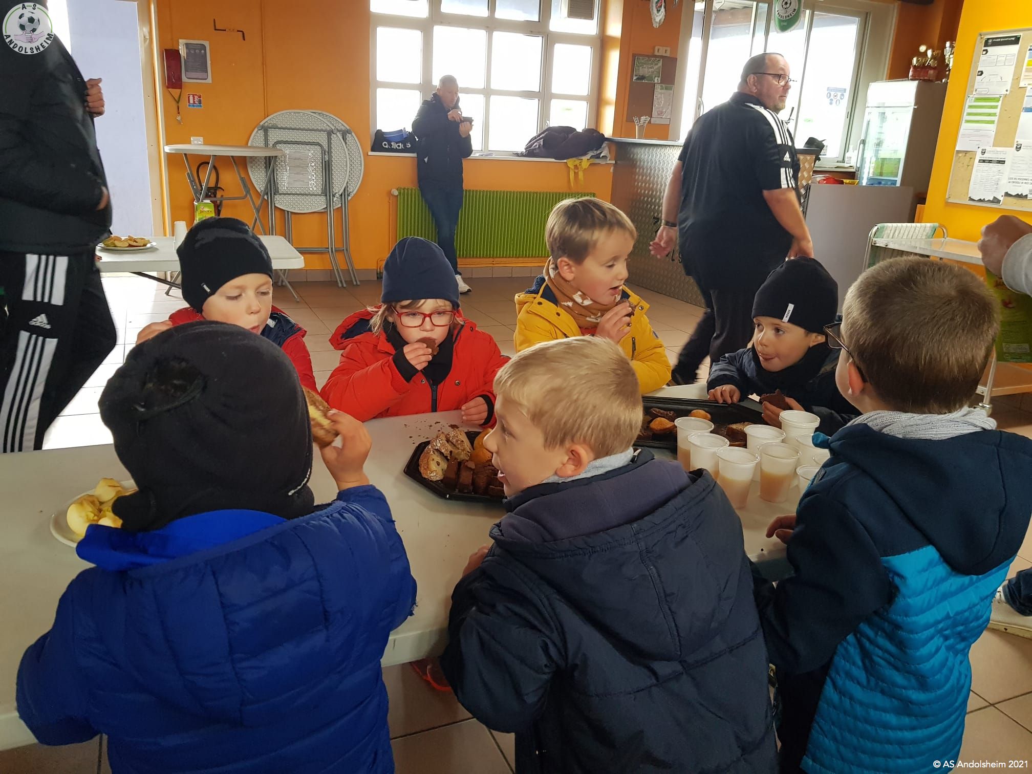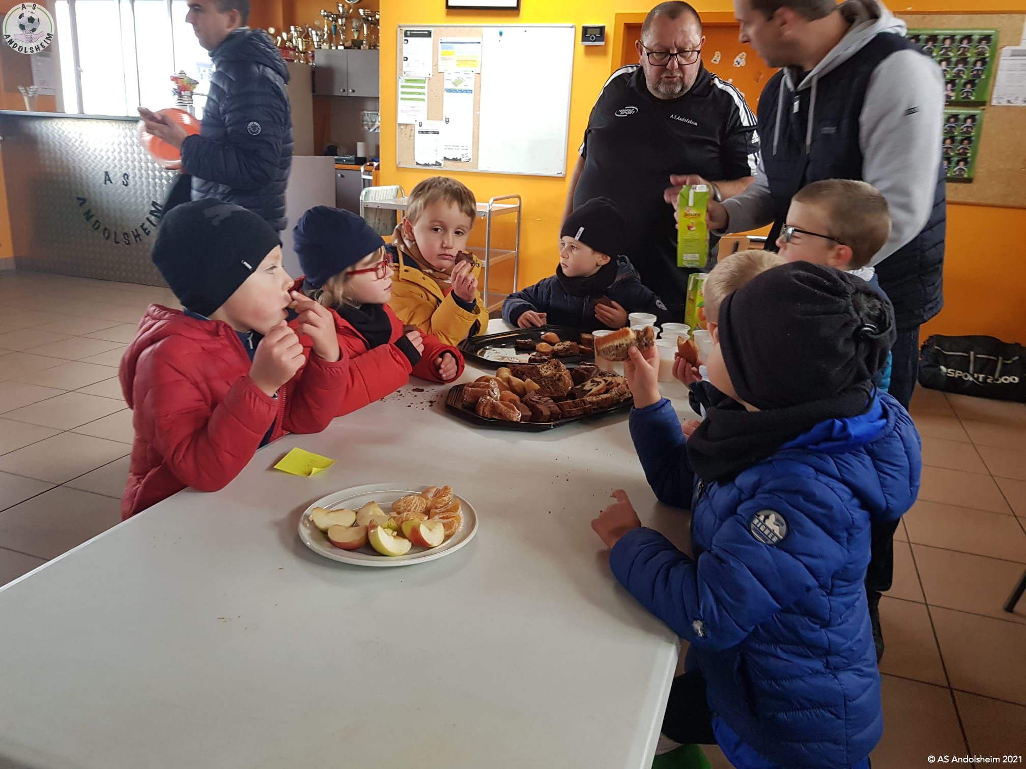 Bonjour, résumé de ce tournoi U7 à domicile, qui s'est déroulé sous des nuages bas et température fraîche. Mais cela n'a pas refroidi nos jeunes. Résultat 3 victoires et 3 "non victoire". Avec de belles phases de jeu collectives comme ce but qui vient après trois passes, bien sûr il y a encore du déchet, mais on peut féliciter les jeunes pour les progrès. Merci au U13 pour l'arbitrage, la famille Abraham pour l'intendance et les parents pour les gâteaux et encouragements et aux joueurs qui ont joué avec Biesheim car ils n'avaient pas assez de joueurs. Un coucou à Pascal et Éric bon week end.
