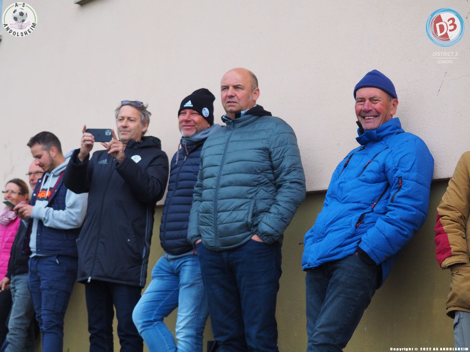 En ce dimanche présidentiel et pluvieux, notre équipe fanion visite la ville viticole de WETTOLSHEIM. La défaite à la maison du 31 octobre est encore dans toutes les mémoires. Mais, comme vous le savez, chers lecteurs assidus, les dimanches d’élection portent bonheur à l’ASA ! Et c’est pourquoi un kop nombreux, incluant notre président justement, fait le déplacement. A la 15 ème, JOSH marque sur un coup de pied arrêté provoqué par TOM. Comment résumer le reste du match ? Peu d’actions de part et d’autre, quelques vagues frayeurs en seconde période, aucun autre but pour les verts ou les rouges, un coup franc dangereux à la dernière minute contre l’ASA et c’est à peu près tout…Et bien entendu Laurie toujours aussi impérial , sur la ligne de touche opposée et 3 gouttes de pluie…Mais l’essentiel est ailleurs : l’équipe seniors 1 de l’ASA est comme un poisson (rouge) dans l’eau depuis le déclic du 27 février ! Cette équipe est méconnaissable et prend en moyenne deux points par match depuis deux mois, alors, le style, franchement, on laisse ça aux commentateurs désœuvrés et on ne fait pas la fine bouche…Et si on prend 3 points quand il tombe 3 gouttes, au prochain match je chante !
