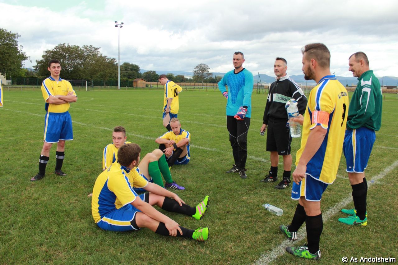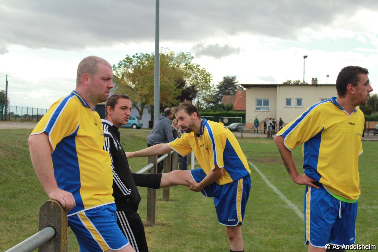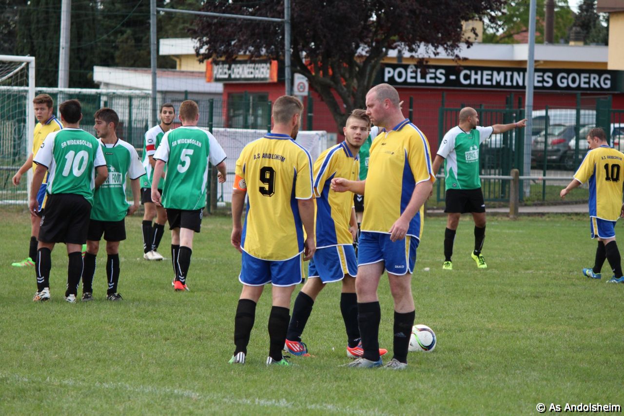 C'est pourtant l'une des règles de base du football moderne, avec deux mi-temps de 45 minutes et nos verts (en jaunes pour l'occasion) avaient au moins fait presque jeu égal à la pause avec un score plutôt flatteur de 2 buts à 1 pour le Sr Widensolen ... mais il semblerait à la mi-temps que notre gardien local, ayant terminé sa nuit sur le parking du stade , ai subitement eu le coup du barre du jet-lag d'une soirée arrosée annonciateur d'une deuxième mi temps à sens unique .. défaite 6 à 1 au final.