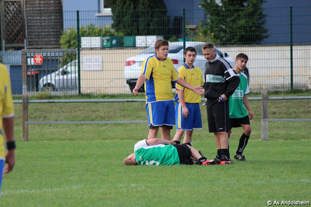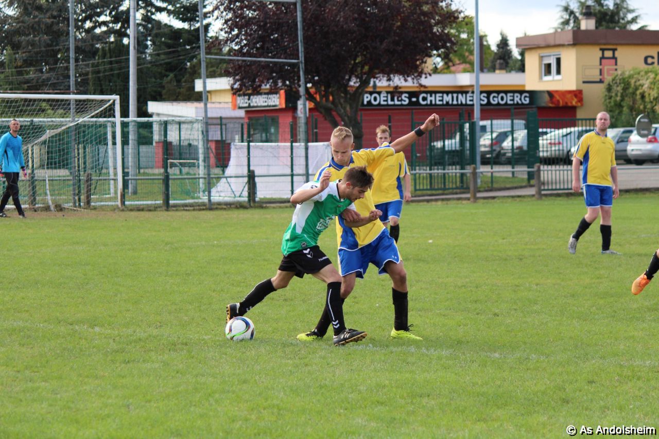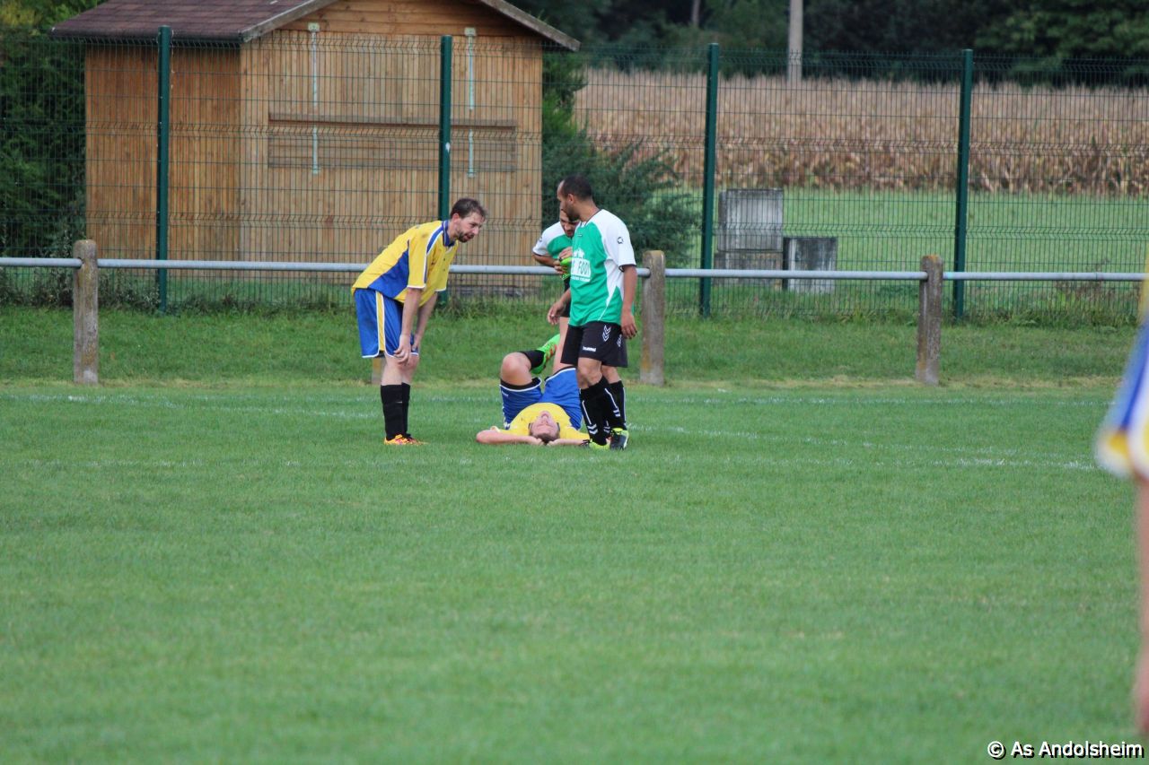 C'est pourtant l'une des règles de base du football moderne, avec deux mi-temps de 45 minutes et nos verts (en jaunes pour l'occasion) avaient au moins fait presque jeu égal à la pause avec un score plutôt flatteur de 2 buts à 1 pour le Sr Widensolen ... mais il semblerait à la mi-temps que notre gardien local, ayant terminé sa nuit sur le parking du stade , ai subitement eu le coup du barre du jet-lag d'une soirée arrosée annonciateur d'une deuxième mi temps à sens unique .. défaite 6 à 1 au final.