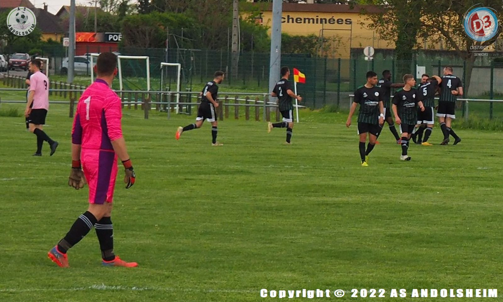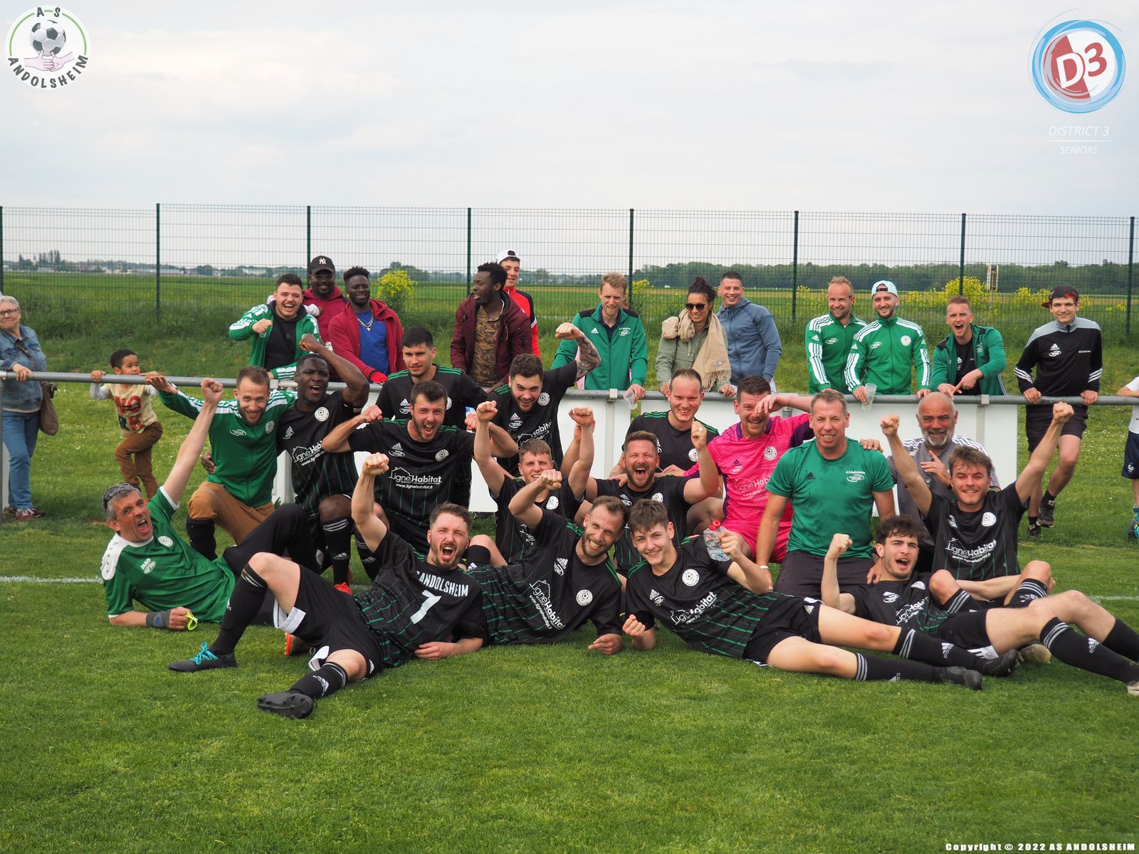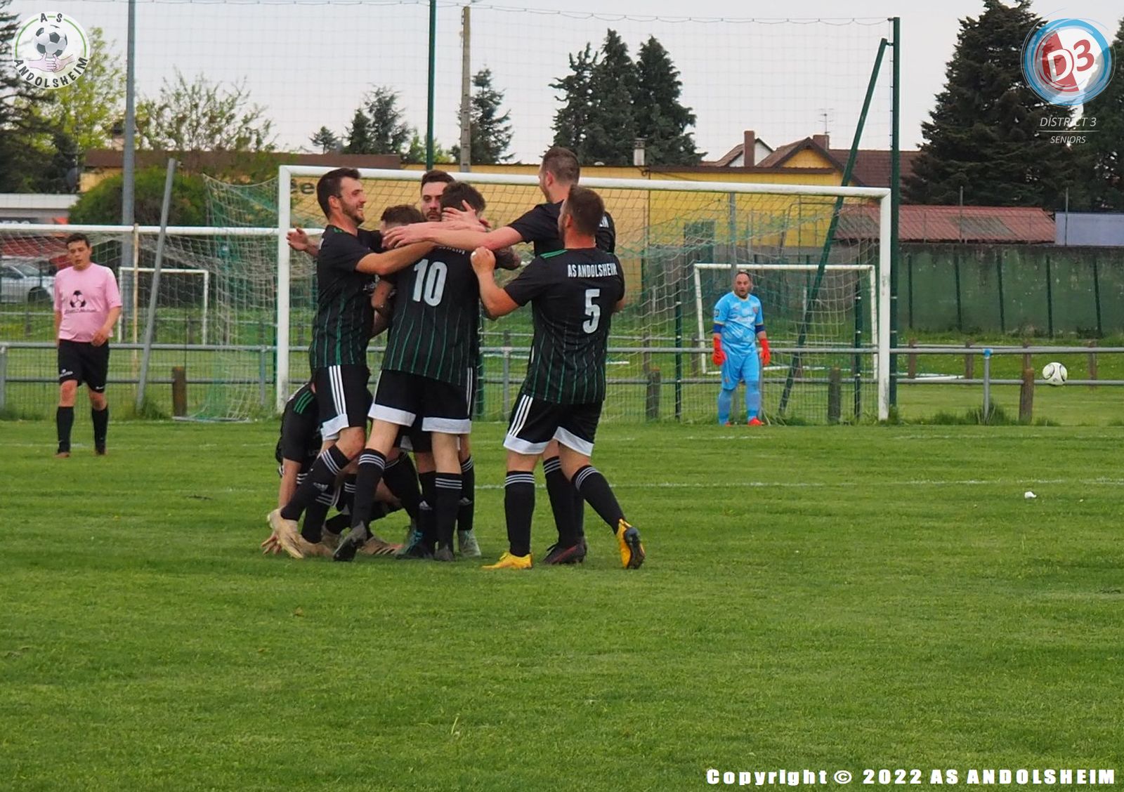 Dimanche 8 Mai, jour de la victoire de 1945, 100 jours après la libération de l’Alsace et 300 jours avant la fondation de l’AS Andolsheim… Et justement, Dimanche 8 mai, les 3 équipes Seniors de l’ASA gagnent leur match ! Une journée de victoires éclatantes sous un soleil tout aussi éclatant. Une journée de sueur, de coups, de buts, de camaraderie et de boissons alsaciennes pour fêter de beaux scores. Une journée d’encouragements amicaux, familiaux et fraternels. Une journée de sport et de joie. Tous les jours, chacun de nous est fier de faire partie de l’AS Andolsheim mais, en plus de cela, certains jours, chacun de nous en est très, très heureux….Mais revenons aux Seniors 1 qui reçoivent le leader, Gundolsheim, tenu en échec, chez eux, avant la trêve. Ce 1 partout avait été le premier déclic de l’ASA, celui qui allait nous mettre en confiance. Gundolsheim le sait, tout comme nos lecteurs : l’équipe de Gilles Laganne a fait sa mue depuis novembre, elle ne craint plus personne, pas même le leader ! Et boum, à la 23 eme, c’est Ben, qui avait marqué à Gundolsheim, qui remet ça ! Puis Gabin à la 35 eme et la 65 eme ! Le reste du match ? Ecrasante domination verte : territoriale, technique, tactique, mentale et même dans le fair play. Et le score le prouve : 3 à rien ! Bref, les verts font de nouveau le plein de victoires et de points, en ce 8 mai , et le coach résume ainsi le chemin accompli : « j’ai récupéré un groupe qui avait du potentiel, j’ai travaillé pour l’améliorer et maintenant je veux les aider à consolider ces acquis ». Messieurs, en ce jour de victoire, vous savez quoi ? Bravo et Merci !