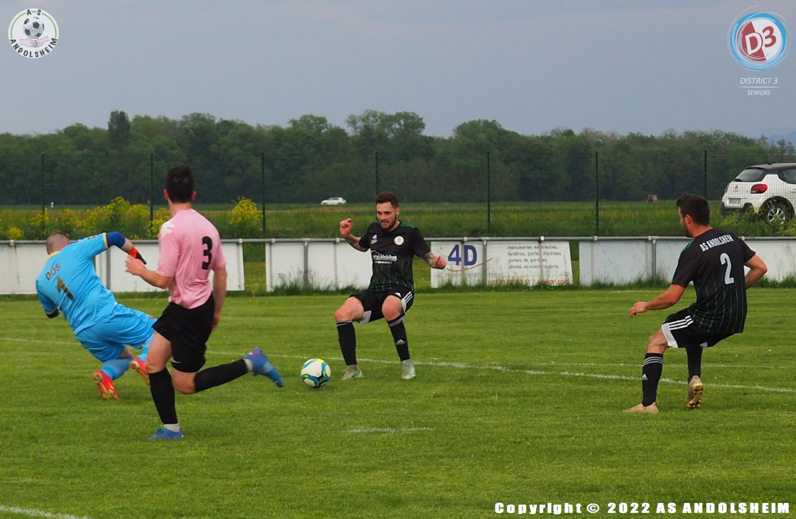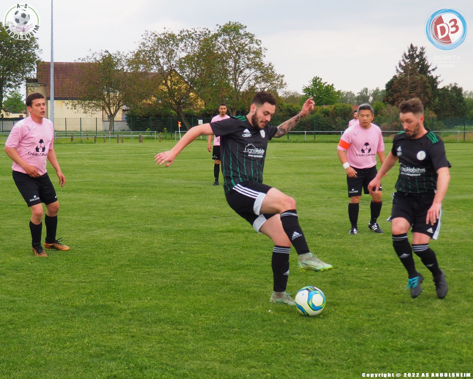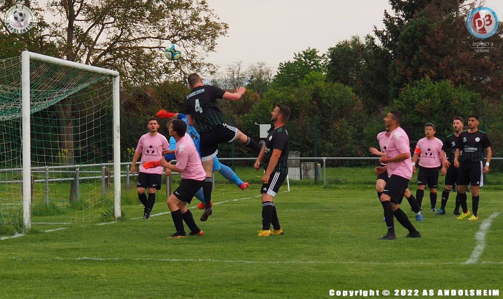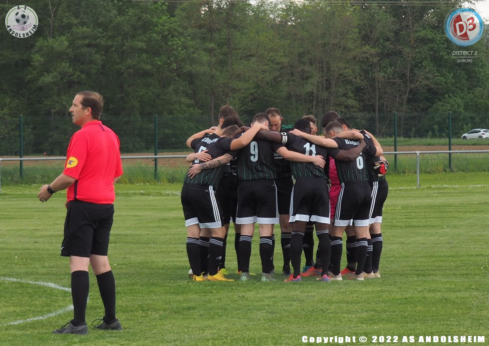 Dimanche 8 Mai, jour de la victoire de 1945, 100 jours après la libération de l’Alsace et 300 jours avant la fondation de l’AS Andolsheim… Et justement, Dimanche 8 mai, les 3 équipes Seniors de l’ASA gagnent leur match ! Une journée de victoires éclatantes sous un soleil tout aussi éclatant. Une journée de sueur, de coups, de buts, de camaraderie et de boissons alsaciennes pour fêter de beaux scores. Une journée d’encouragements amicaux, familiaux et fraternels. Une journée de sport et de joie. Tous les jours, chacun de nous est fier de faire partie de l’AS Andolsheim mais, en plus de cela, certains jours, chacun de nous en est très, très heureux….Mais revenons aux Seniors 1 qui reçoivent le leader, Gundolsheim, tenu en échec, chez eux, avant la trêve. Ce 1 partout avait été le premier déclic de l’ASA, celui qui allait nous mettre en confiance. Gundolsheim le sait, tout comme nos lecteurs : l’équipe de Gilles Laganne a fait sa mue depuis novembre, elle ne craint plus personne, pas même le leader ! Et boum, à la 23 eme, c’est Ben, qui avait marqué à Gundolsheim, qui remet ça ! Puis Gabin à la 35 eme et la 65 eme ! Le reste du match ? Ecrasante domination verte : territoriale, technique, tactique, mentale et même dans le fair play. Et le score le prouve : 3 à rien ! Bref, les verts font de nouveau le plein de victoires et de points, en ce 8 mai , et le coach résume ainsi le chemin accompli : « j’ai récupéré un groupe qui avait du potentiel, j’ai travaillé pour l’améliorer et maintenant je veux les aider à consolider ces acquis ». Messieurs, en ce jour de victoire, vous savez quoi ? Bravo et Merci !