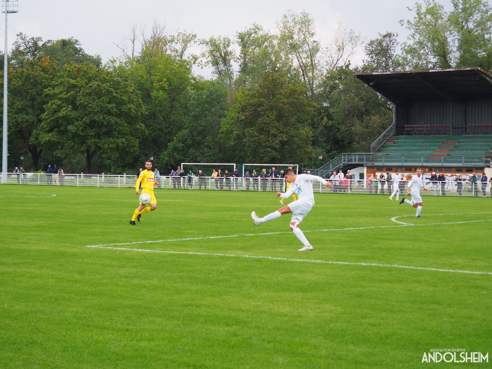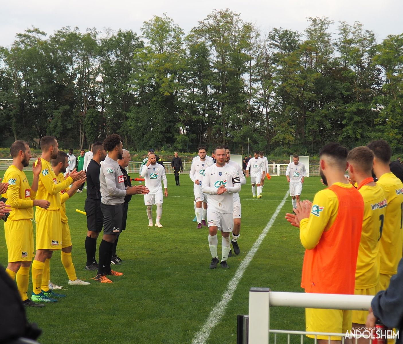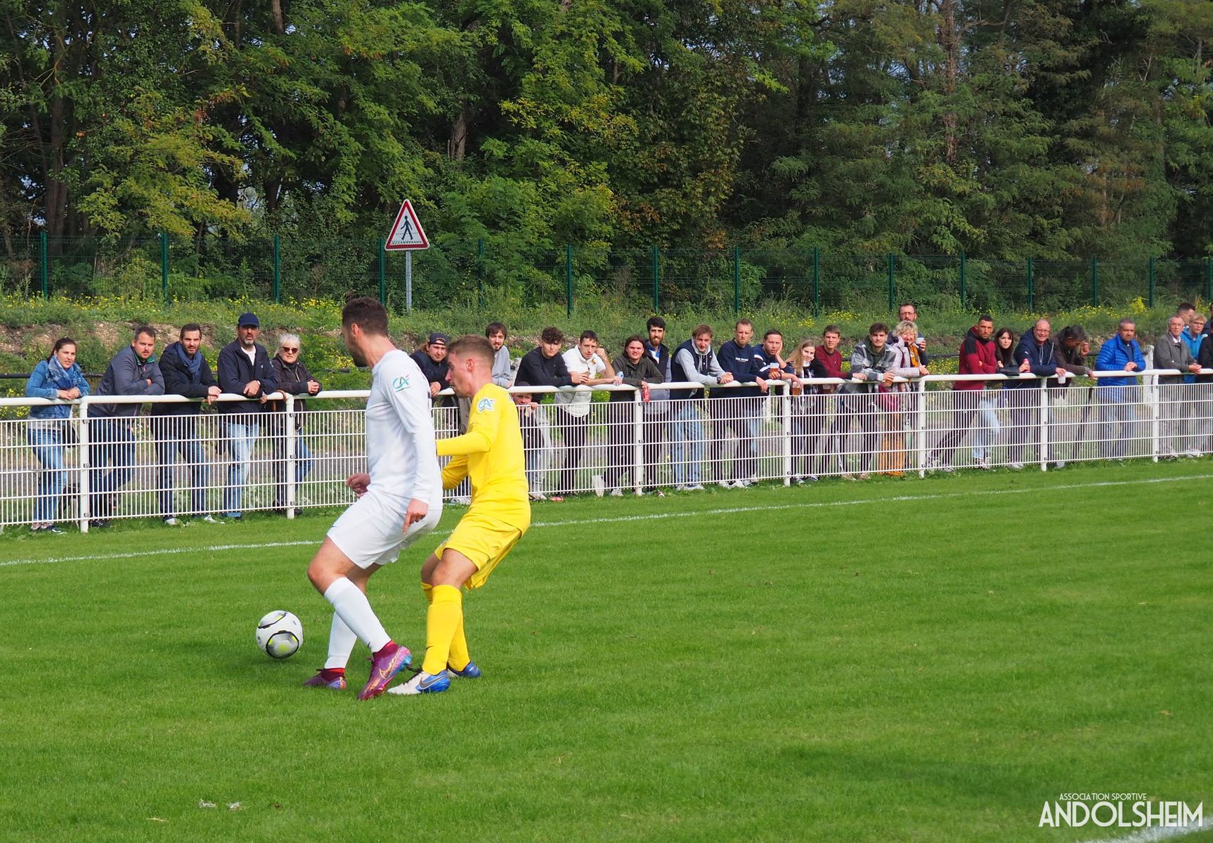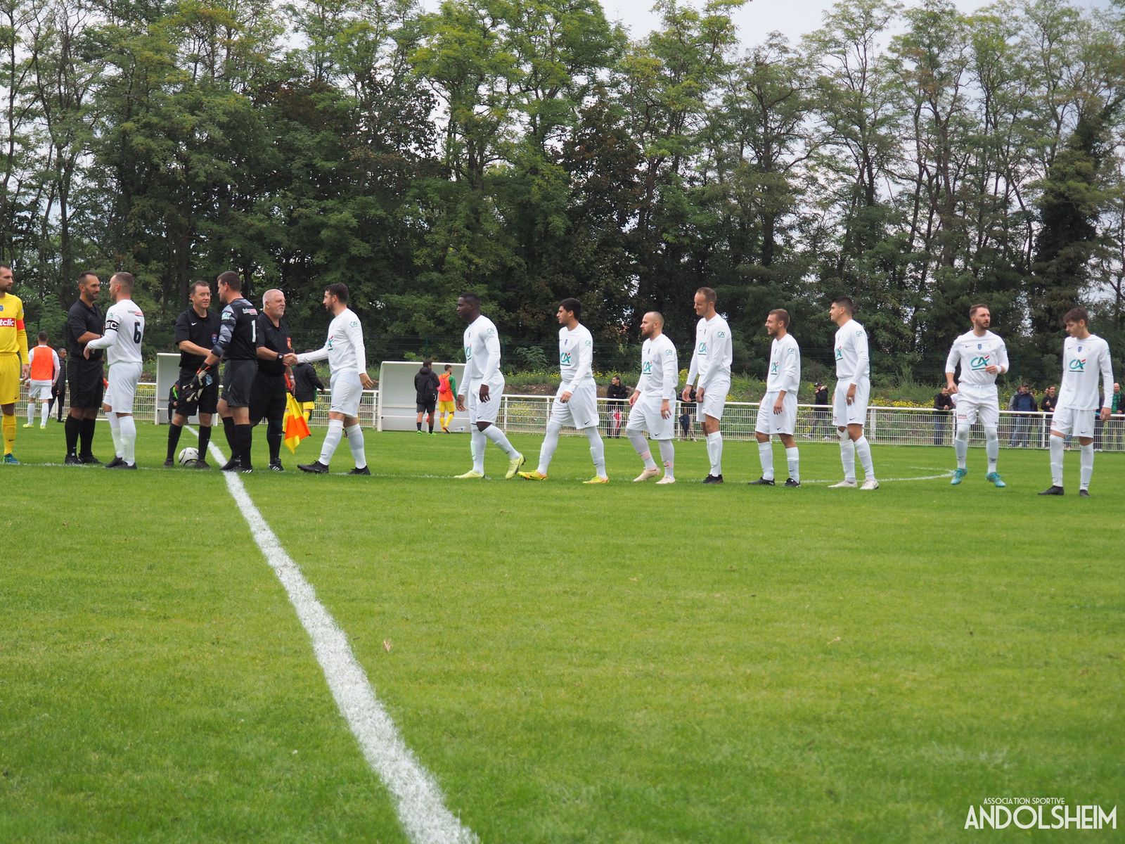 Dimanche après-midi d’abord gris puis ensoleillé pour la réception du FC Bartenheim en ce 4ème tour de Coupe de France ! Plusieurs centaines de spectateurs présents, à commencer par les 2 premiers magistrats de la ville : le maire d’Andolsheim Christian Rebert et son adjoint Raymond Husser. On a donc des spectateurs très officiels et des arbitres tout aussi officiels, pour le champ, et même aussi pour les touches ! Les 20 premières minutes sont à l’avantage des visiteurs. L’ASA joue dans sa propre moitié de terrain. Le pressing des jaunes est constant. Logiquement, les pensionnaires de régionale 2 trouvent nos filets. Nous sommes menés d'un but et réagissons très bien : les blancs de l’ASA franchissent désormais régulièrement la ligne médiane et sont même à un doigt de l’égalisation… Le gardien de Bartenheim, menacé par une balle aérienne dangereuse, rentre dans ses propres cages… Et avec le ballon ! Mais pas complètement selon les arbitres, qui ne valident pas ce but. Partons dans l’hypothèse qu’ils ont raison, c’est la base du respect pour l’arbitrage et la condition de l’avenir du football. D’ailleurs, personne ne conteste cette décision dans les secondes qui la suivent. Peu avant la pause Bartenheim remet ça : 0 - 2… Coup de sifflet, cafés colombiens, sodas américains, eaux minérales vosgiennes, boissons alsaciennes…. En seconde période le soleil revient dans le ciel et dans les cœurs : l’ASA tient bon, son gardien étant justement toujours aussi bon, et les locaux n’encaissent donc pas le moindre but de la 39e à la 94e minute. Et ça, vous savez quoi, ça porte un nom : ça s’appelle un exploit sportif. Quatre divisions d’écart… Pas une, pas deux, pas trois : 4 divisions d’écart et 55 minutes sans prendre un seul but. L’ASA l’a fait ! Et avec le fair-play en bonus : 2 biscottes seulement coté locaux, sensiblement pareil coté visiteur, même pas de quoi organiser un petit-déjeuner, bravo pour ce fair-play Messieurs. Alors, bien sûr, Gilles le coach et David son dirigeant vont tirer les enseignements de ce match. Selon ce dernier, il eut fallu « jouer plus libéré », peut-être avons-nous été un peu bloqués par l’enjeu et par le statut des visiteurs. Enregistré. Vivement la suite et la suite c’est la coupe d’Alsace, Messieurs bravo, merci, et à bientôt !