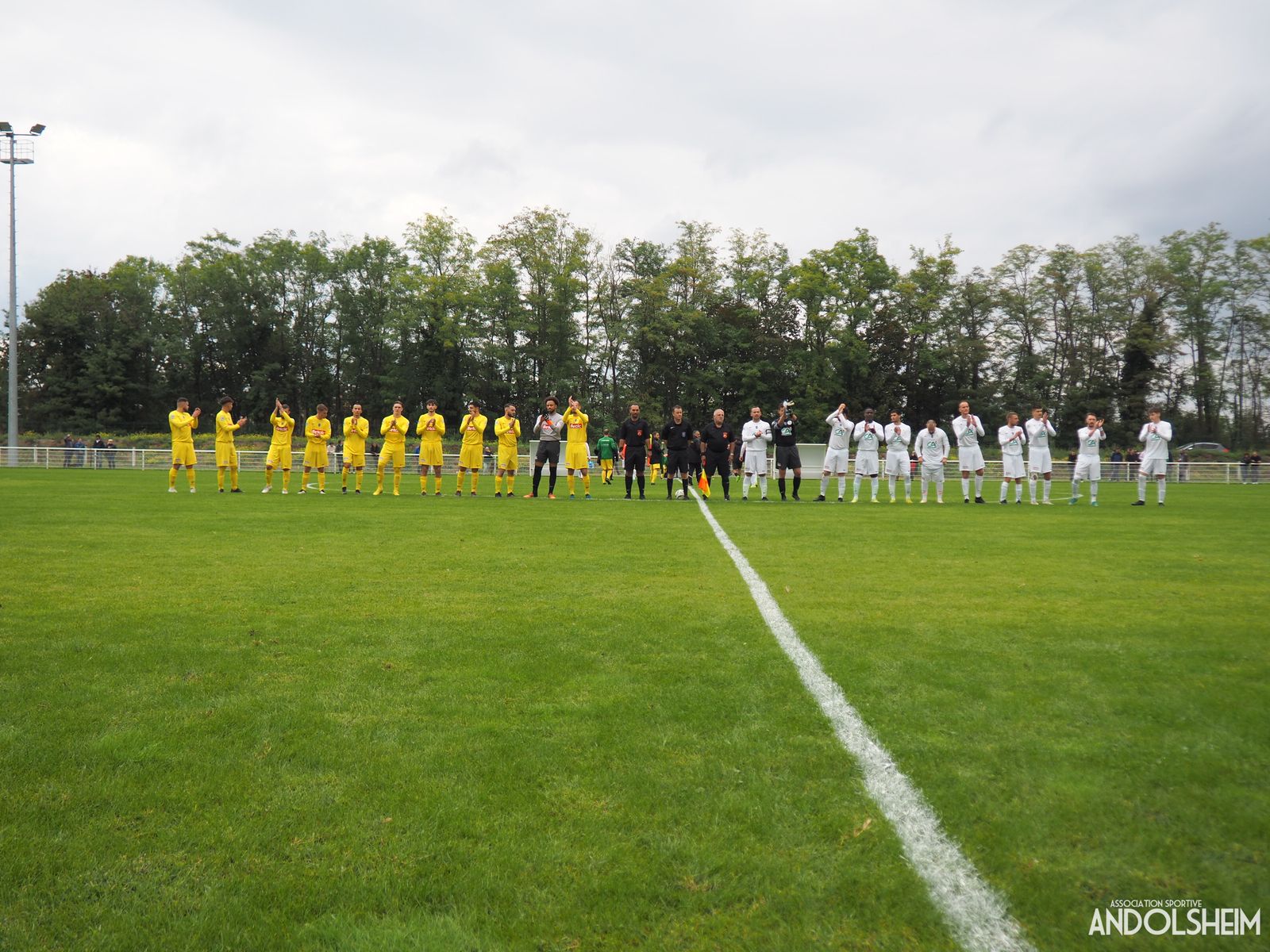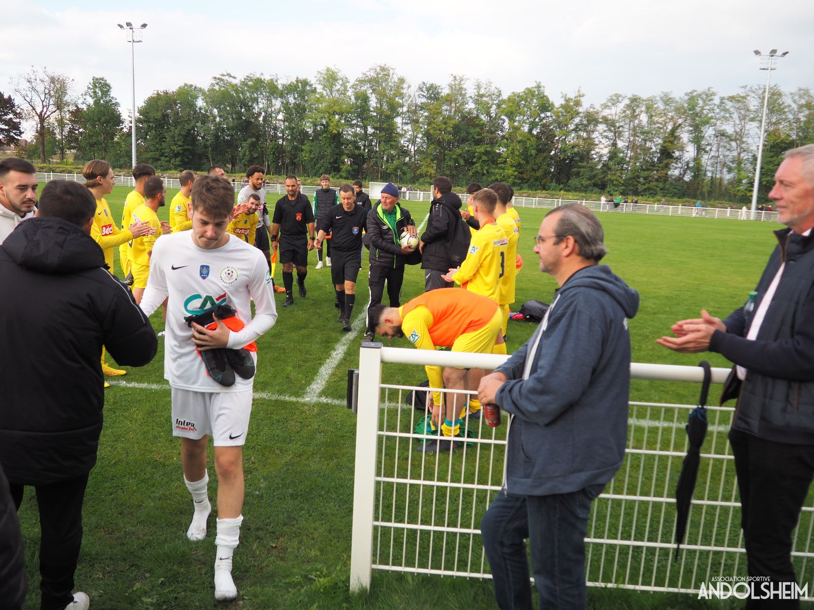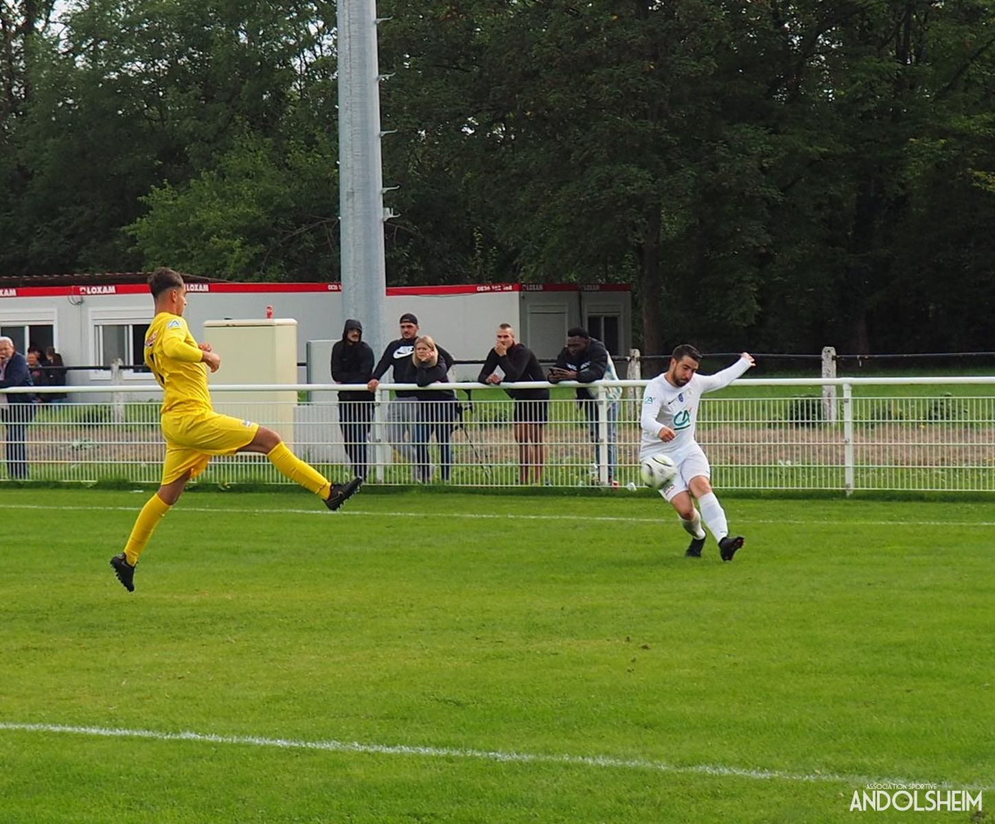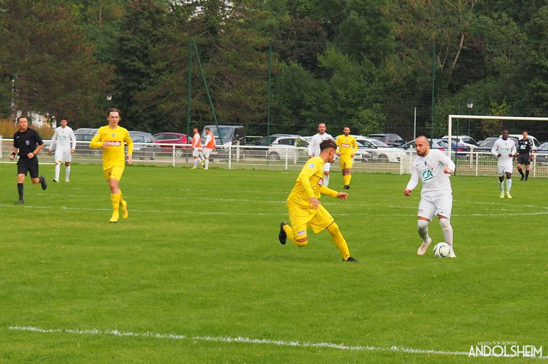 Dimanche après-midi d’abord gris puis ensoleillé pour la réception du FC Bartenheim en ce 4ème tour de Coupe de France ! Plusieurs centaines de spectateurs présents, à commencer par les 2 premiers magistrats de la ville : le maire d’Andolsheim Christian Rebert et son adjoint Raymond Husser. On a donc des spectateurs très officiels et des arbitres tout aussi officiels, pour le champ, et même aussi pour les touches ! Les 20 premières minutes sont à l’avantage des visiteurs. L’ASA joue dans sa propre moitié de terrain. Le pressing des jaunes est constant. Logiquement, les pensionnaires de régionale 2 trouvent nos filets. Nous sommes menés d'un but et réagissons très bien : les blancs de l’ASA franchissent désormais régulièrement la ligne médiane et sont même à un doigt de l’égalisation… Le gardien de Bartenheim, menacé par une balle aérienne dangereuse, rentre dans ses propres cages… Et avec le ballon ! Mais pas complètement selon les arbitres, qui ne valident pas ce but. Partons dans l’hypothèse qu’ils ont raison, c’est la base du respect pour l’arbitrage et la condition de l’avenir du football. D’ailleurs, personne ne conteste cette décision dans les secondes qui la suivent. Peu avant la pause Bartenheim remet ça : 0 - 2… Coup de sifflet, cafés colombiens, sodas américains, eaux minérales vosgiennes, boissons alsaciennes…. En seconde période le soleil revient dans le ciel et dans les cœurs : l’ASA tient bon, son gardien étant justement toujours aussi bon, et les locaux n’encaissent donc pas le moindre but de la 39e à la 94e minute. Et ça, vous savez quoi, ça porte un nom : ça s’appelle un exploit sportif. Quatre divisions d’écart… Pas une, pas deux, pas trois : 4 divisions d’écart et 55 minutes sans prendre un seul but. L’ASA l’a fait ! Et avec le fair-play en bonus : 2 biscottes seulement coté locaux, sensiblement pareil coté visiteur, même pas de quoi organiser un petit-déjeuner, bravo pour ce fair-play Messieurs. Alors, bien sûr, Gilles le coach et David son dirigeant vont tirer les enseignements de ce match. Selon ce dernier, il eut fallu « jouer plus libéré », peut-être avons-nous été un peu bloqués par l’enjeu et par le statut des visiteurs. Enregistré. Vivement la suite et la suite c’est la coupe d’Alsace, Messieurs bravo, merci, et à bientôt !
