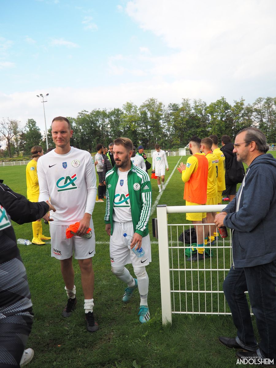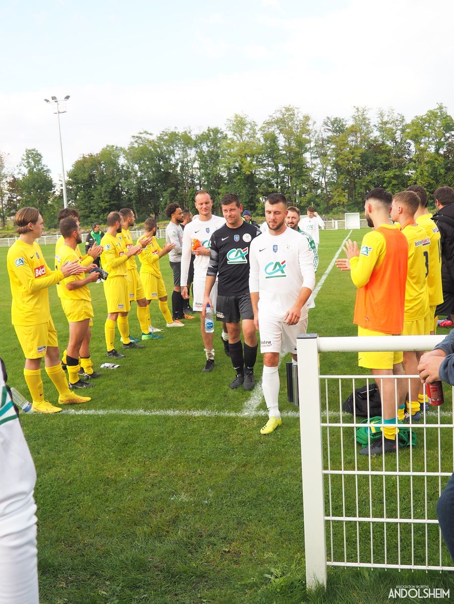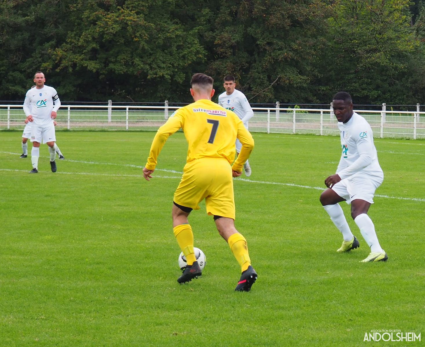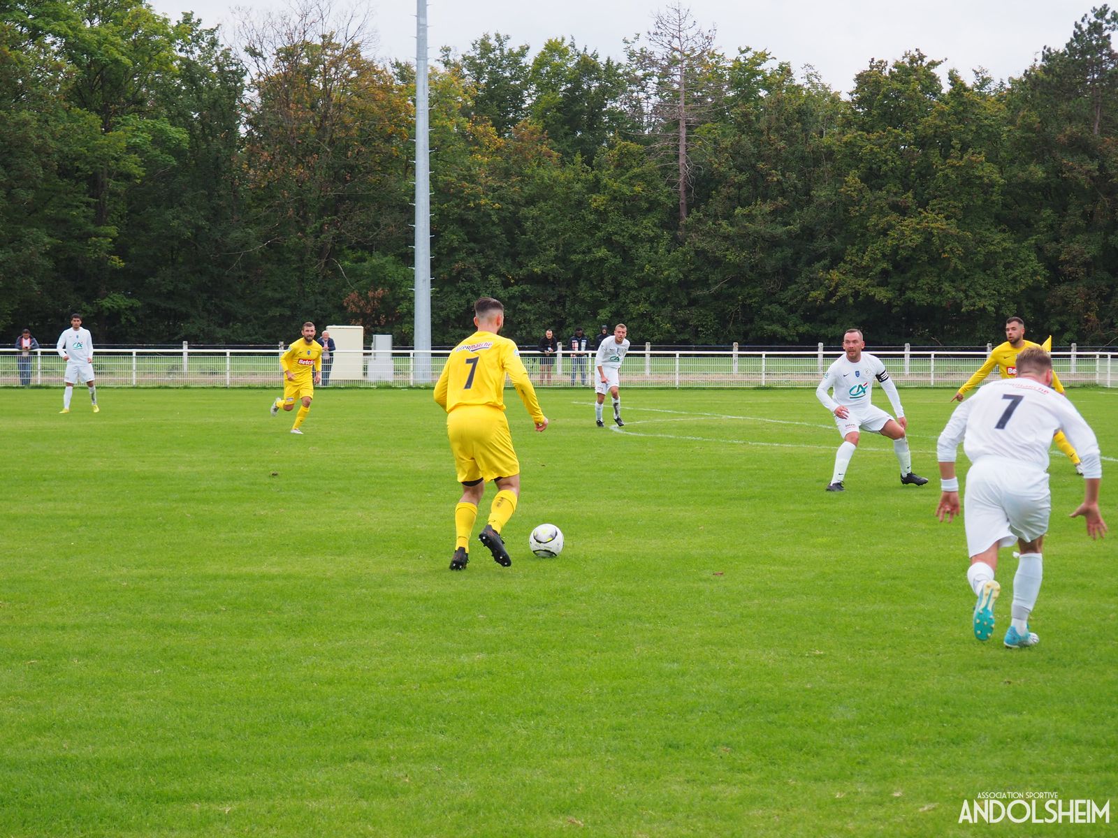 Dimanche après-midi d’abord gris puis ensoleillé pour la réception du FC Bartenheim en ce 4ème tour de Coupe de France ! Plusieurs centaines de spectateurs présents, à commencer par les 2 premiers magistrats de la ville : le maire d’Andolsheim Christian Rebert et son adjoint Raymond Husser. On a donc des spectateurs très officiels et des arbitres tout aussi officiels, pour le champ, et même aussi pour les touches ! Les 20 premières minutes sont à l’avantage des visiteurs. L’ASA joue dans sa propre moitié de terrain. Le pressing des jaunes est constant. Logiquement, les pensionnaires de régionale 2 trouvent nos filets. Nous sommes menés d'un but et réagissons très bien : les blancs de l’ASA franchissent désormais régulièrement la ligne médiane et sont même à un doigt de l’égalisation… Le gardien de Bartenheim, menacé par une balle aérienne dangereuse, rentre dans ses propres cages… Et avec le ballon ! Mais pas complètement selon les arbitres, qui ne valident pas ce but. Partons dans l’hypothèse qu’ils ont raison, c’est la base du respect pour l’arbitrage et la condition de l’avenir du football. D’ailleurs, personne ne conteste cette décision dans les secondes qui la suivent. Peu avant la pause Bartenheim remet ça : 0 - 2… Coup de sifflet, cafés colombiens, sodas américains, eaux minérales vosgiennes, boissons alsaciennes…. En seconde période le soleil revient dans le ciel et dans les cœurs : l’ASA tient bon, son gardien étant justement toujours aussi bon, et les locaux n’encaissent donc pas le moindre but de la 39e à la 94e minute. Et ça, vous savez quoi, ça porte un nom : ça s’appelle un exploit sportif. Quatre divisions d’écart… Pas une, pas deux, pas trois : 4 divisions d’écart et 55 minutes sans prendre un seul but. L’ASA l’a fait ! Et avec le fair-play en bonus : 2 biscottes seulement coté locaux, sensiblement pareil coté visiteur, même pas de quoi organiser un petit-déjeuner, bravo pour ce fair-play Messieurs. Alors, bien sûr, Gilles le coach et David son dirigeant vont tirer les enseignements de ce match. Selon ce dernier, il eut fallu « jouer plus libéré », peut-être avons-nous été un peu bloqués par l’enjeu et par le statut des visiteurs. Enregistré. Vivement la suite et la suite c’est la coupe d’Alsace, Messieurs bravo, merci, et à bientôt !