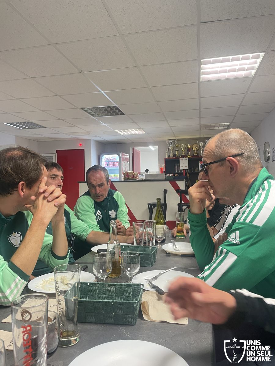 Merci au FC Soultz pour l’accueil, mais on est juste déçus de ne pas manger des boulettes. Ah, pardon, elles étaient sur le rectangle vert. Un peu de repos et on attend avec impatience notre match du 14 juin pour la fête du club pour trouver une autre recette.