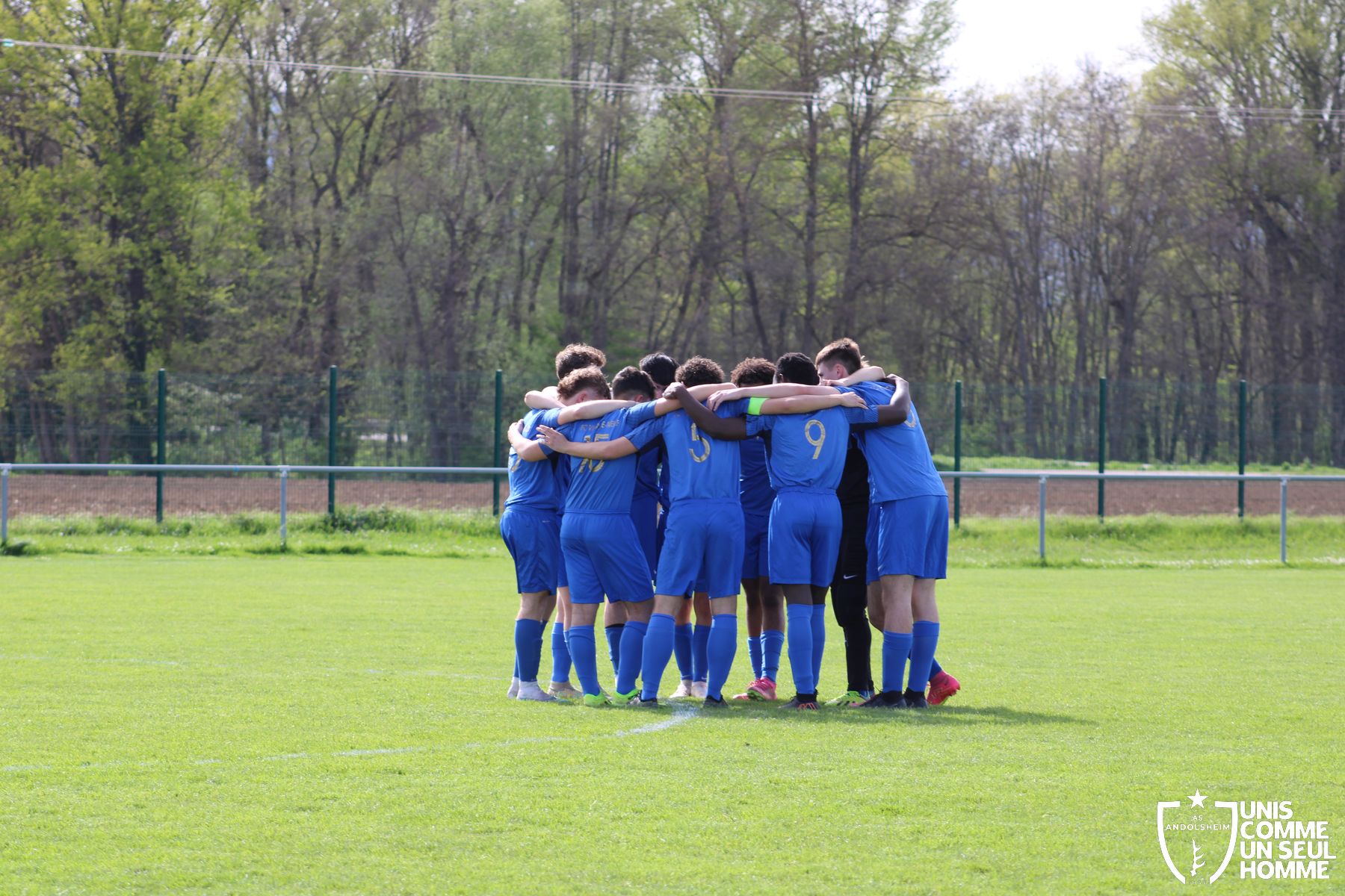 À la 80e un fait de jeu change le match. Notre capitaine Martin, suite à un gros contact doit sortir sur blessure. Nos verts sont piqués au vif et pousse pour égaliser. Et c'est à la dernière seconde, sur la dernière action qu'Antonin égalise sur un magistral coup-franc libérateur.