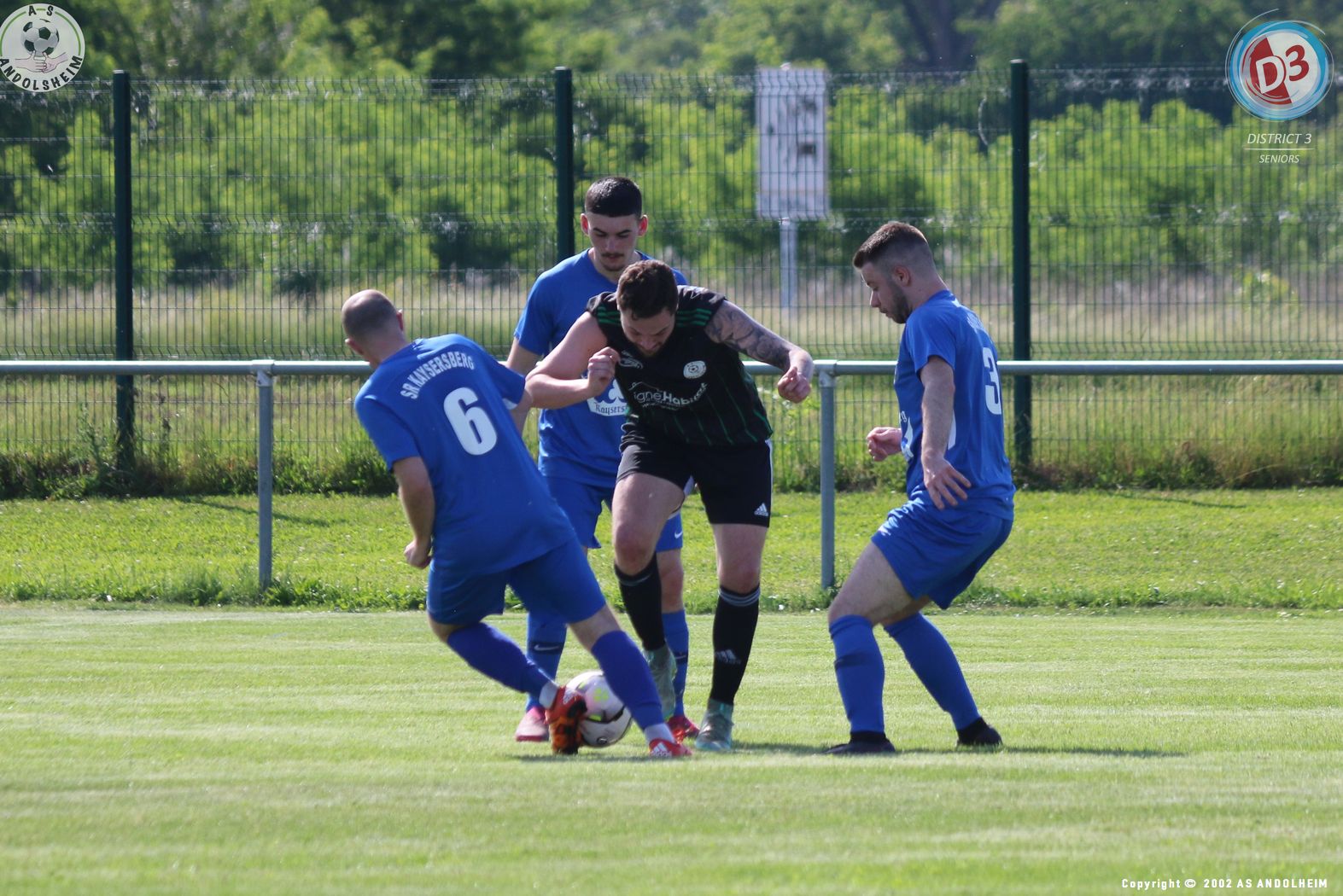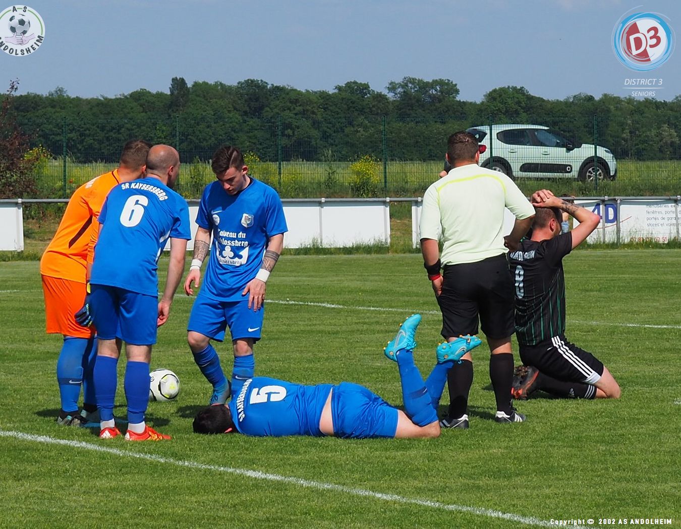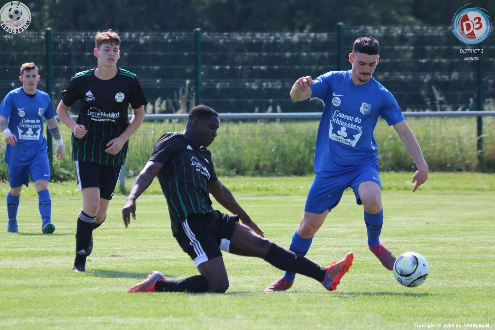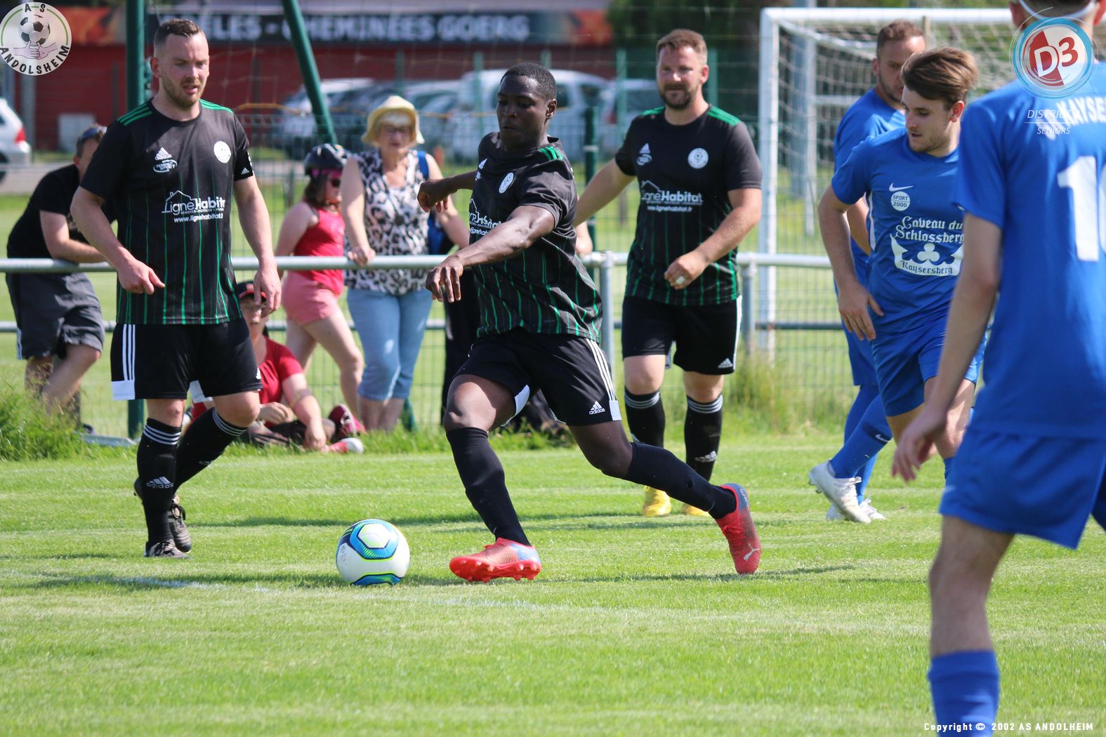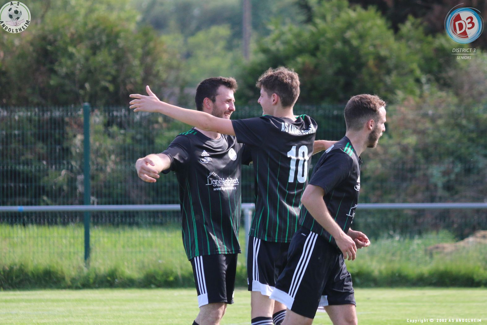 Nos seniors 1, qui évoluent en D3, reçoivent Kaysersberg en ce dimanche caniculaire. Comme nos chers lecteurs le savent, il faut remonter plusieurs mois en arrière pour trouver une défaite de notre équipe fanion. Cette équipe marche littéralement, sur l’eau…Et sans enlever ses crampons en plus ! Allons-nous remettre ça ? L’arbitre officiel, encore secondé par Laurie sur la ligne de touche, va-t-il encore signer une victoire verte sur la tablette ? Le kop vert va-t-il encore exploser ? Les visiteurs, vont-ils encore sérieusement songer à arrêter le foot, pour se rabattre sur le curling ou le tricot, après cette rencontre ? Attendons 90 minutes avant de répondre à toutes ces questions, Chers Lecteurs. Dès la 7ème minute, Florian ouvre le score. Bravo grand ! À la 35ème c’est Gabin qui double le score. On mène deux à rien et on rentre en pause ! Pour fêter les 69eme et 71eme minutes, Adam, notre éternel buteur, en colle deux aux bleus. 4 à 0 à un gros quart d'heure du terme, KB arrête de jouer et espère que le tir aux pigeons est terminé… Eh bien non, aujourd’hui, c’est fête foraine, kermesse, foire de printemps : Bryan, qui fait un match dingue, déborde sur l’aile gauche 2 minutes plus tard et rate de peu le cadre avec une frappe puissante, qui croyez-moi, percute violemment ma jambe. Julien expédie un tir puissant et c’est 5 – 0. Dix minutes plus tard on doit le 6 – 0 à Ben. Et enfin Loïc nettoie très proprement la lucarne droite à 5 minutes de la fin : 7 à 0 ! Des joies ? Énormes ! Des espoirs ? Gigantesques ! Des buts ? Plein ! Que demandez de plus, Messieurs Merci ! …Et bonne semaine à tous !