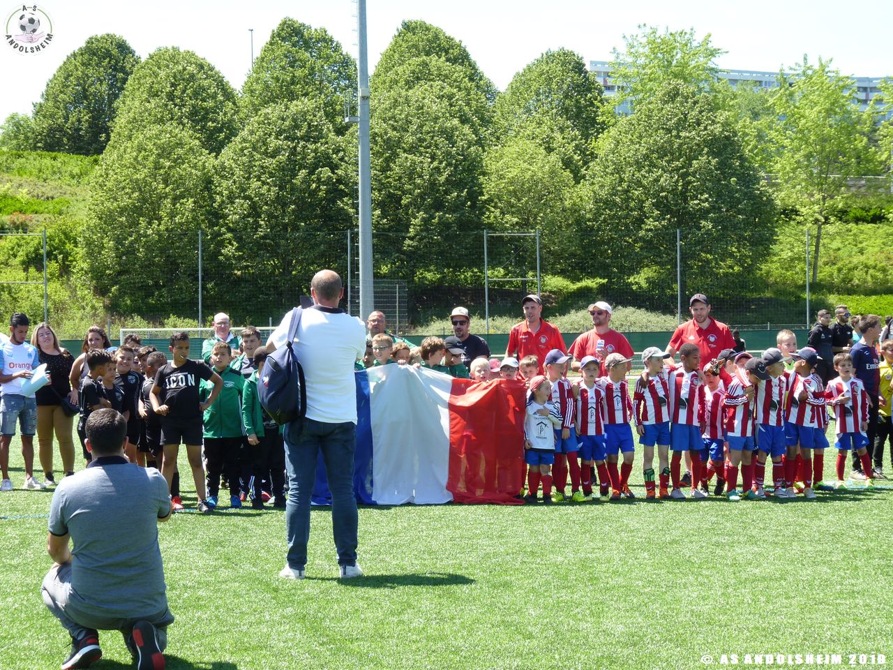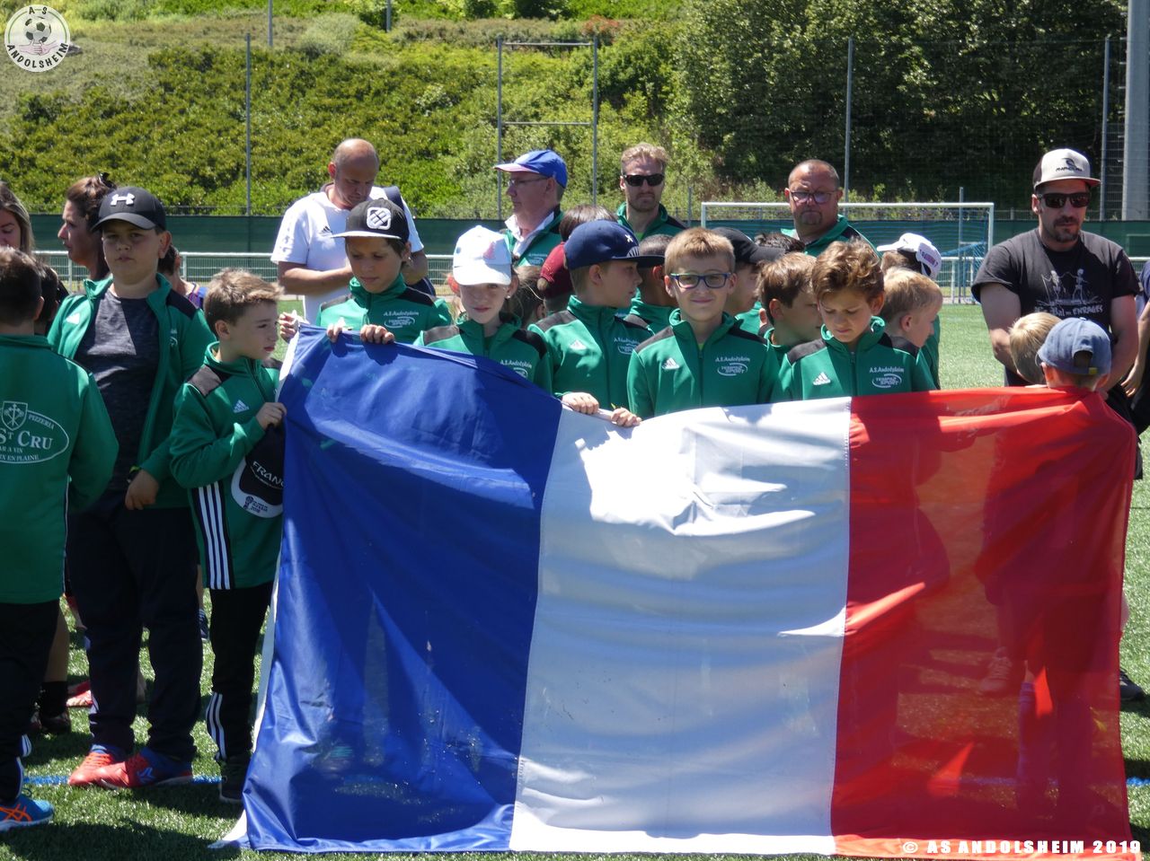 En début d’après-midi, tout comme les « pros », nos Verts ont participé au défilé de présentation des équipes qui les a amené jusqu’au terrain synthétique où un clapping a été organisé juste avant que ne retentissent les hymnes nationaux.