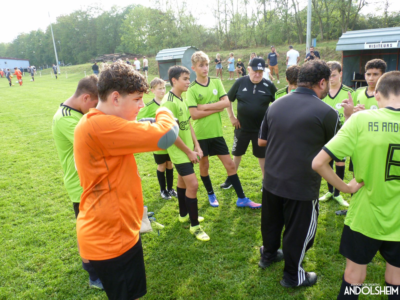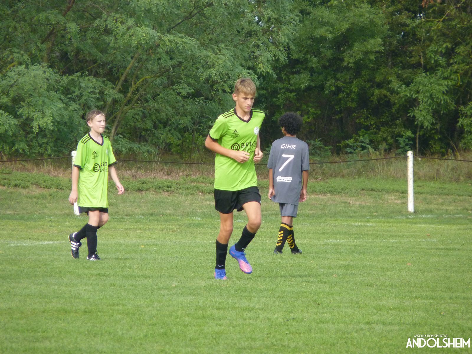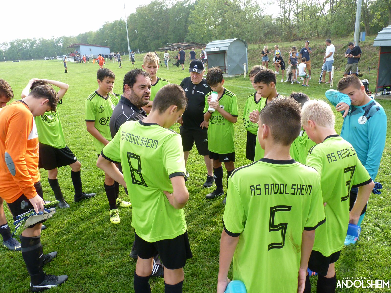 Nos U15 ont joué leur premier match amical de la saison contre le GIHR sur le terrain de Réguisheim, une pelouse bien verte sous une pluie durant la majorité de la rencontre. Thomas et Pierrot ont encadré l'équipe du jour, l'équipe n'étant pas définitive, ils ont mis en place une équipe bien compétitive. A la pause l'ASA mène au score 2-0, mais la seconde période était très intéressante sur l'attitude des verts. L'équipe recevante bien plus présente dans le jeu trouve le chemin des filets à 2 reprises, 2-2. L'ASA ne lâche pas, sur une belle frappe la balle se loge sous la transversale, 3-2. Il reste 3 minutes de jeu, le coach du GIHR a procédé à des changements, une équipe bien plus offensive qui égalise à nouveau. Nos verts engagent, sur un contre rapide Thibault mais la balle au fond de la cage adverse, victoire 4-3. A la fin de la rencontre Thomas conclut, "ce fût un match avec du beau jeu des 2 côtés, ce qu'il retient surtout, c'est que son équipe n'a rien lâché, ils ont joué jusqu'au bout de la rencontre, bravo à eux". Merci aux parents venus en nombre malgré la météo pour encourager nos verts. Allez les verts... Allez l'ASA!