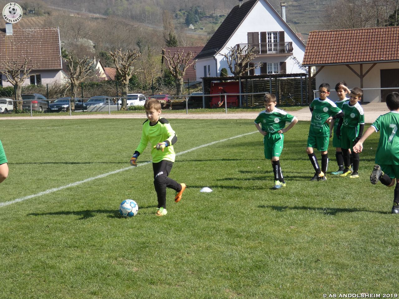 La cigogne « porte bonheur » était avec nos U11B en ce samedi ensoleillé sur le terrain du SR Kaysersberg.