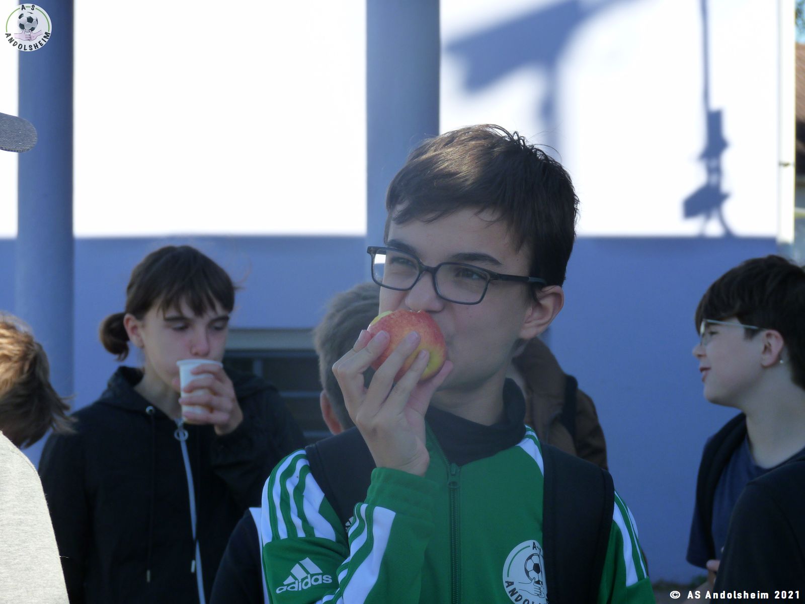 Les joueurs se sont retrouvés pour le goûter et déguster des gâteaux confectionnés par les mamans et de délicieuses pommes offertes par notre partenaire des U13 la Pommeraie à Sigolsheim.