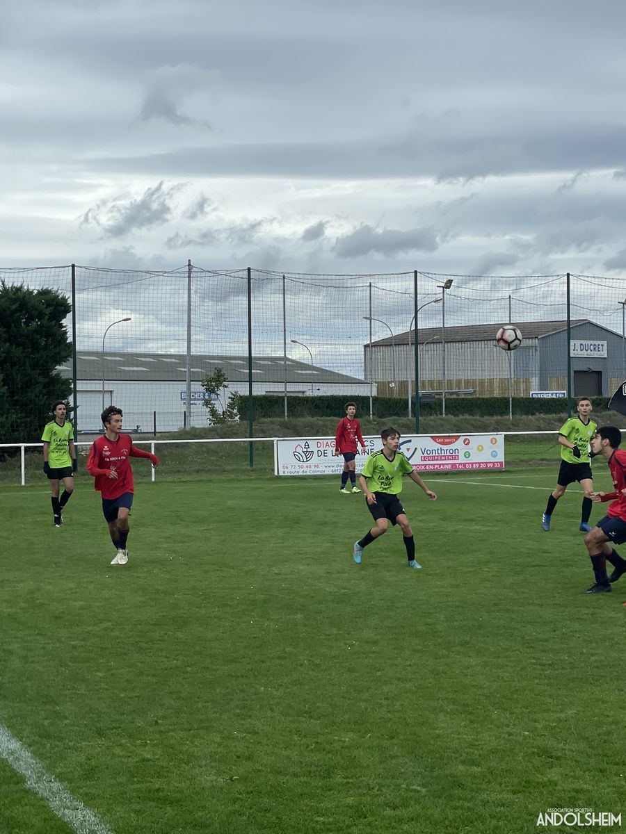 Il n’y a pas eu de pluie mais par contre une pluie de cartons à Sainte Croix en Plaine où notre équipe 2 U18 affrontait ses homologues. La défaite 5 à 0 n’est pas à imputer au mauvais arbitrage car l’adversaire nous était bien supérieur mais comment peut-on expulser un gamin pour une faute peu évidente? Une copie conforme de ce que les arbitres nationaux appliquent en ligue professionnelle. Menés 4 à 0 à la mi-temps où nous n’avons pas su exister et résister aux vagues des croisés, les 45 minutes suivantes furent bien meilleures car l’équipe n’a pris qu’un but sur penalty dans les arrêts de jeu. Un deuxième acte où nous avons davantage joué et même menacé la cage adverse. Puis vînt la première biscotte rouge pour un tacle non nécessaire d’Adam mais qui n’a pas touché l’adversaire je tiens à le préciser. À dix, on a continué à tenir la dragée haute à cet adversaire mais c’était sans compter avec le festival de cartons sortis par l’homme en noir dont celui direct à Xavier pour une faute désaxée qui ne méritait pas telle sanction. Un crève cœur de voir un gamin sortir en larmes pour une telle injustice. Je vous passe le détail des cartons jaunes car cela fait partie du reste de la panoplie arbitrale de ce match. La défaite s’accepte mais certaines décisions NON. On va essayer de convaincre nos jeunes que tous les samedis se suivent mais ne se ressemblent pas mais plus facile à dire qu’à faire. Bravo à eux et aux neufs joueurs restants pour la résistance apportée en deuxième mi-temps et que cela leur serve à l’avenir. Félicitations à Sainte croix en plaine pour leur victoire et on leur souhaite la meilleure saison possible. Pour l’ASA, nous sommes dans le dur…