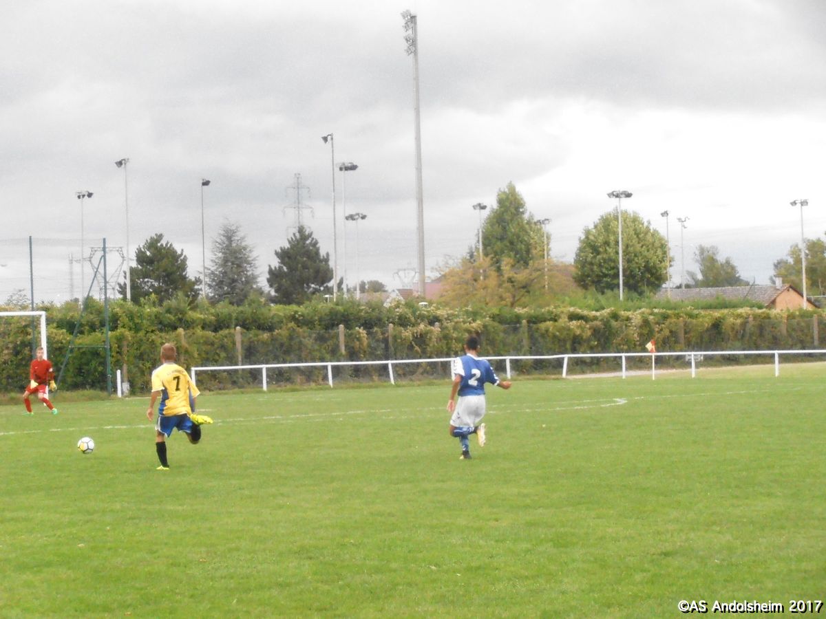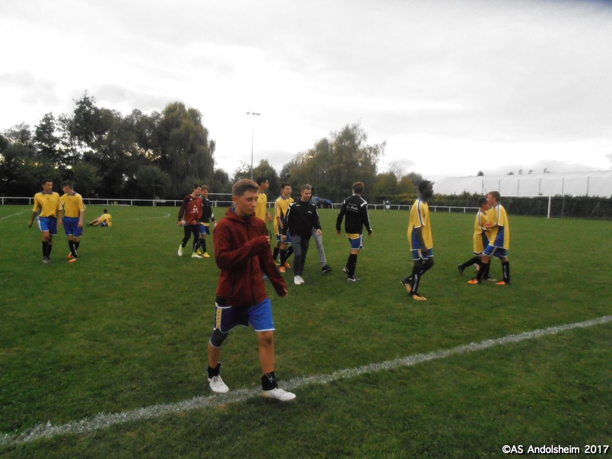 "Les U 18, emmenés par le nouvel entraineur de l’ASA, Yannis, se déplaçaient samedi à Biesheim. En coupe, s’il vous plaît. Dès la troisième minute, l’ASA ouvre le score. Pas d’autre but en première période. Domination incontestable d’Andolsheim mais l’écart est faible et le coach maintient la pression. En seconde période, vient le but du deux à zéro, de celui qui rassure. Puis celui du trois à zéro, celui qui détend. Et enfin, celui du quatre à zéro, celui qui libère et qui qualifie. Notons tout de même quelques actions de Biesheim, dont une qui termine sur la transversale mais même sur celle-là, notre gardien était placé au cas où elle eut été cadrée. Interviewé par votre serviteur, Yanis livre un seul commentaire à l’issue de la rencontre : « je suis très fier de l’équipe, maintenant il faut confirmer, ne pas se relâcher ». Message reçu, messieurs ? D’ici lundi, vous pouvez fêter et bravo !"