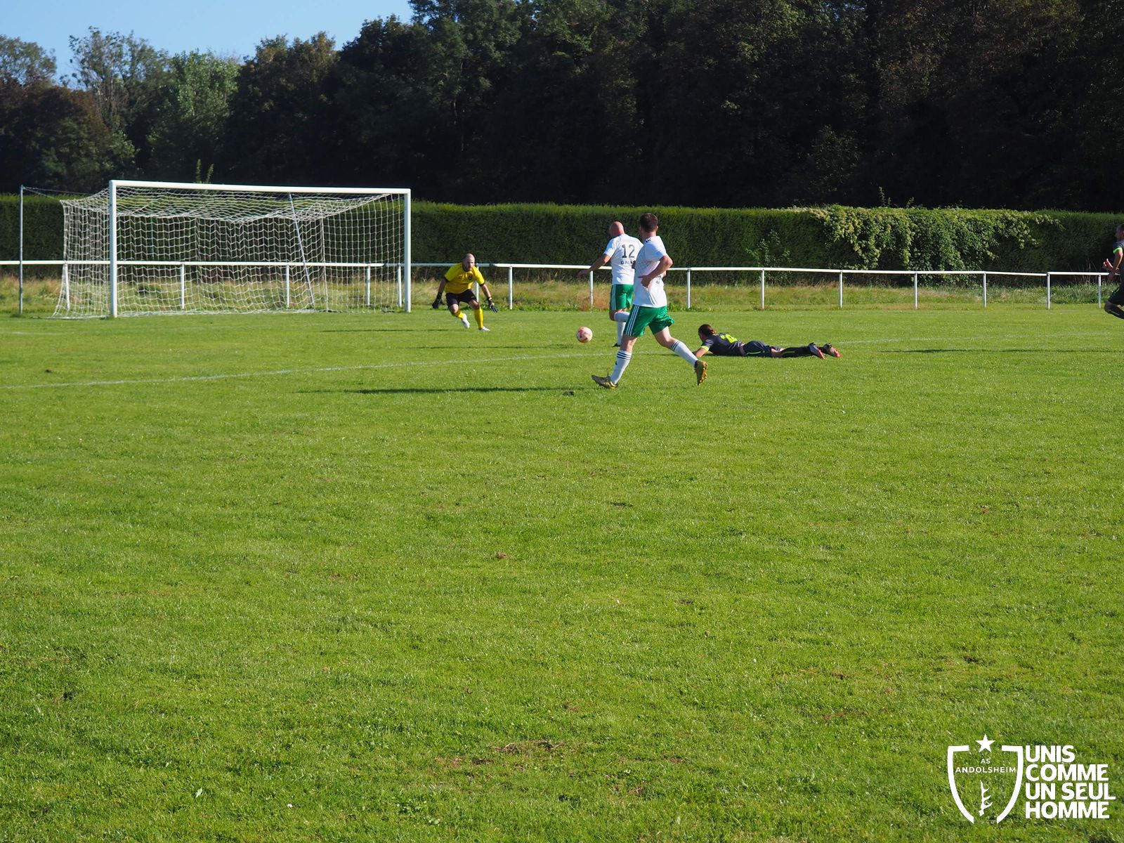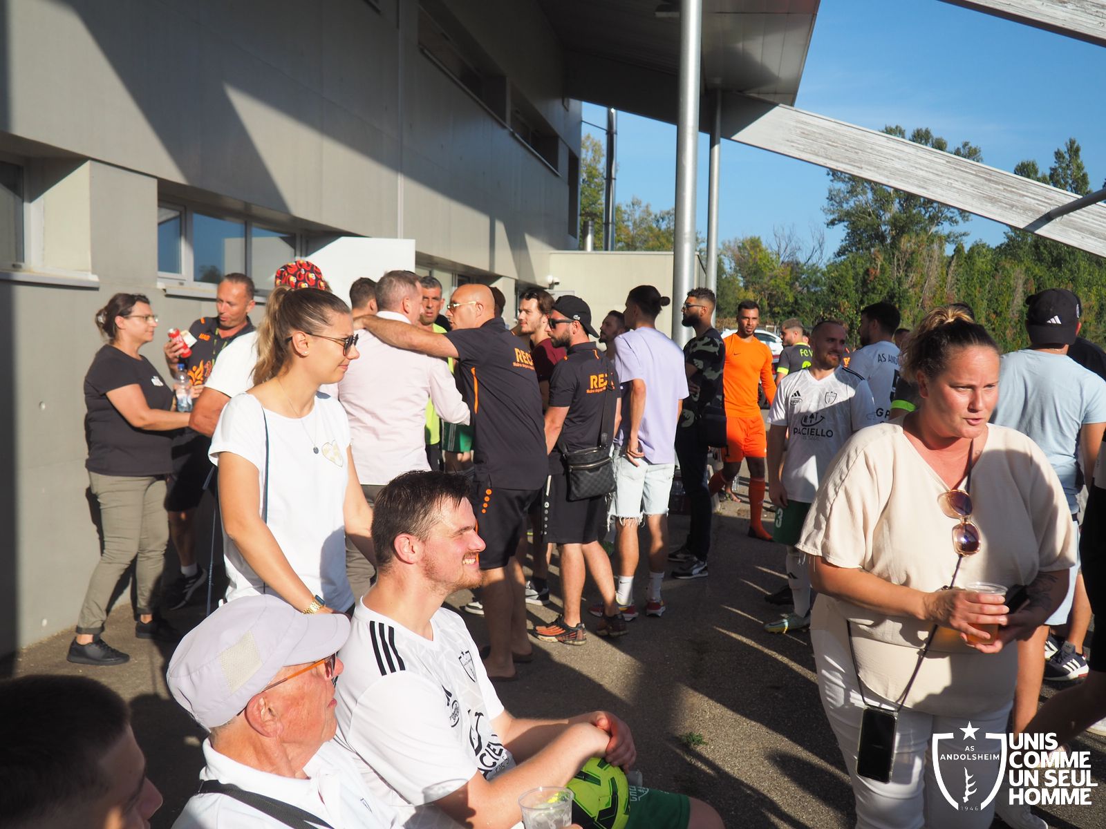 La première période est à notre avantage. Mika marque à la 4e minute, Maxime récidive 24 minutes plus tard, Stan colle son but deux minutes après, et Mika remet ça à un quart d’heure de la pause. Pause. On mène 0 à 4, cafés colombiens, boissons alsaciennes, vous connaissez le couplet. Notre président, qui revient de sa détection nord-américaine, retrouve avec délice la convivialité alsacienne, l’amour français du football, le fair-play, le respect de l’arbitre… Bref, toutes ces valeurs du vivre-ensemble tricolore que jalousent tous les autres pays du monde. Ceux qui ont assisté à la rencontre apprécieront la légère ironie de nos propos. Et ils sont nombreux : grosse délégation pour Andolsheim et forte mobilisation des joyeux supporters du FCVO, le Football Club de Vogelgrun Obersaesheim.