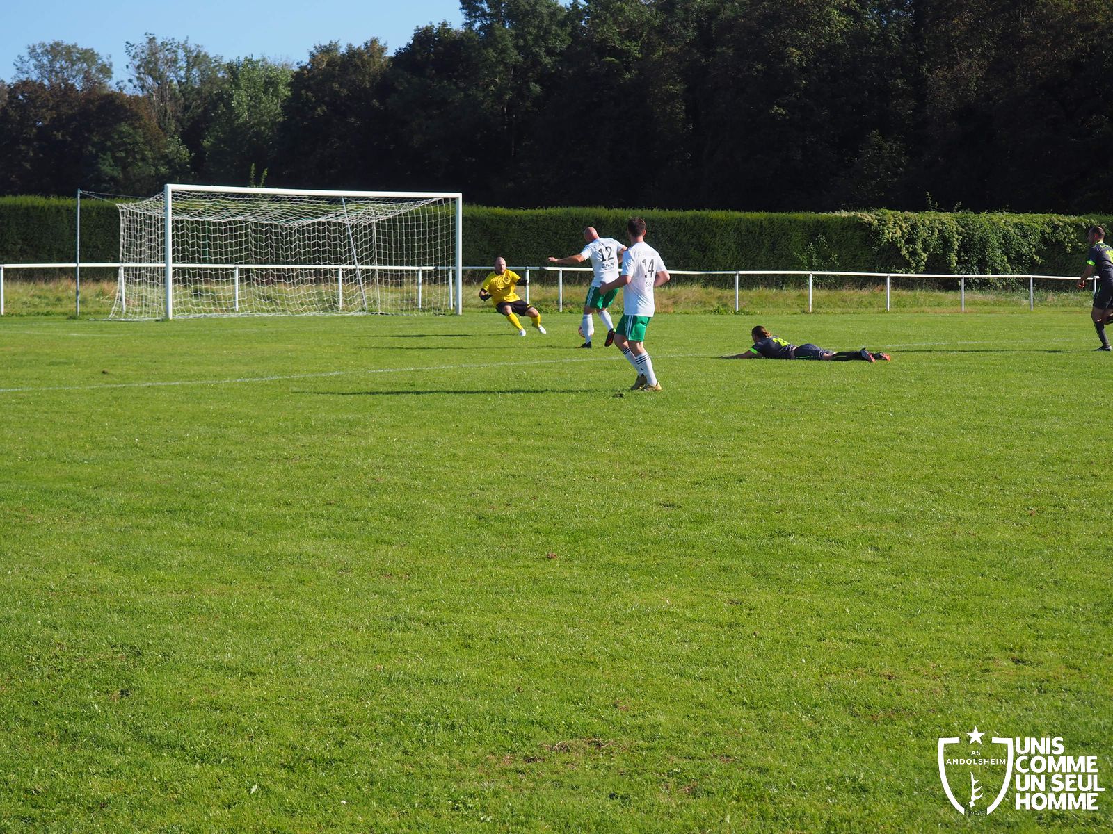 En ce premier dimanche d’octobre, et avec un soleil de premier dimanche de juillet, notre équipe fanion se rend à Vogelgrun pour le troisième tour de coupe d’Alsace. Dalep, Jérôme, Serge à la touche, puis Gilles à partir de la pause, encadrent notre formation. Le président et les époux Guthmann viennent en convoi pour nous soutenir. Pierrot et tous les habitués sont là toujours fidèles. Luca, Gabin, Bryan et d’autres sont absents ou blessés, mais l’ASA aligne cependant une très belle équipe. Les locaux évoluent en D4 et nous avons donc toutes nos chances.