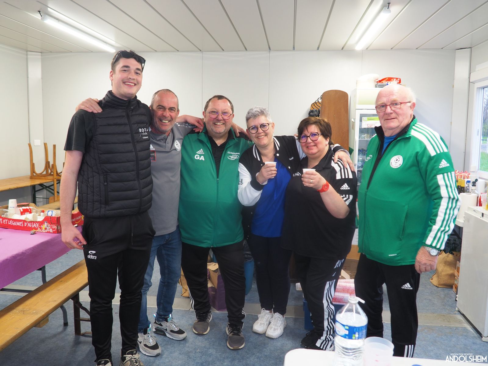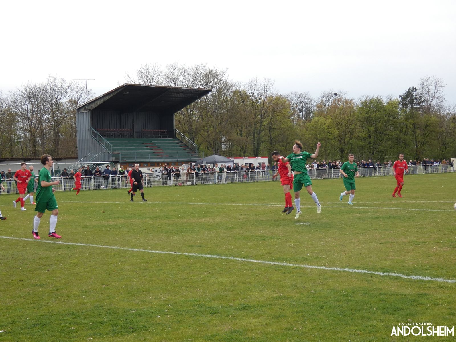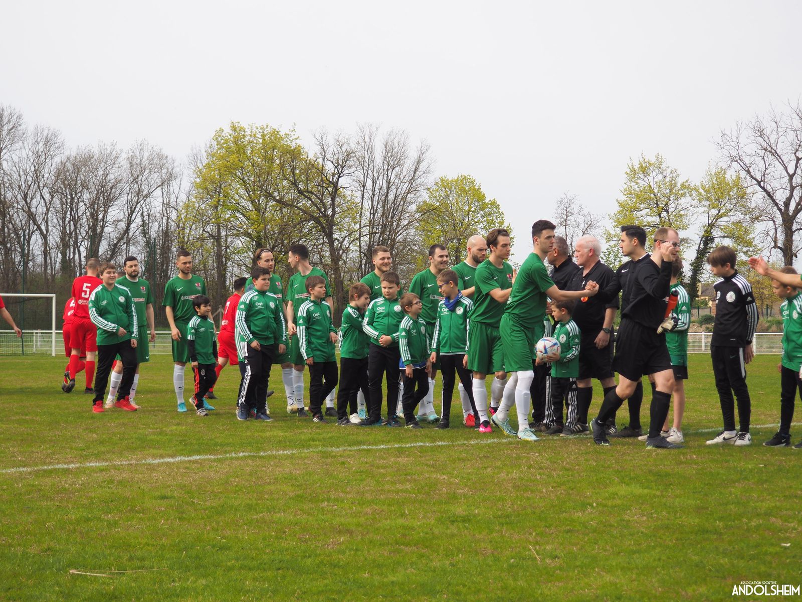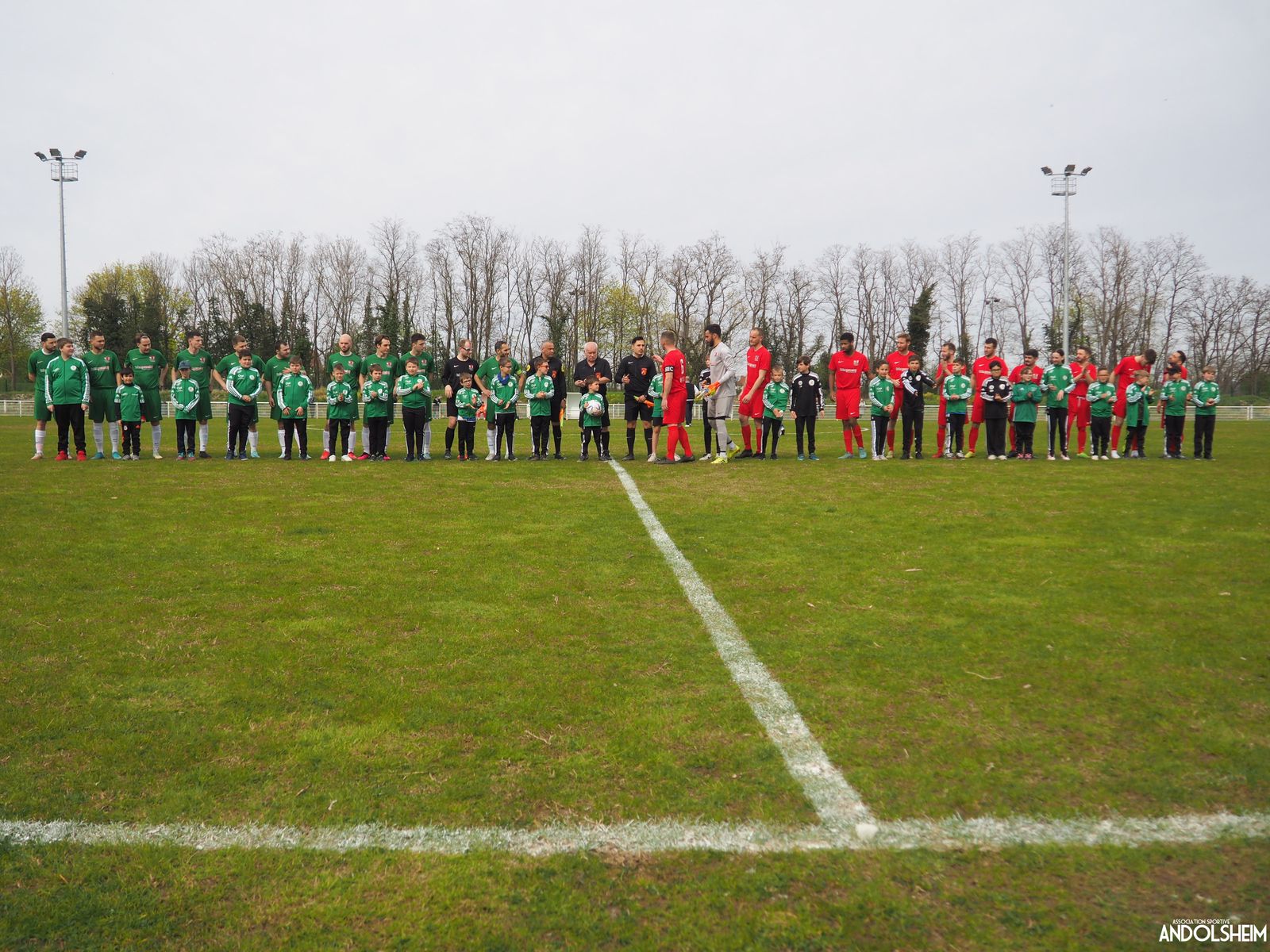 Devant 300 spectateurs, et encadrés par les jeunes de l’ASA, 22 joueurs entrent sur le terrain en ce lundi de Pâques pour le quart de finale de la coupe d’Alsace…YO ! Truchtersheim, qui est leader de son groupe de D1 dans le Bas-Rhin, évolue en vert. Andolsheim en rouge. Les 3 arbitres officiels en noir. Dès la 10e, les visiteurs marquent avec de la chance, sur un lob, suite à une relance malchanceuse. Les verts dominent la première période, mais l’ASA limite la casse. On prend un petit jaune à la 30e, mais le match est correct et l’homme en noir domine son sujet. Pause, cafés colombiens, sodas étasuniens, rafraîchissements alsaciens, pizzas italiennes au feu de bois, bref, parfaite organisation, comme toujours, du comité et de tous nos bénévoles.