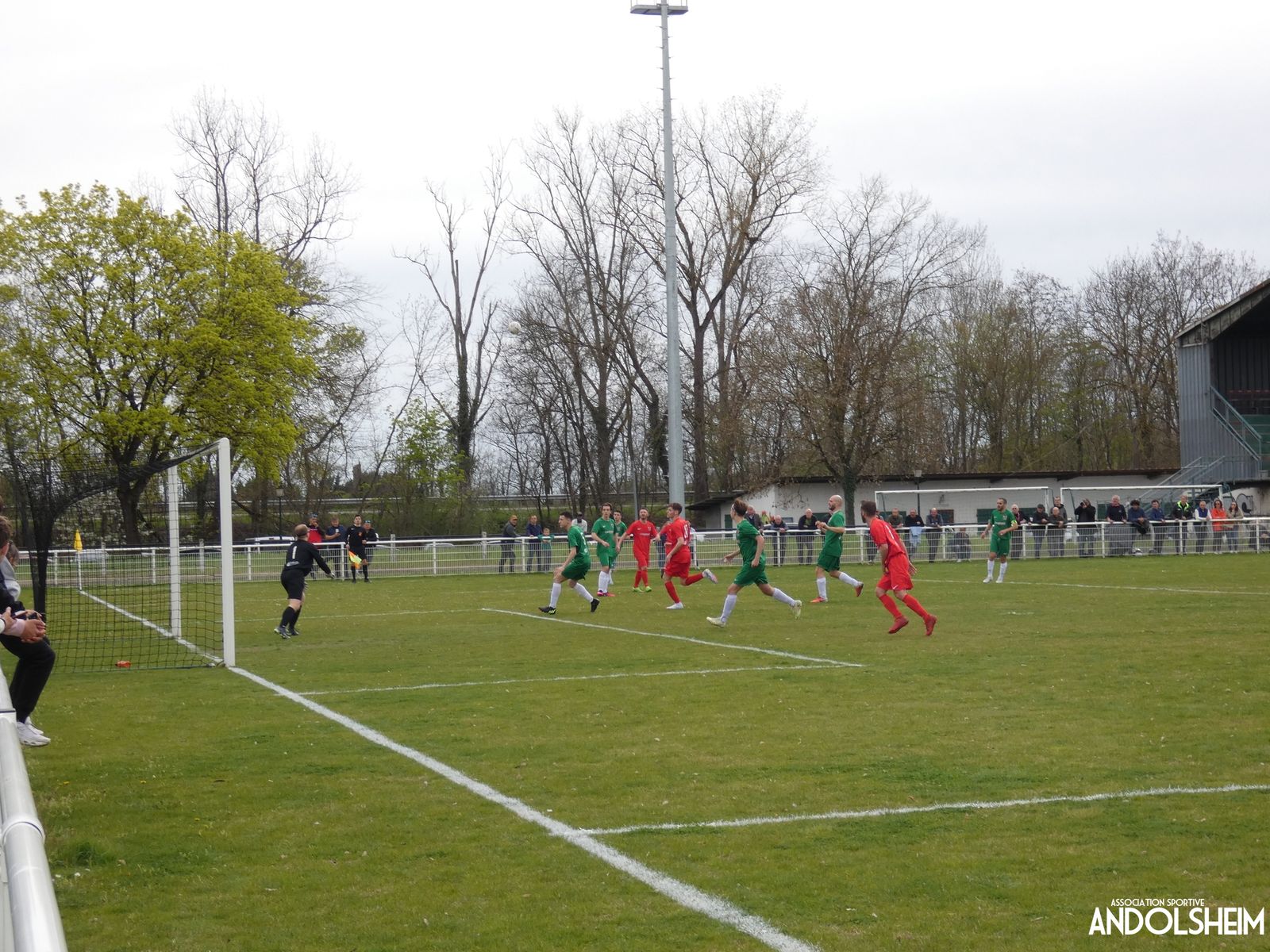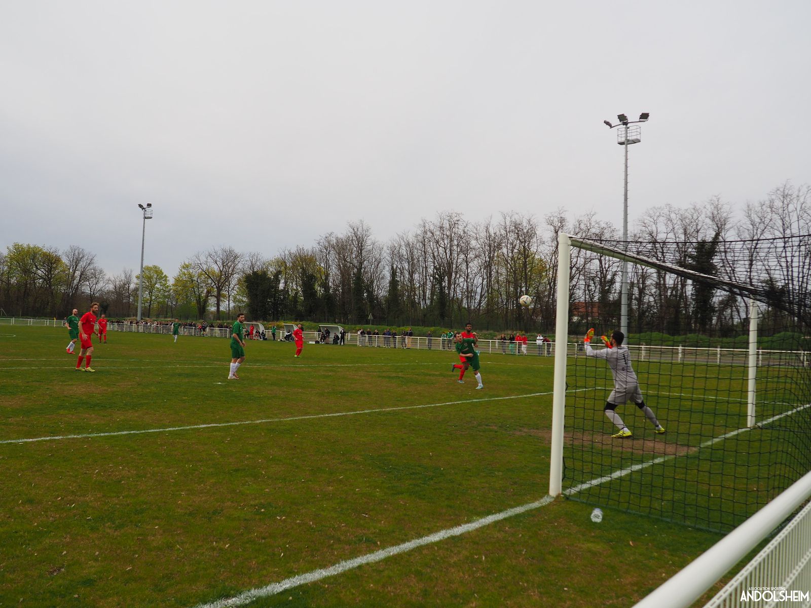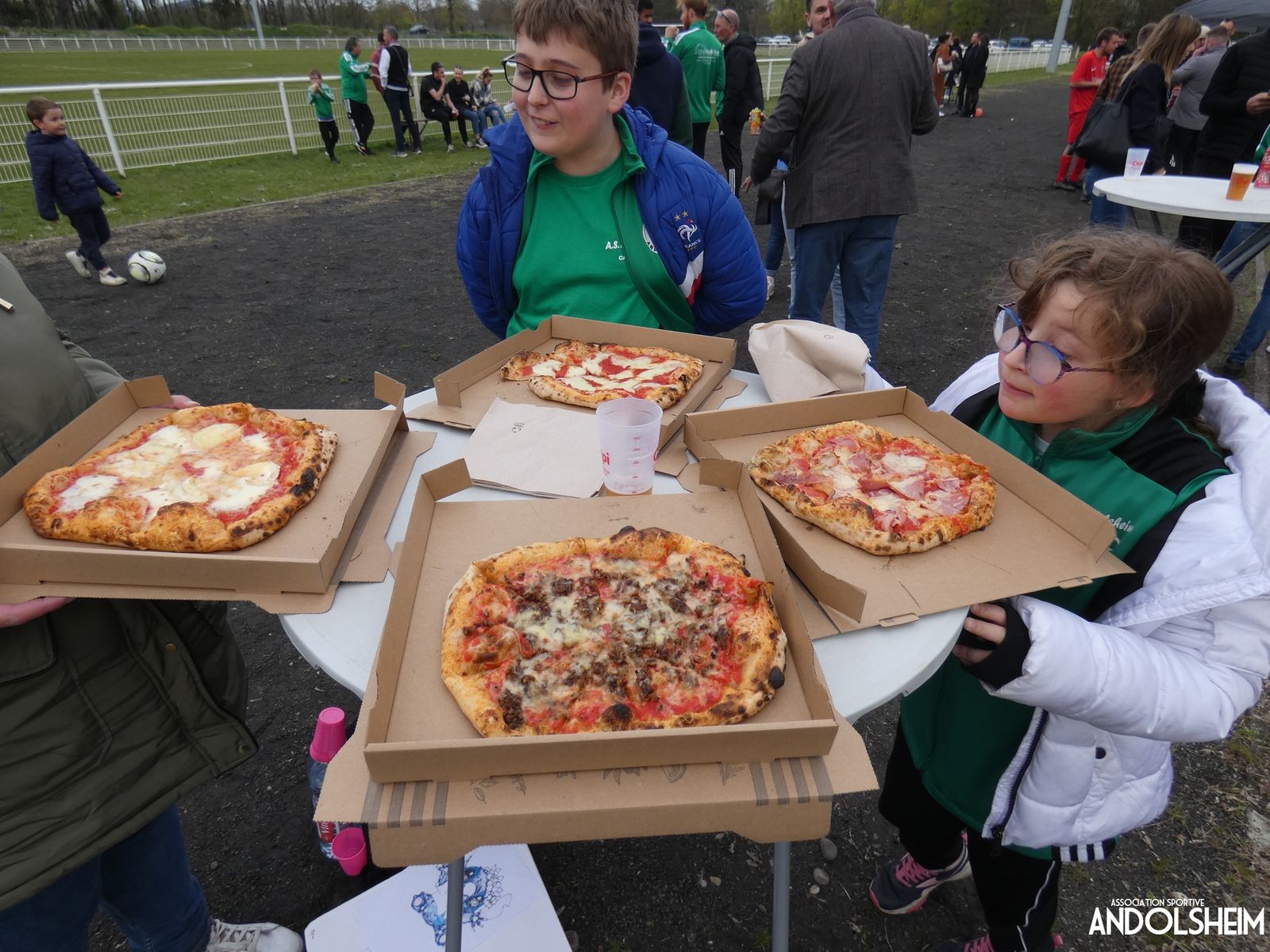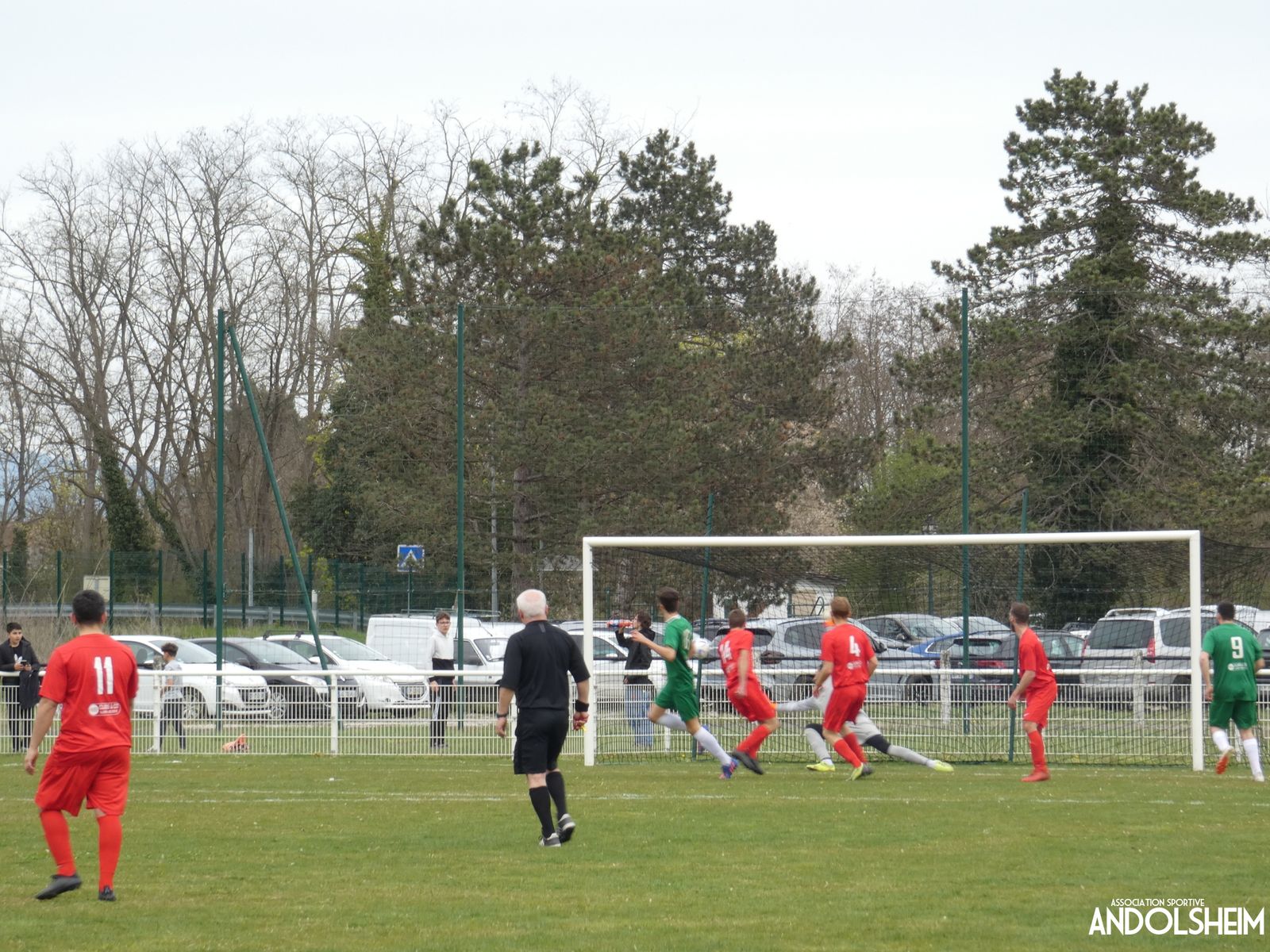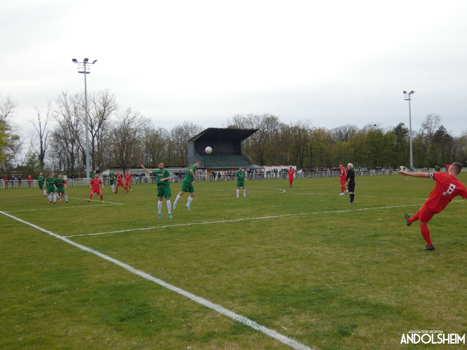 Devant 300 spectateurs, et encadrés par les jeunes de l’ASA, 22 joueurs entrent sur le terrain en ce lundi de Pâques pour le quart de finale de la coupe d’Alsace…YO ! Truchtersheim, qui est leader de son groupe de D1 dans le Bas-Rhin, évolue en vert. Andolsheim en rouge. Les 3 arbitres officiels en noir. Dès la 10e, les visiteurs marquent avec de la chance, sur un lob, suite à une relance malchanceuse. Les verts dominent la première période, mais l’ASA limite la casse. On prend un petit jaune à la 30e, mais le match est correct et l’homme en noir domine son sujet. Pause, cafés colombiens, sodas étasuniens, rafraîchissements alsaciens, pizzas italiennes au feu de bois, bref, parfaite organisation, comme toujours, du comité et de tous nos bénévoles.