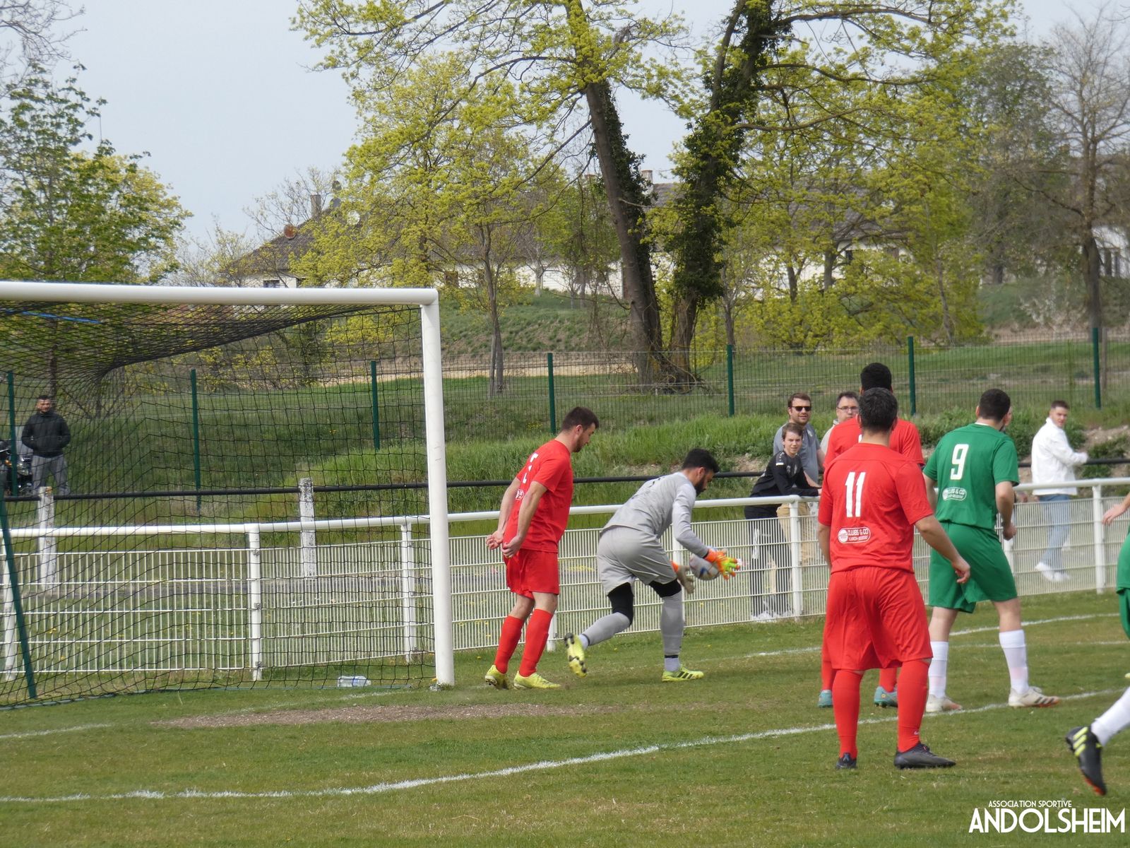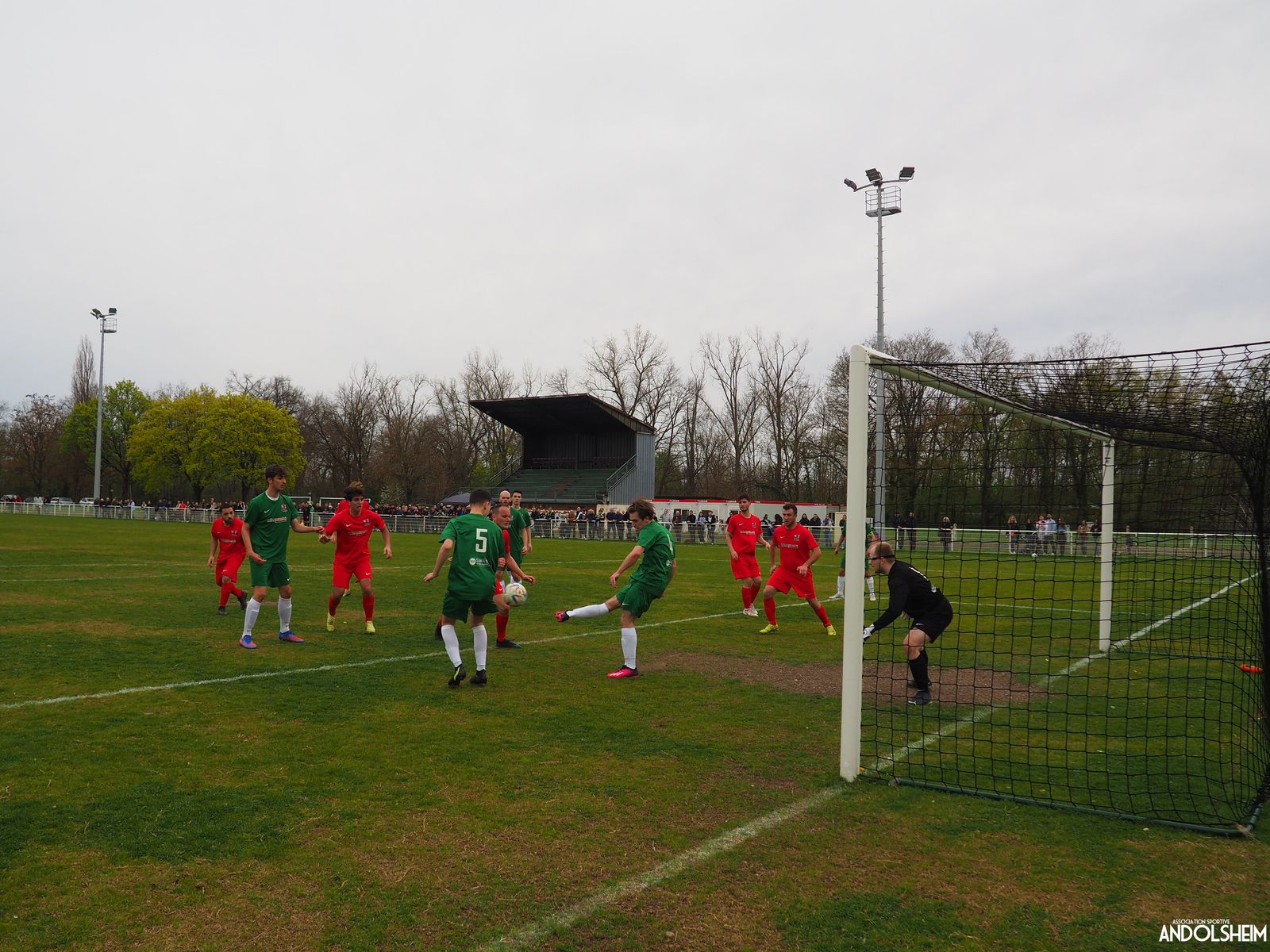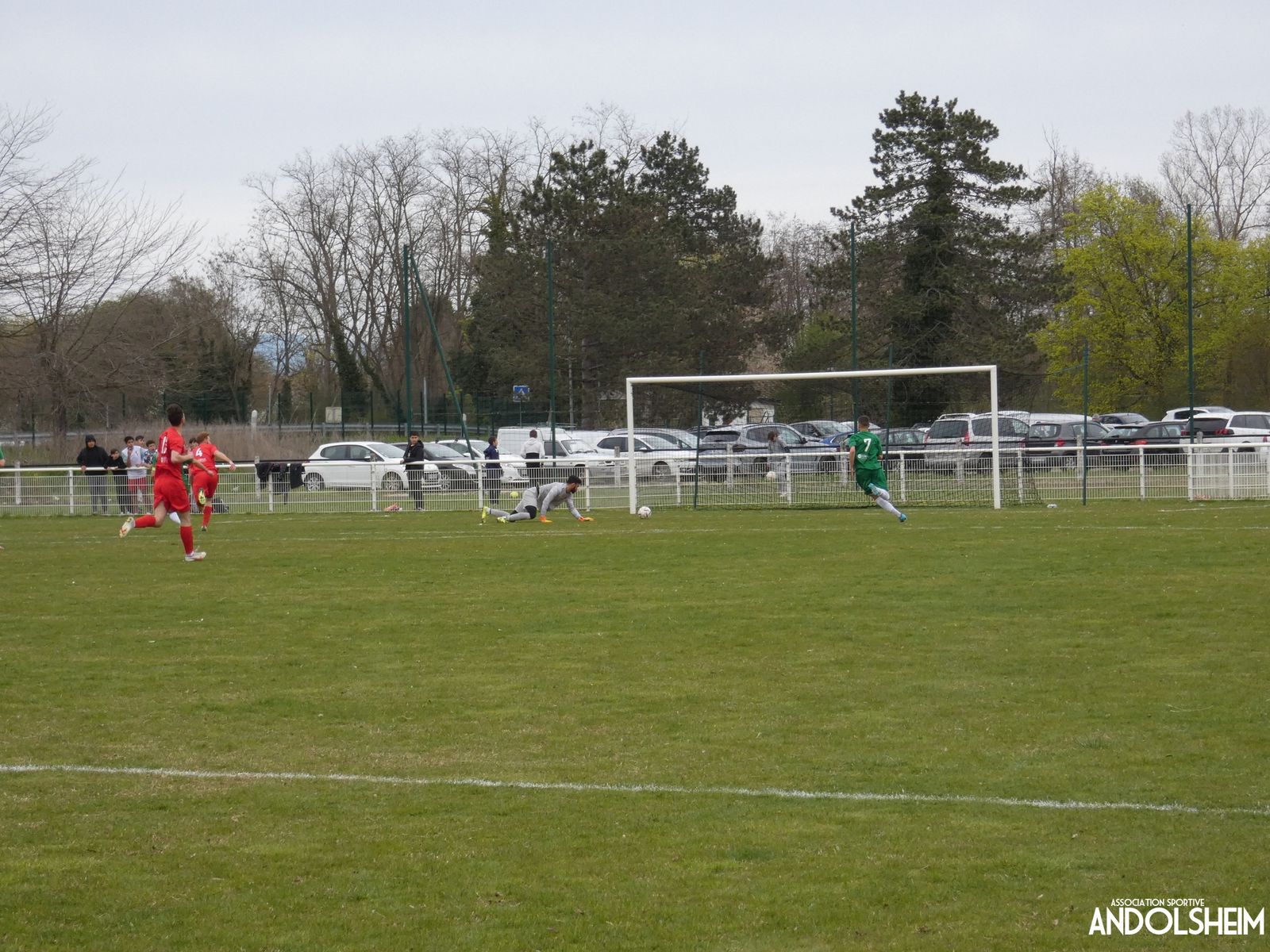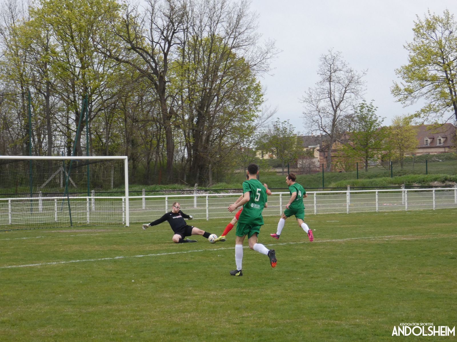 Devant 300 spectateurs, et encadrés par les jeunes de l’ASA, 22 joueurs entrent sur le terrain en ce lundi de Pâques pour le quart de finale de la coupe d’Alsace…YO ! Truchtersheim, qui est leader de son groupe de D1 dans le Bas-Rhin, évolue en vert. Andolsheim en rouge. Les 3 arbitres officiels en noir. Dès la 10e, les visiteurs marquent avec de la chance, sur un lob, suite à une relance malchanceuse. Les verts dominent la première période, mais l’ASA limite la casse. On prend un petit jaune à la 30e, mais le match est correct et l’homme en noir domine son sujet. Pause, cafés colombiens, sodas étasuniens, rafraîchissements alsaciens, pizzas italiennes au feu de bois, bref, parfaite organisation, comme toujours, du comité et de tous nos bénévoles.