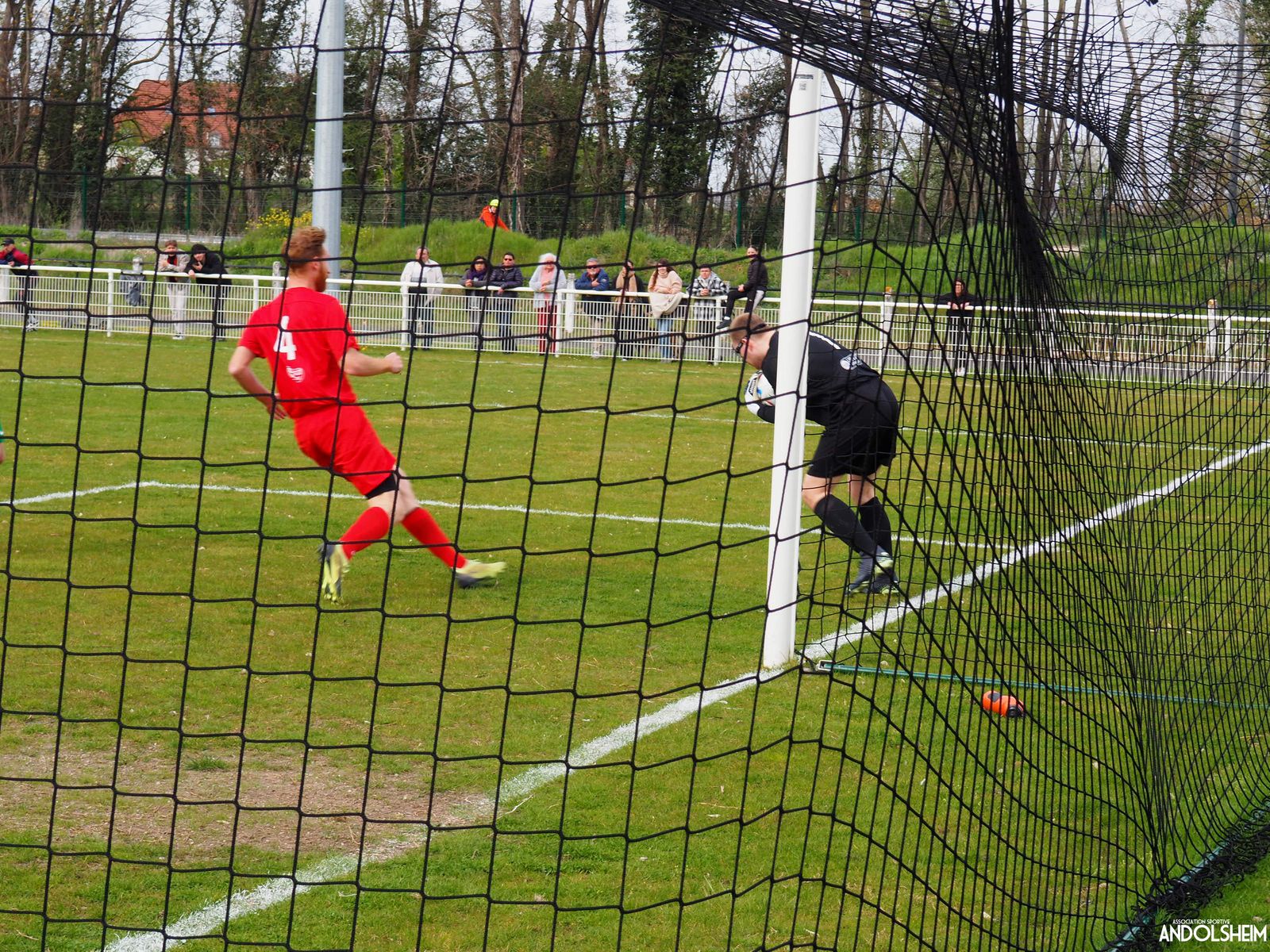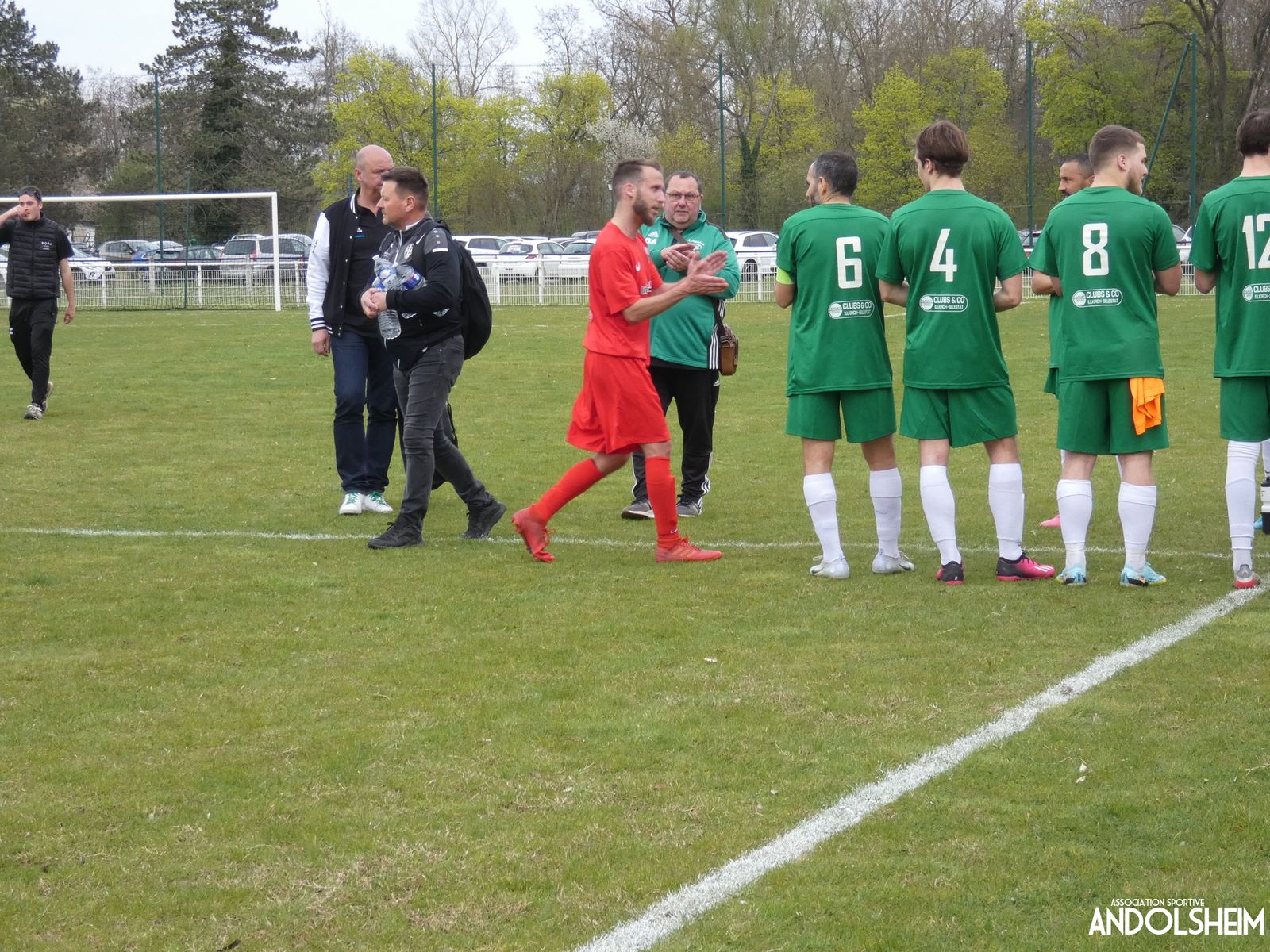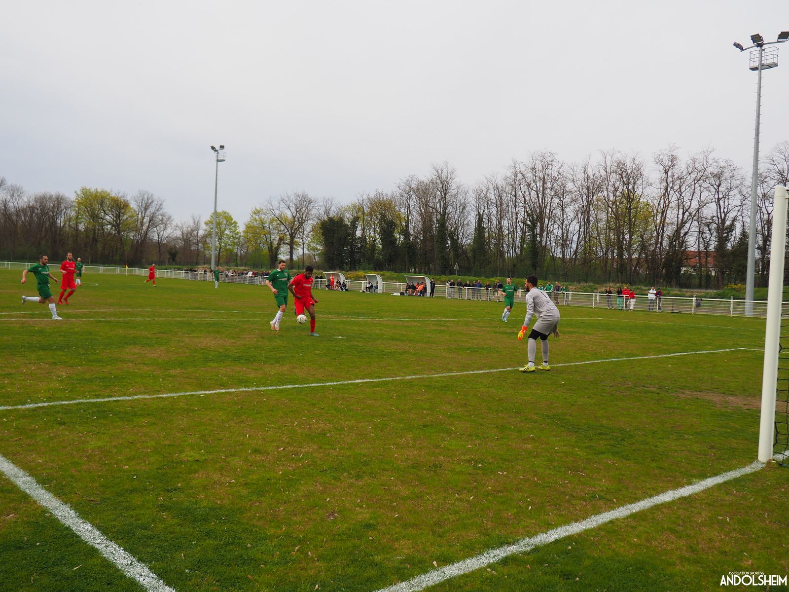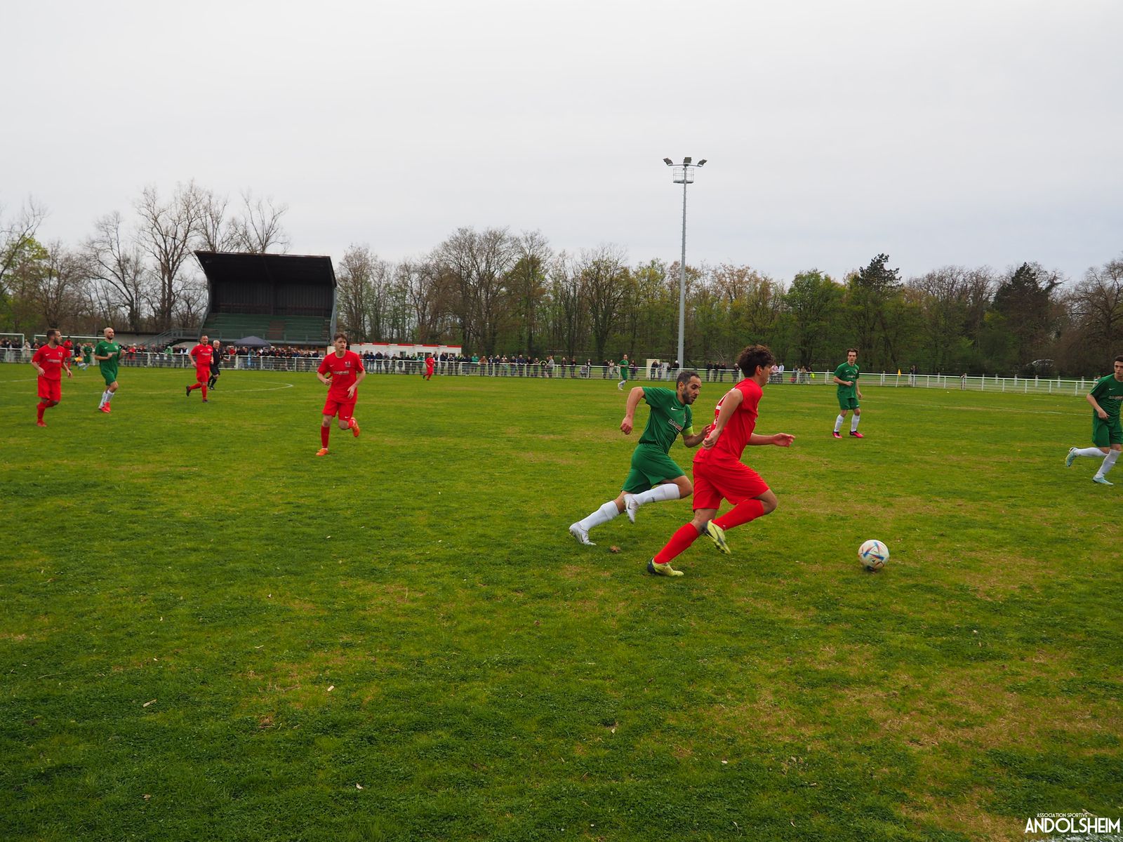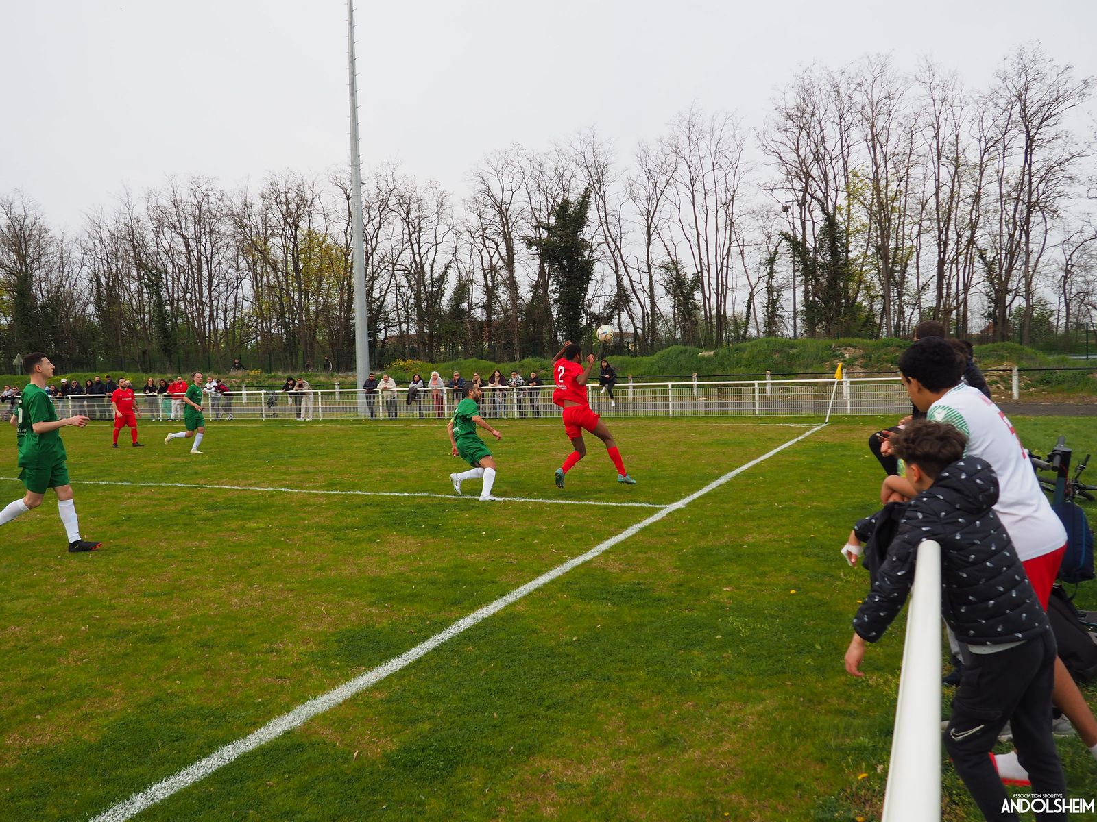 Devant 300 spectateurs, et encadrés par les jeunes de l’ASA, 22 joueurs entrent sur le terrain en ce lundi de Pâques pour le quart de finale de la coupe d’Alsace…YO ! Truchtersheim, qui est leader de son groupe de D1 dans le Bas-Rhin, évolue en vert. Andolsheim en rouge. Les 3 arbitres officiels en noir. Dès la 10e, les visiteurs marquent avec de la chance, sur un lob, suite à une relance malchanceuse. Les verts dominent la première période, mais l’ASA limite la casse. On prend un petit jaune à la 30e, mais le match est correct et l’homme en noir domine son sujet. Pause, cafés colombiens, sodas étasuniens, rafraîchissements alsaciens, pizzas italiennes au feu de bois, bref, parfaite organisation, comme toujours, du comité et de tous nos bénévoles.