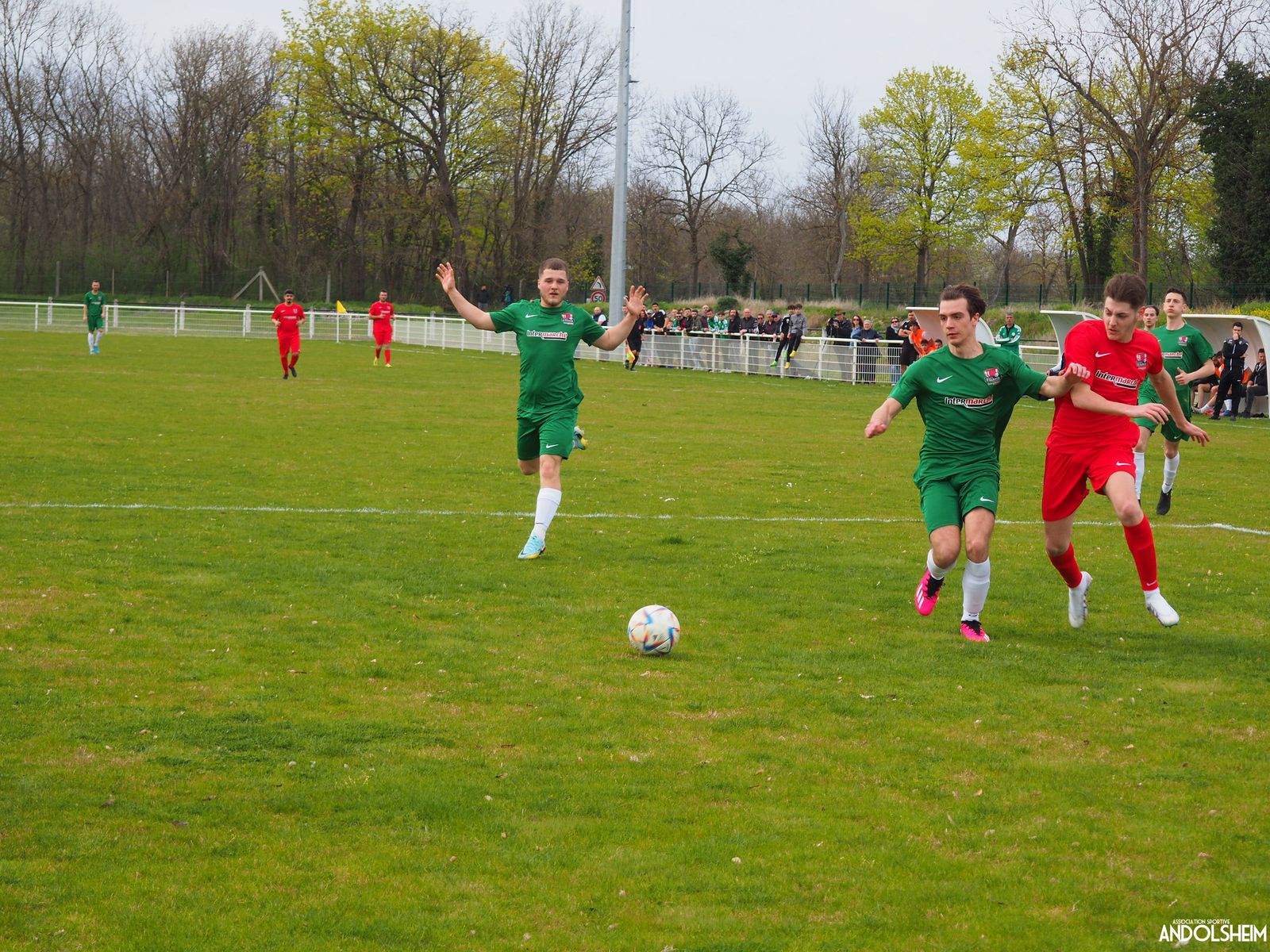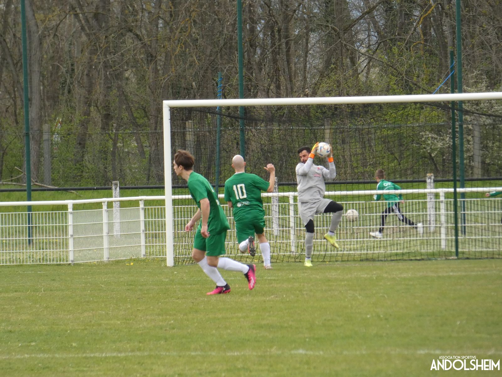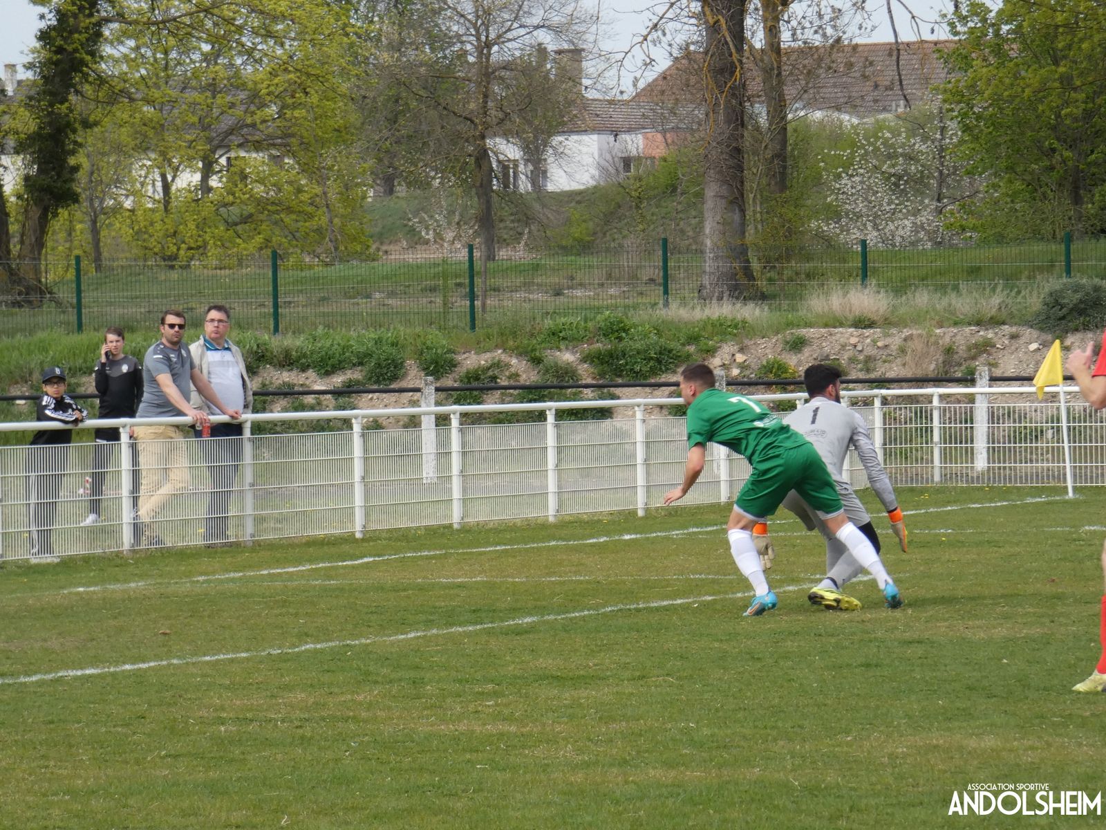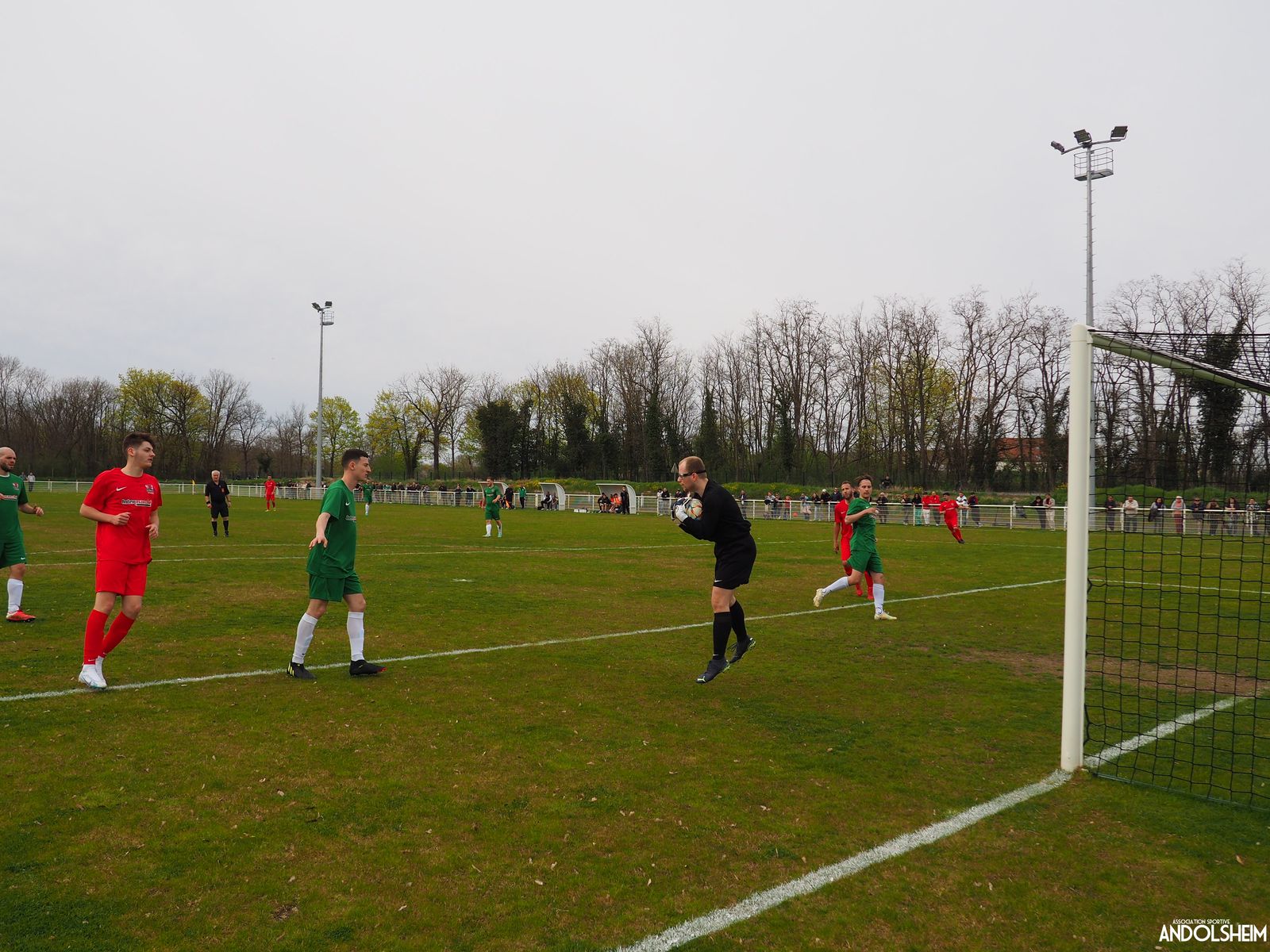 Devant 300 spectateurs, et encadrés par les jeunes de l’ASA, 22 joueurs entrent sur le terrain en ce lundi de Pâques pour le quart de finale de la coupe d’Alsace…YO ! Truchtersheim, qui est leader de son groupe de D1 dans le Bas-Rhin, évolue en vert. Andolsheim en rouge. Les 3 arbitres officiels en noir. Dès la 10e, les visiteurs marquent avec de la chance, sur un lob, suite à une relance malchanceuse. Les verts dominent la première période, mais l’ASA limite la casse. On prend un petit jaune à la 30e, mais le match est correct et l’homme en noir domine son sujet. Pause, cafés colombiens, sodas étasuniens, rafraîchissements alsaciens, pizzas italiennes au feu de bois, bref, parfaite organisation, comme toujours, du comité et de tous nos bénévoles.