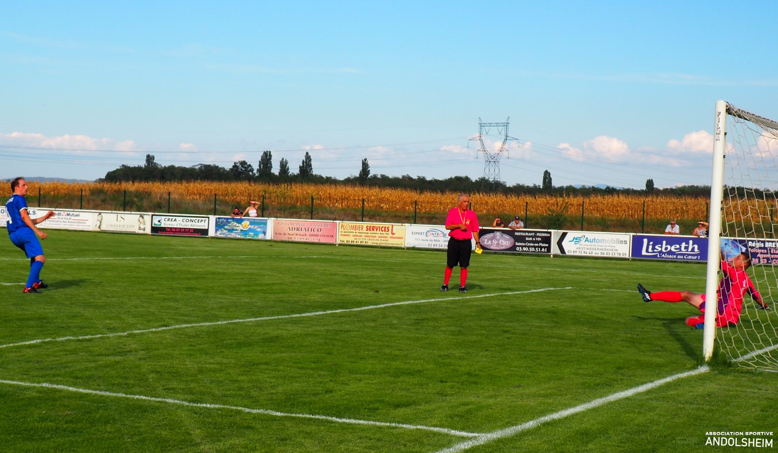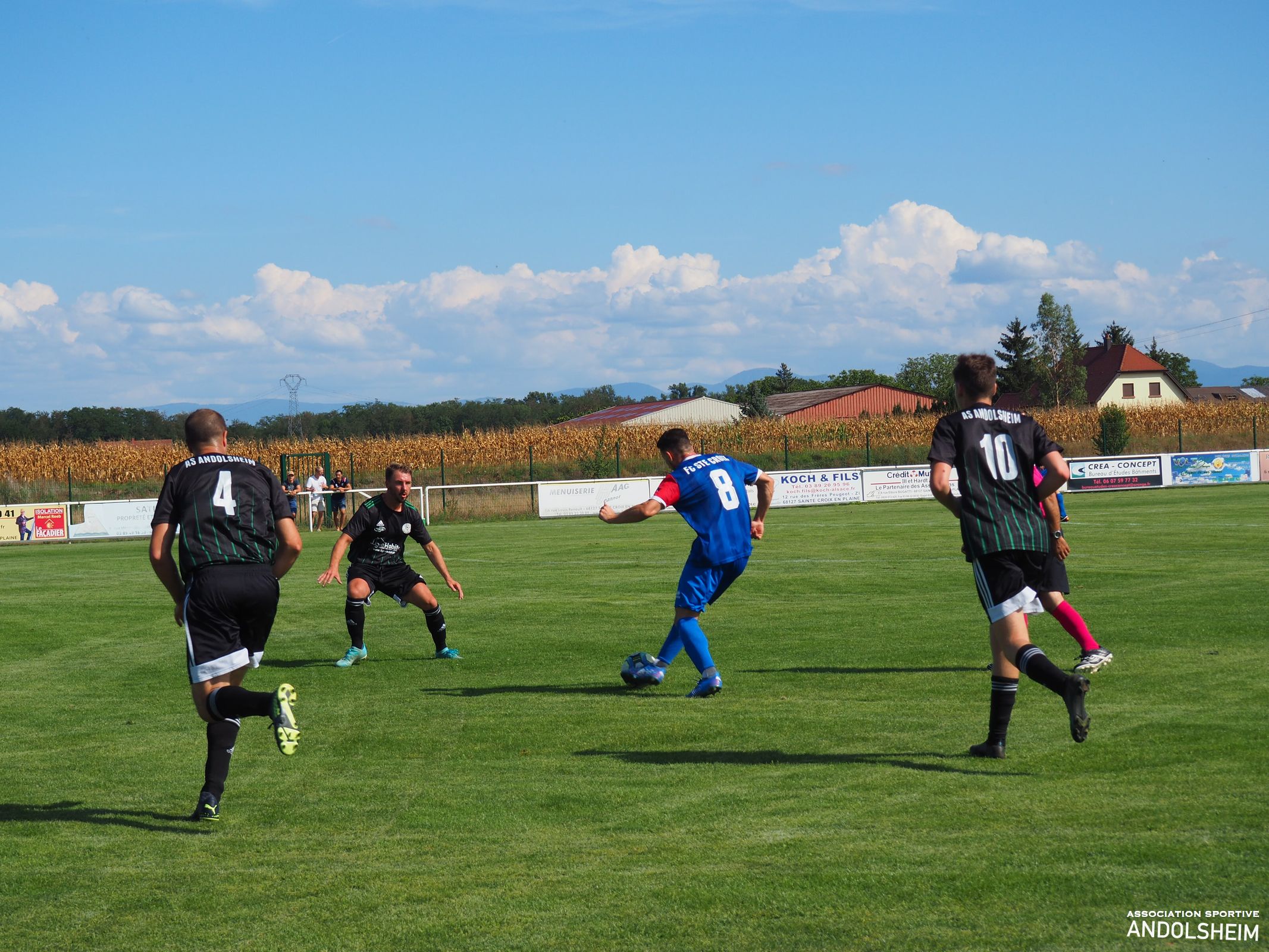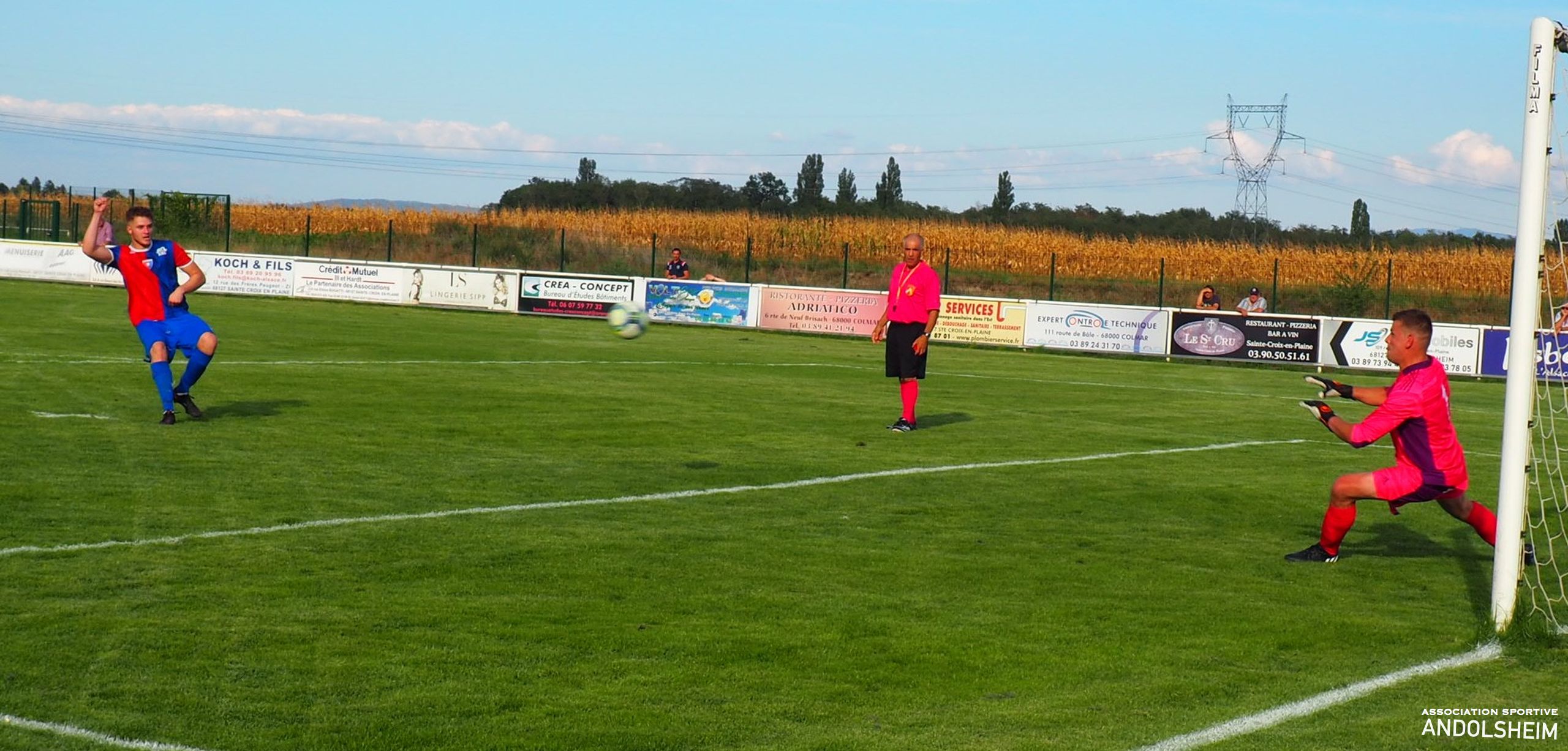 Bonjour à tous, tout d’abord je vous remercie pour vos lectures attentives des 27 reportages que j’ai eu le plaisir de réaliser pour l’AS ANDOLSHEIM la saison dernière, et, tout comme mon club de cœur le fait chaque année, je vais moi aussi me surpasser cette année. objectif 30 articles au minimum. Je remercie Gilles Fouillet et toute l’équipe rédactionnelle qui me fait confiance, et je remercie le comité et le Président de l’ASA. Et je souhaite bonheur et succès à toutes les équipes de l’ASA. Bref, hier après-midi, car on est déjà lundi, notre équipe Seniors 1 entame la Coupe de France contre le voisin Ste Croix en Plaine. Comme nos lecteurs le savent, les croisés évoluent 3 divisions au-dessus de nous. Sur le papier, c’est donc ingagnable... Un grand journal régional alsacien, que je ne nommerai pas, (mais qui est éponyme, comprenne qui pourra), écrit donc jeudi : « une formalité pour les croisés »… et surenchérit, vendredi, par un magnifique « un derby qui ne devrait pas échapper à Ste Croix ». Puisque les journalistes ont plié le match sur le papier, restons à la maison ! Le seul petit hic, c’est que la match se jouera sur une pelouse et non sur un papier…Soyons honnêtes, le premier quart d’heure est à l’avantage des locaux, techniquement et territorialement. L’ASA réagit , se révolte, et manque de peu de marquer à la 30eme car notre photo montre clairement que Adam est littéralement fauché dans la surface ! Bref, Andolsheim fait de la résistance ! Seconde période, score toujours vierge, Jeff notre portier enchaine parade sur parade, la défense est hyper solide, on prend un carton jaune sans gravité …Ste Croix rate l’occasion de tuer le match à la 93eme puis l’arbitre siffle la fin du match ! Après 15 minutes et 11 de tirs au buts interminables, Bryan trompe le portier croisé et le kopp vert explose : l’ASA gagne le match ! Finalement les journaux avaient raison…et, je fais amende honorable , il suffisait de marquer plus de buts que l’équipe adverse, et, simplifié ainsi, on peut le dire, l’écrire, et même le chanter : ce fut une formalité !