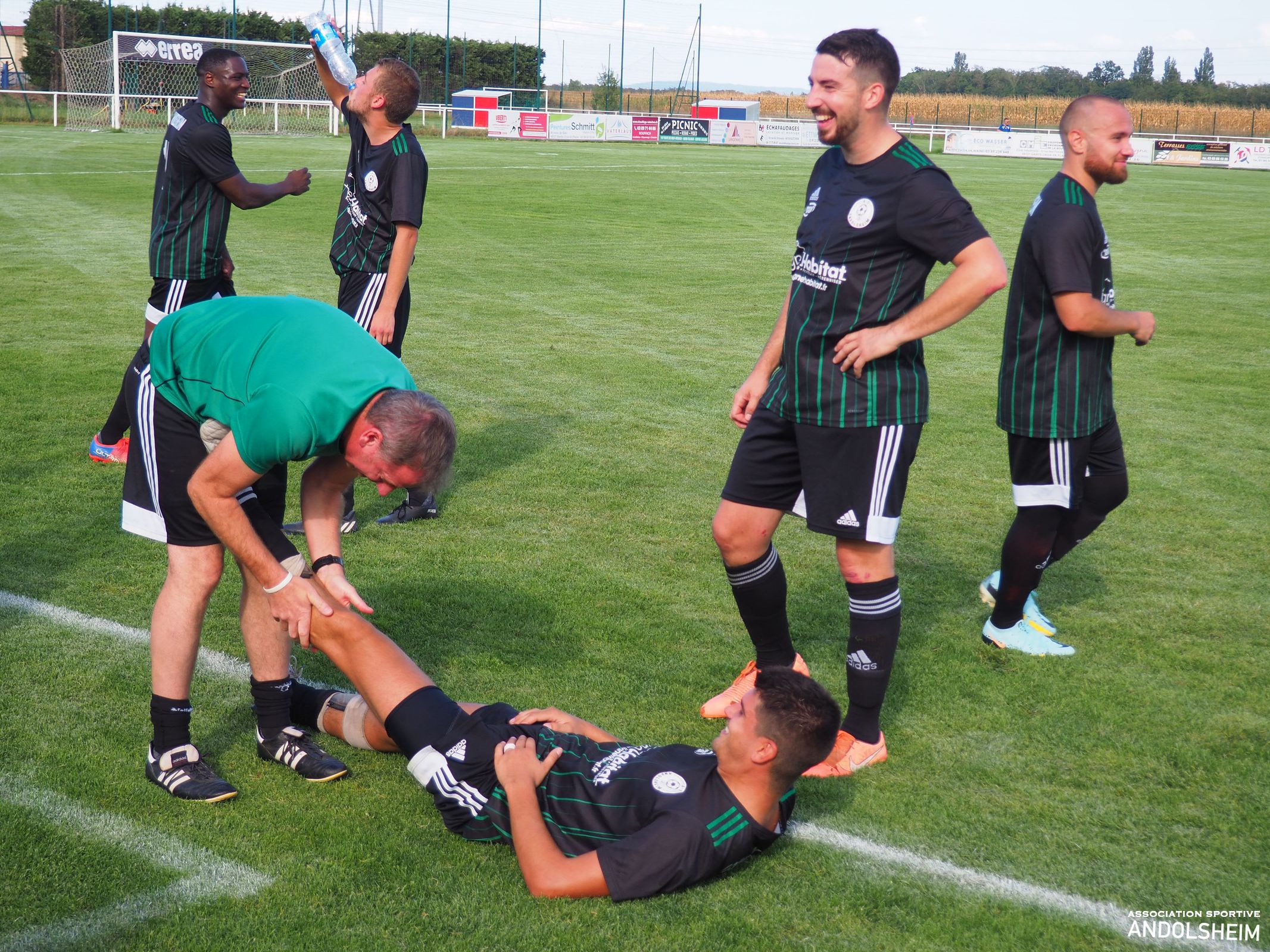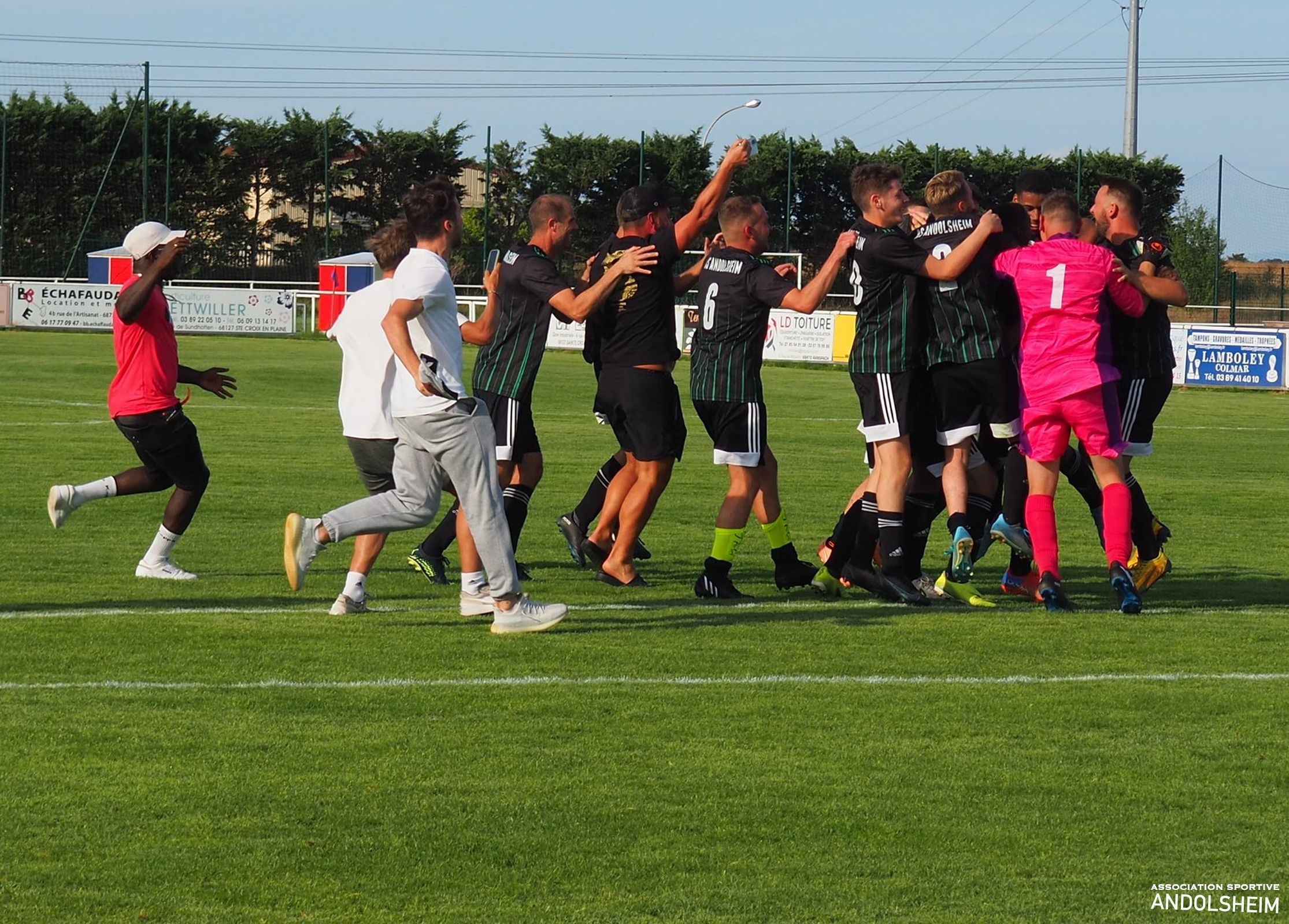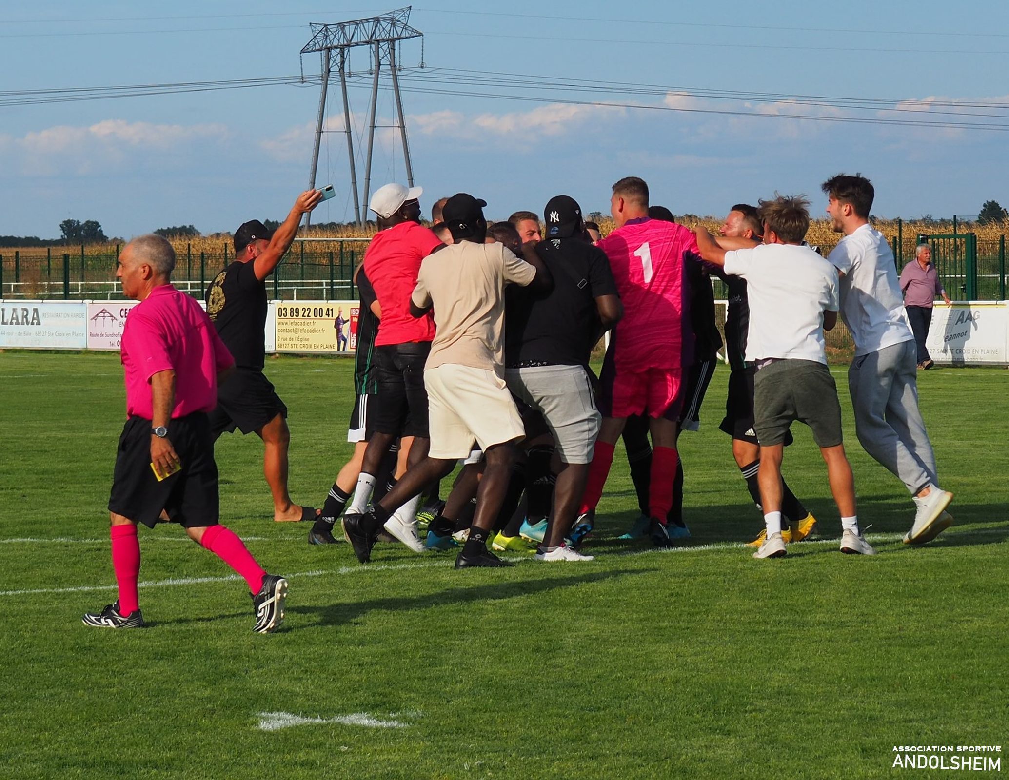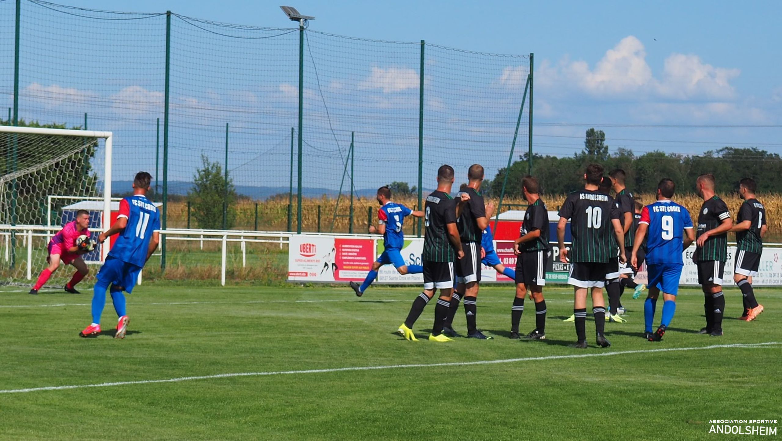 Bonjour à tous, tout d’abord je vous remercie pour vos lectures attentives des 27 reportages que j’ai eu le plaisir de réaliser pour l’AS ANDOLSHEIM la saison dernière, et, tout comme mon club de cœur le fait chaque année, je vais moi aussi me surpasser cette année. objectif 30 articles au minimum. Je remercie Gilles Fouillet et toute l’équipe rédactionnelle qui me fait confiance, et je remercie le comité et le Président de l’ASA. Et je souhaite bonheur et succès à toutes les équipes de l’ASA. Bref, hier après-midi, car on est déjà lundi, notre équipe Seniors 1 entame la Coupe de France contre le voisin Ste Croix en Plaine. Comme nos lecteurs le savent, les croisés évoluent 3 divisions au-dessus de nous. Sur le papier, c’est donc ingagnable... Un grand journal régional alsacien, que je ne nommerai pas, (mais qui est éponyme, comprenne qui pourra), écrit donc jeudi : « une formalité pour les croisés »… et surenchérit, vendredi, par un magnifique « un derby qui ne devrait pas échapper à Ste Croix ». Puisque les journalistes ont plié le match sur le papier, restons à la maison ! Le seul petit hic, c’est que la match se jouera sur une pelouse et non sur un papier…Soyons honnêtes, le premier quart d’heure est à l’avantage des locaux, techniquement et territorialement. L’ASA réagit , se révolte, et manque de peu de marquer à la 30eme car notre photo montre clairement que Adam est littéralement fauché dans la surface ! Bref, Andolsheim fait de la résistance ! Seconde période, score toujours vierge, Jeff notre portier enchaine parade sur parade, la défense est hyper solide, on prend un carton jaune sans gravité …Ste Croix rate l’occasion de tuer le match à la 93eme puis l’arbitre siffle la fin du match ! Après 15 minutes et 11 de tirs au buts interminables, Bryan trompe le portier croisé et le kopp vert explose : l’ASA gagne le match ! Finalement les journaux avaient raison…et, je fais amende honorable , il suffisait de marquer plus de buts que l’équipe adverse, et, simplifié ainsi, on peut le dire, l’écrire, et même le chanter : ce fut une formalité !