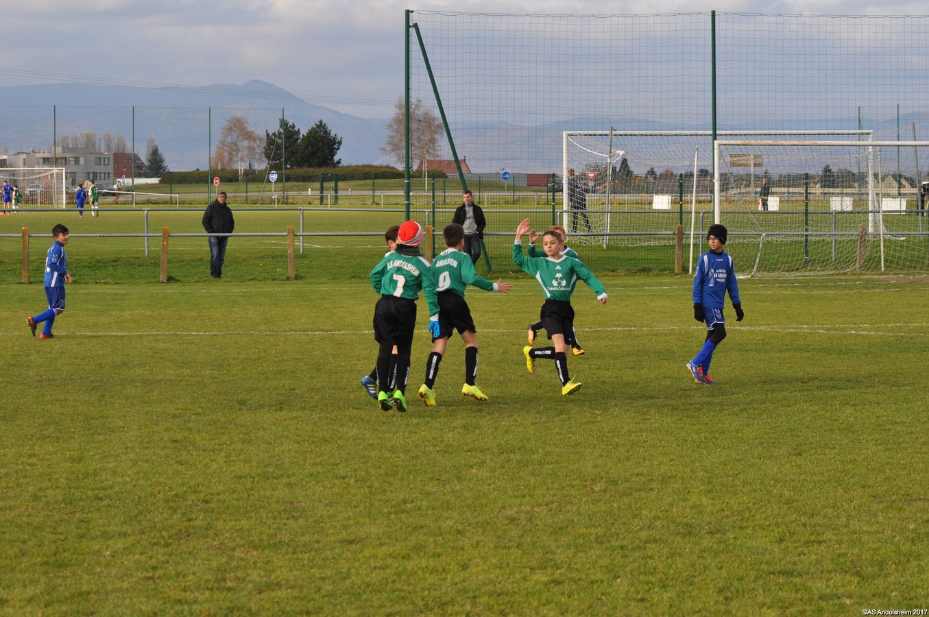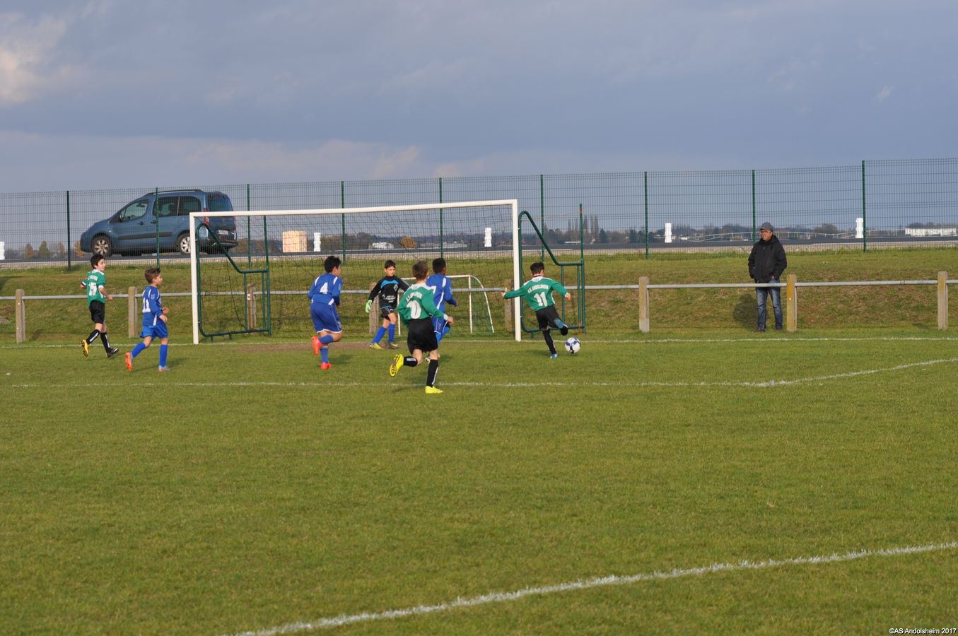 Sur une de leurs nombreuses actions, après un petit cafouillage, Andolsheim ouvre le score. Quelques minutes plus tard, deuxième cafouillage et deuxième but. Score à la mi-temps 2-0, malgré de nombreuses occasions.
