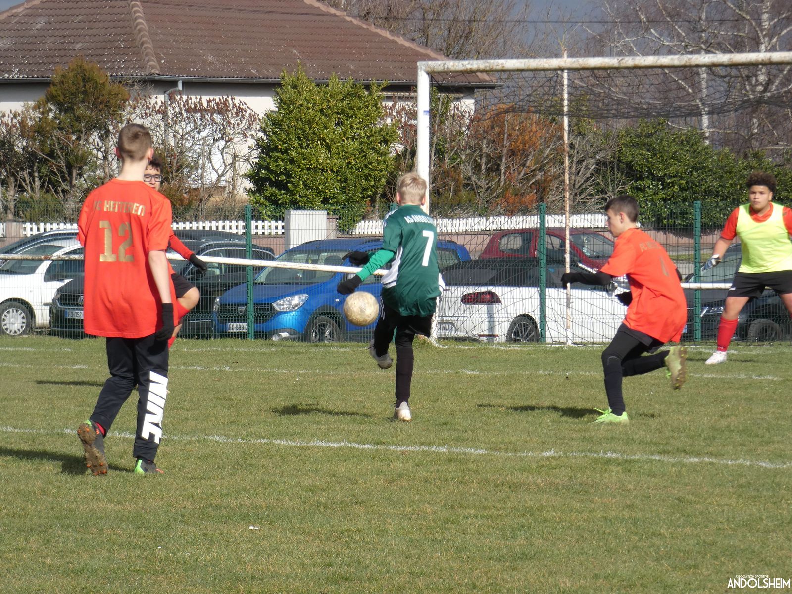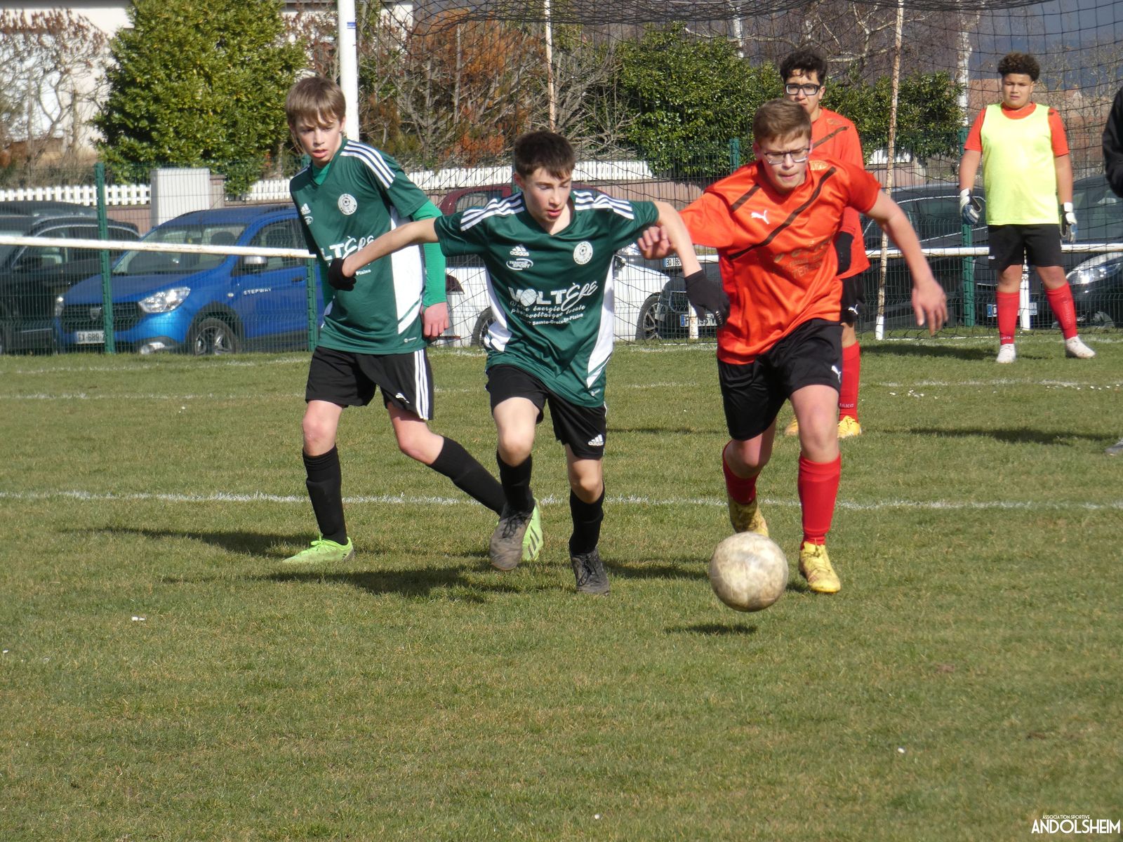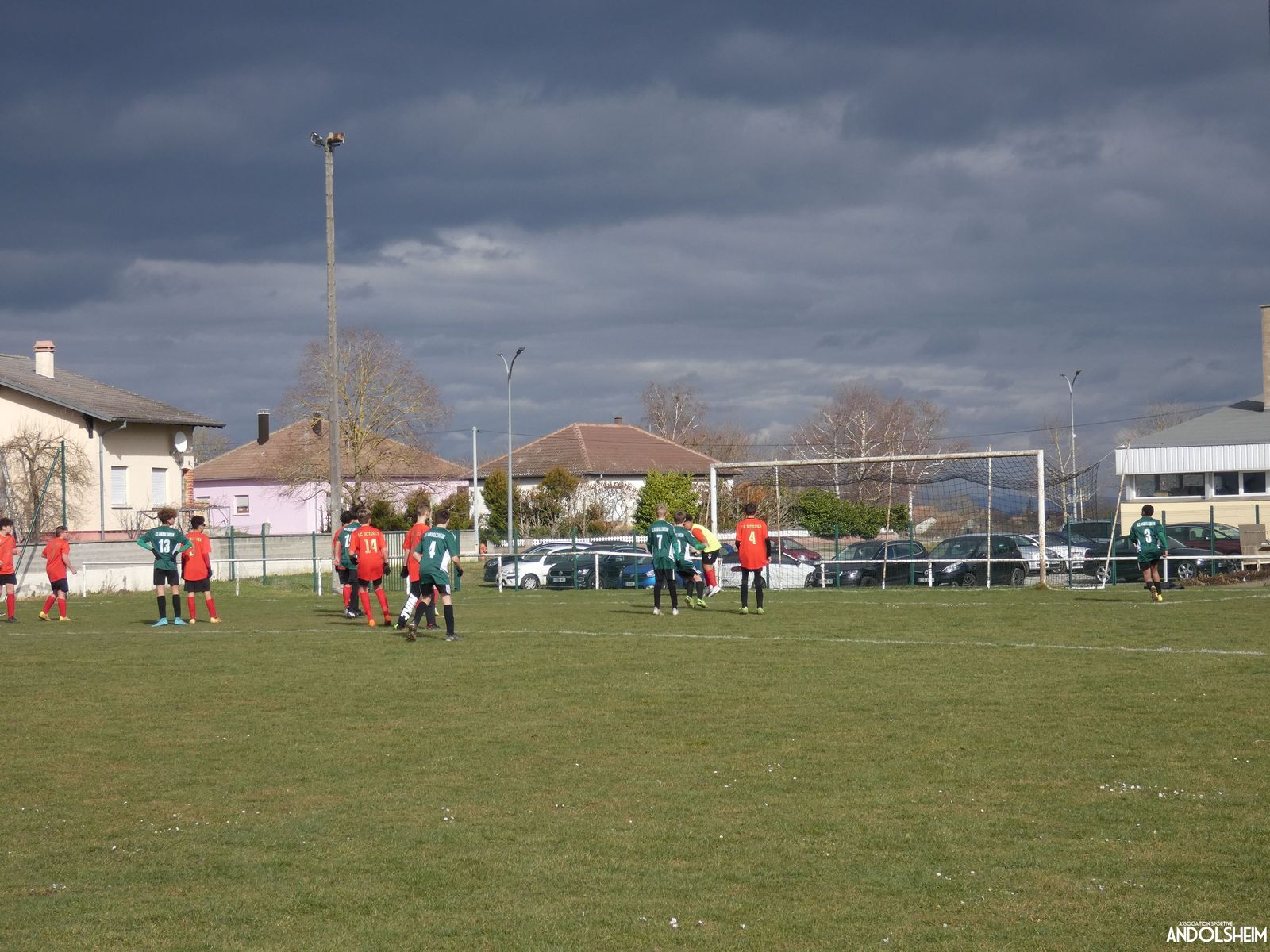 Nos Verts sont de suite dans la partie et se créent rapidement des occasions. Nos jeunes pousses monopolisent le ballon et il circule plutôt bien. Adrien fait de nombreux appels sur son coté droit et fini par servir Anthony qui marque dès la quinzième minute. But, malheureusement refusé par l'arbitre pour une position de hors-jeu. Dans la foulée nos adversaires répondent par une frappe lobant notre portier, but également refusé pour un hors-jeu. Une première mi-temps bien à l'avantage de nos Verts ! On constate déjà des progrès dans le placement et l'utilisation des surfaces mais également un manque cruel de finition face au but. Nos attaquants portent parfois trop le ballon et ne lèvent plus assez la tête. Le gardien du jour chez les « Rouges » semble avoir aimanté la balle, la plupart des tirs sont sur lui ! Le score en reste vierge à la mi-temps.