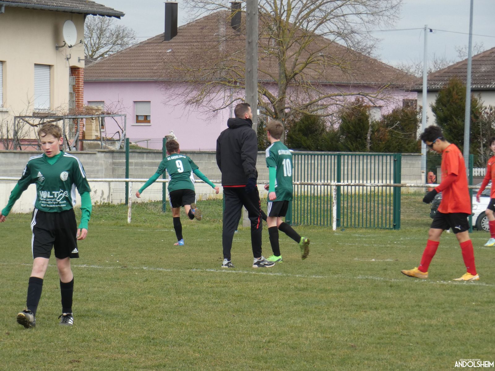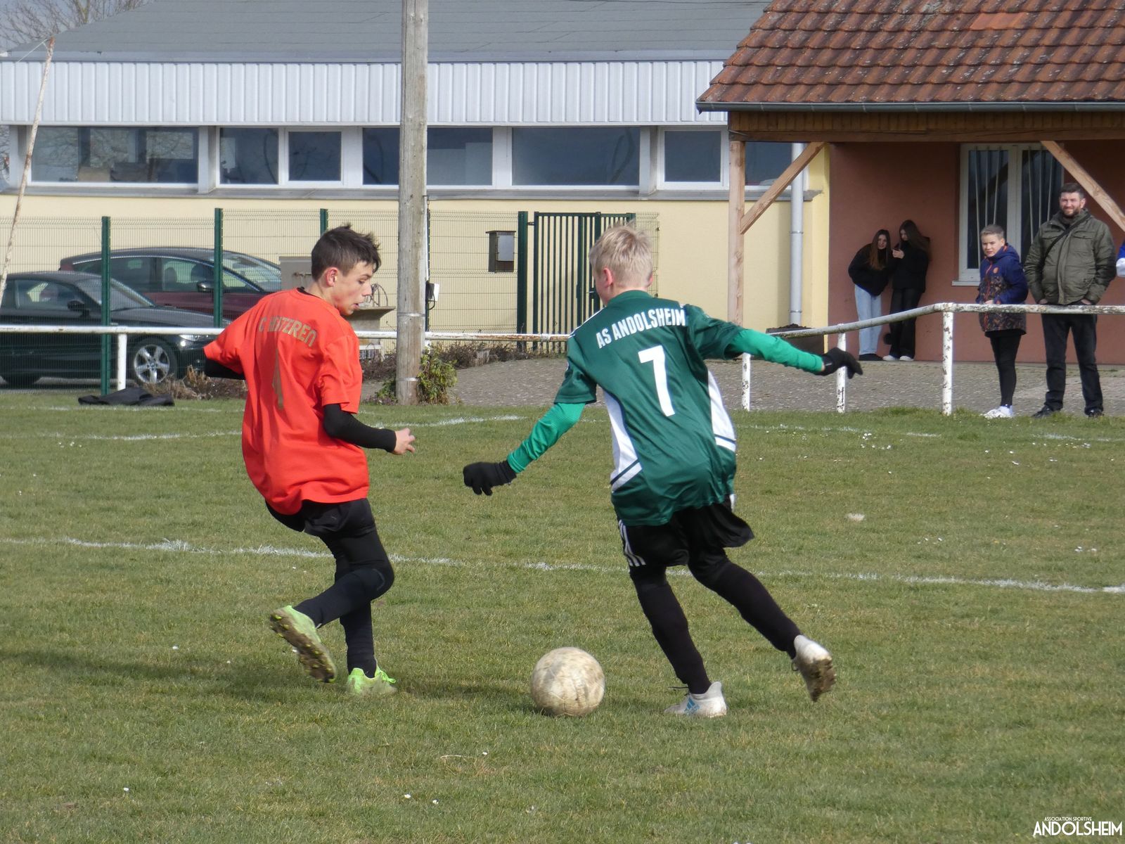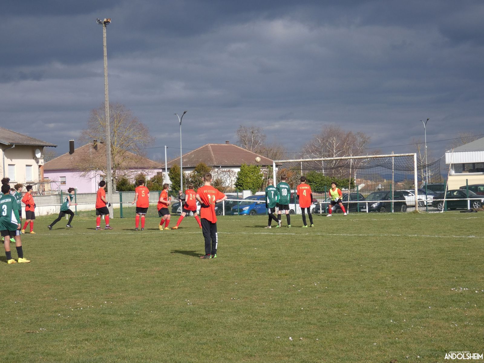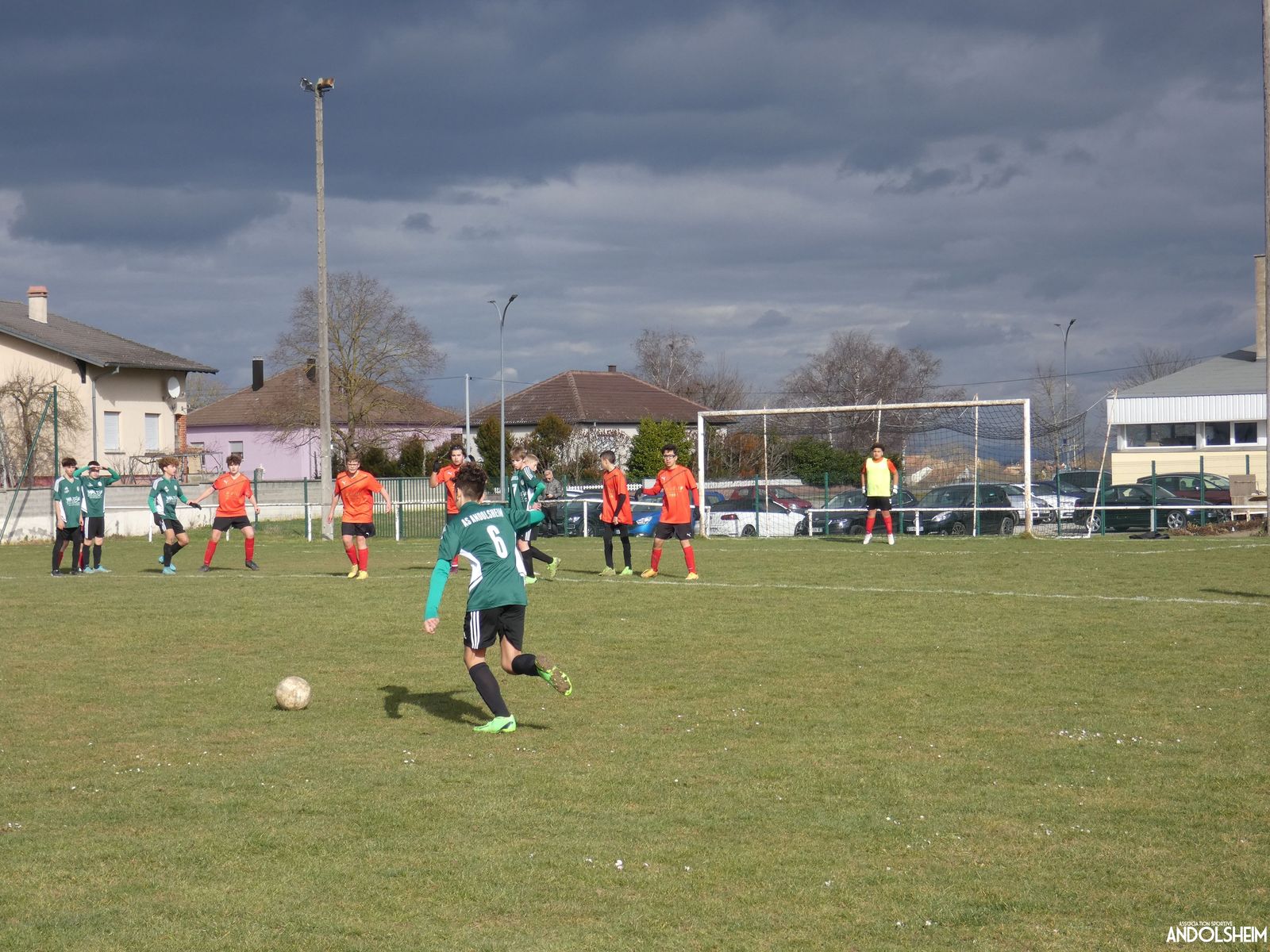 Nos Verts sont de suite dans la partie et se créent rapidement des occasions. Nos jeunes pousses monopolisent le ballon et il circule plutôt bien. Adrien fait de nombreux appels sur son coté droit et fini par servir Anthony qui marque dès la quinzième minute. But, malheureusement refusé par l'arbitre pour une position de hors-jeu. Dans la foulée nos adversaires répondent par une frappe lobant notre portier, but également refusé pour un hors-jeu. Une première mi-temps bien à l'avantage de nos Verts ! On constate déjà des progrès dans le placement et l'utilisation des surfaces mais également un manque cruel de finition face au but. Nos attaquants portent parfois trop le ballon et ne lèvent plus assez la tête. Le gardien du jour chez les « Rouges » semble avoir aimanté la balle, la plupart des tirs sont sur lui ! Le score en reste vierge à la mi-temps.