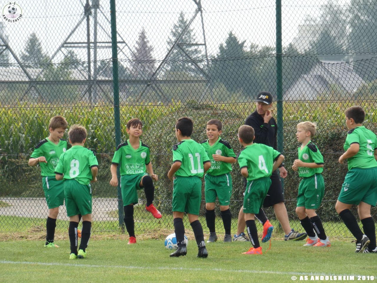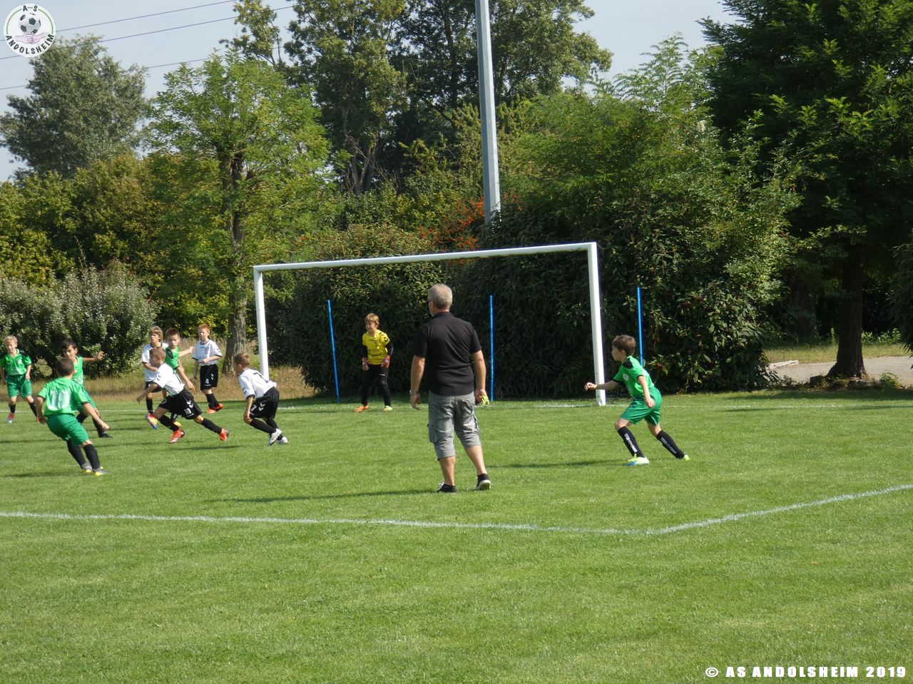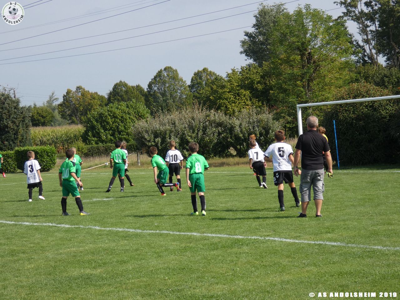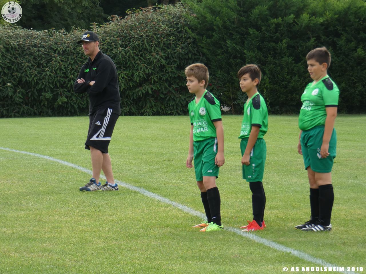Nos Verts commencent par un échauffement mené par Marc et Gérard puis démarrent leur première rencontre face au SR Colmar. Notre hôte étant en manque d’arbitre, c’est Eric, le papa d’Anthony, qui a officié dans cette fonction pour les matchs qui concernaient l’AS.Andolsheim.