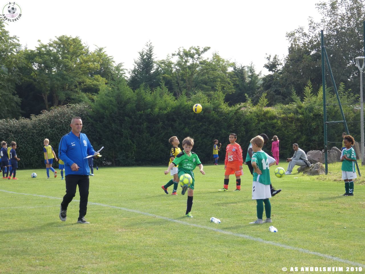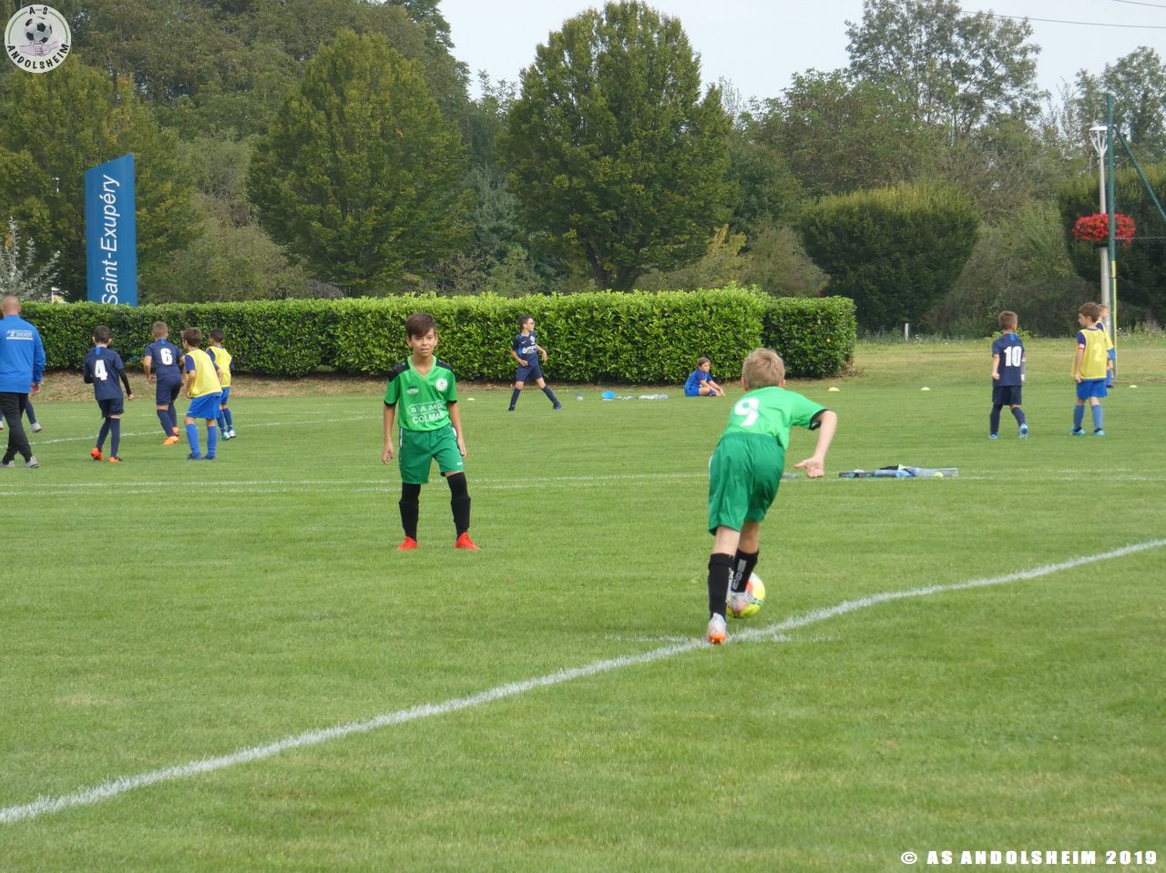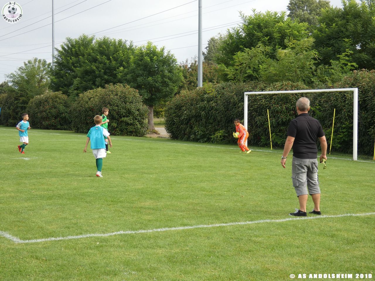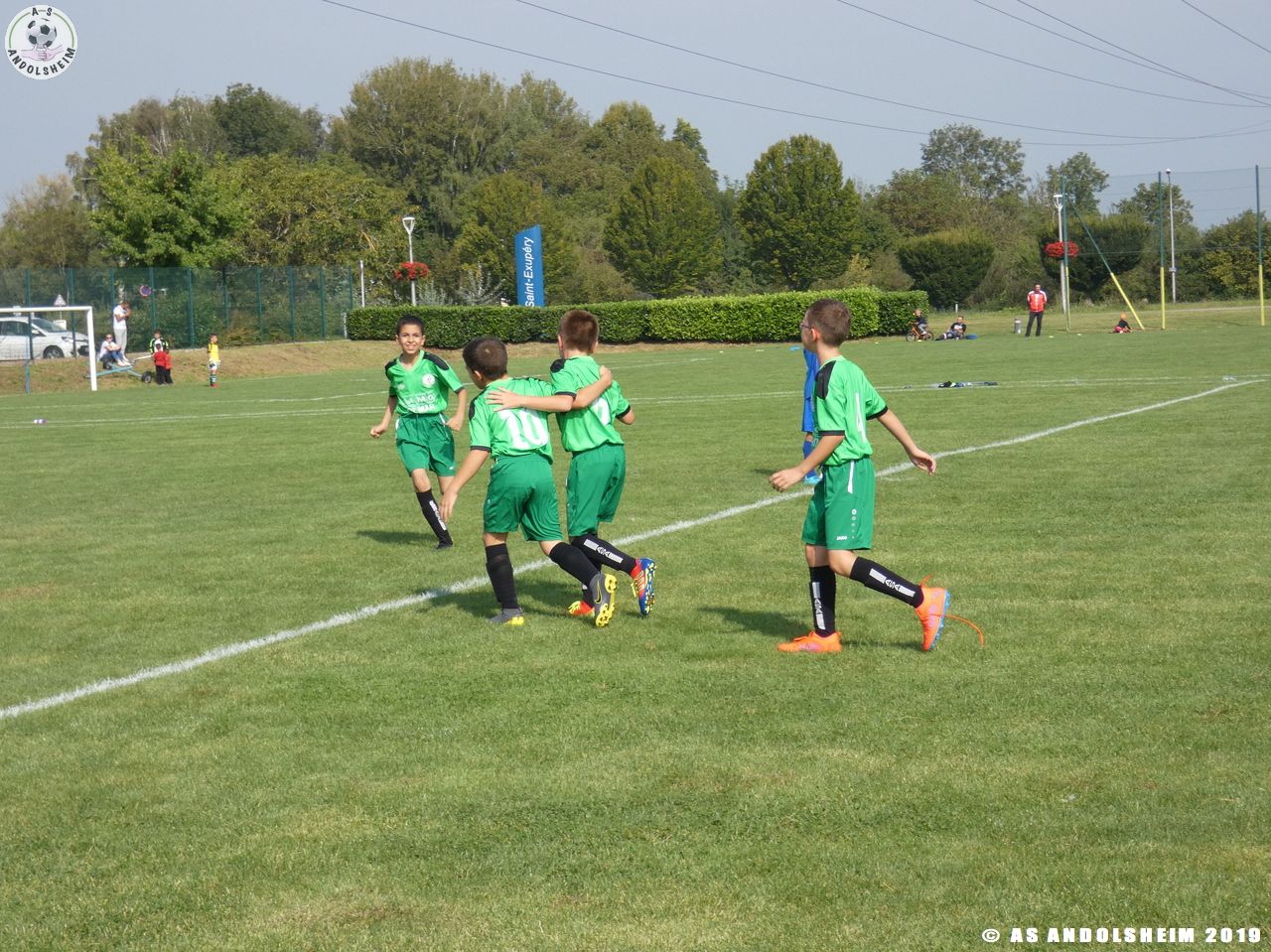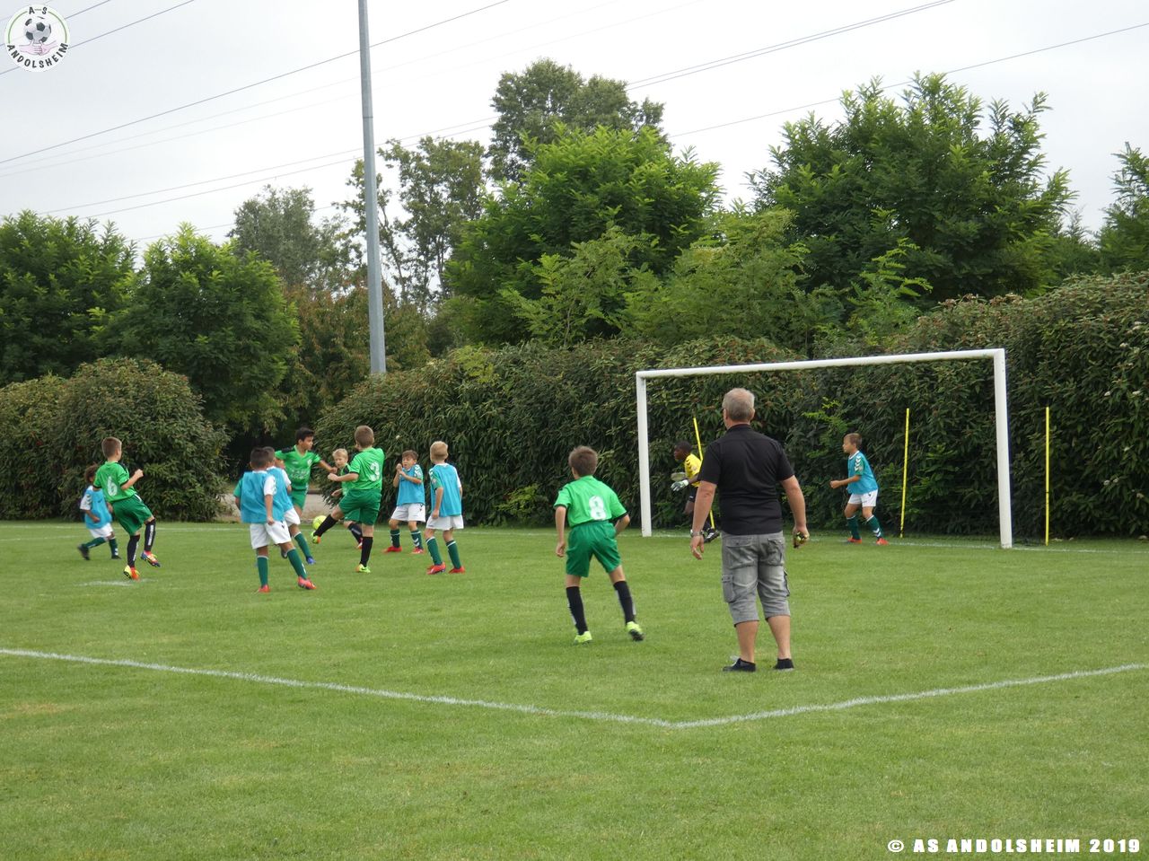Nos Verts commencent par un échauffement mené par Marc et Gérard puis démarrent leur première rencontre face au SR Colmar. Notre hôte étant en manque d’arbitre, c’est Eric, le papa d’Anthony, qui a officié dans cette fonction pour les matchs qui concernaient l’AS.Andolsheim.