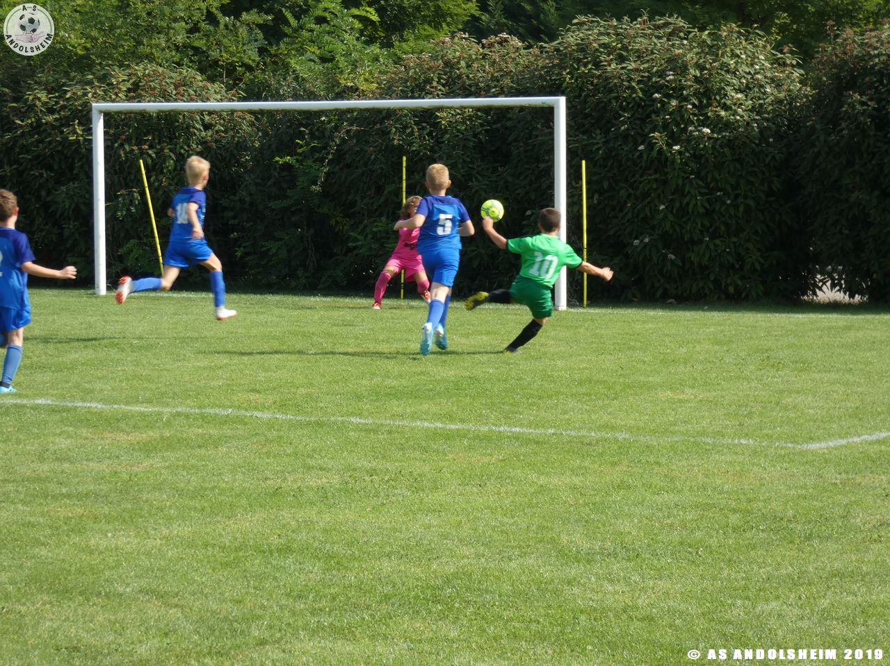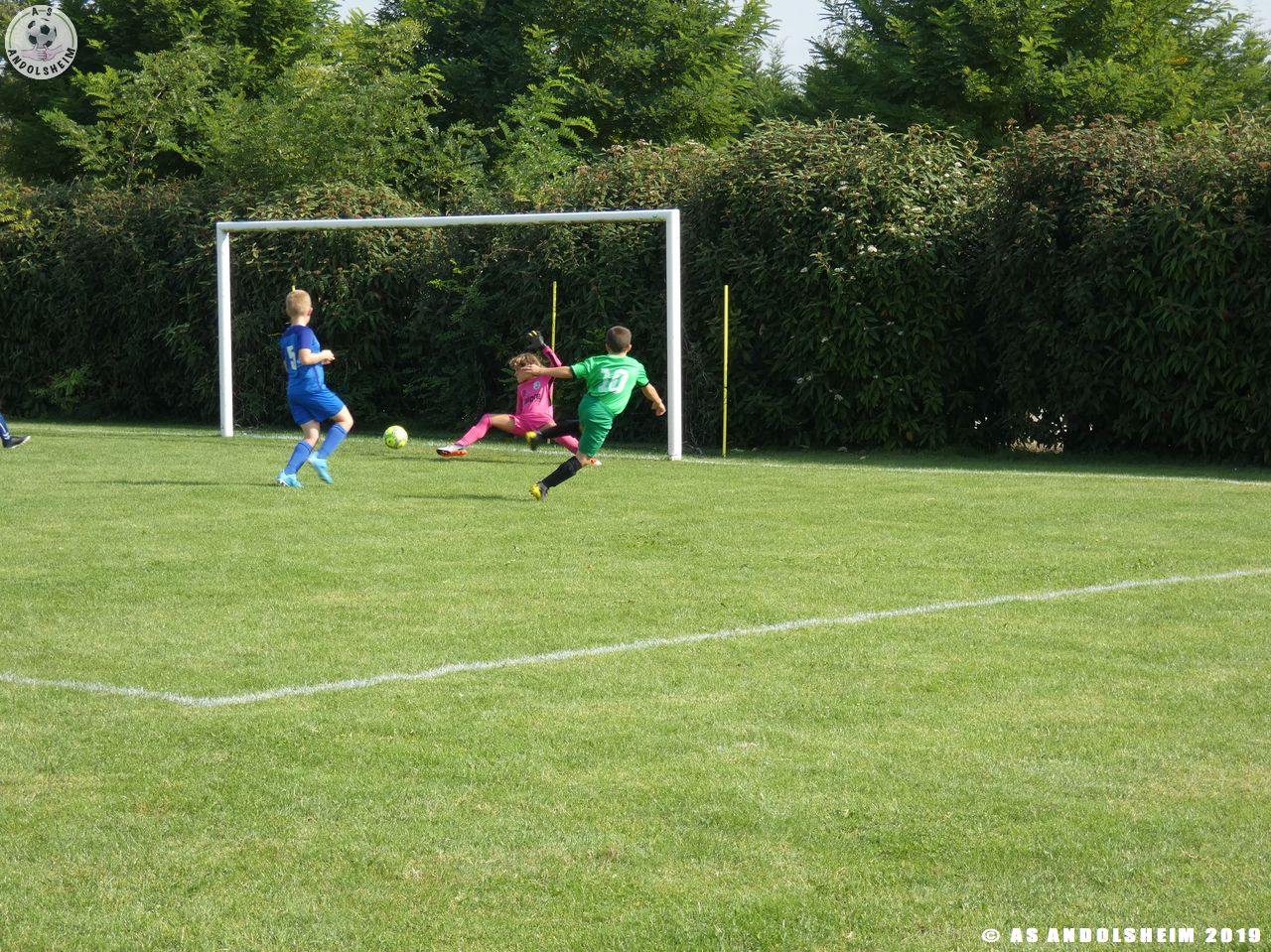 Pour finir cette matinée, nos Verts affrontent l’ACS Biesheim pour une mi-temps. Dès le début, l’ASA prend un but sur un contre. Bonne réaction de nos Verts grâce à une chevauchée solitaire de Diogo sur son côté droit, sa frappe finit par rentrer au fond des filets. 1-1