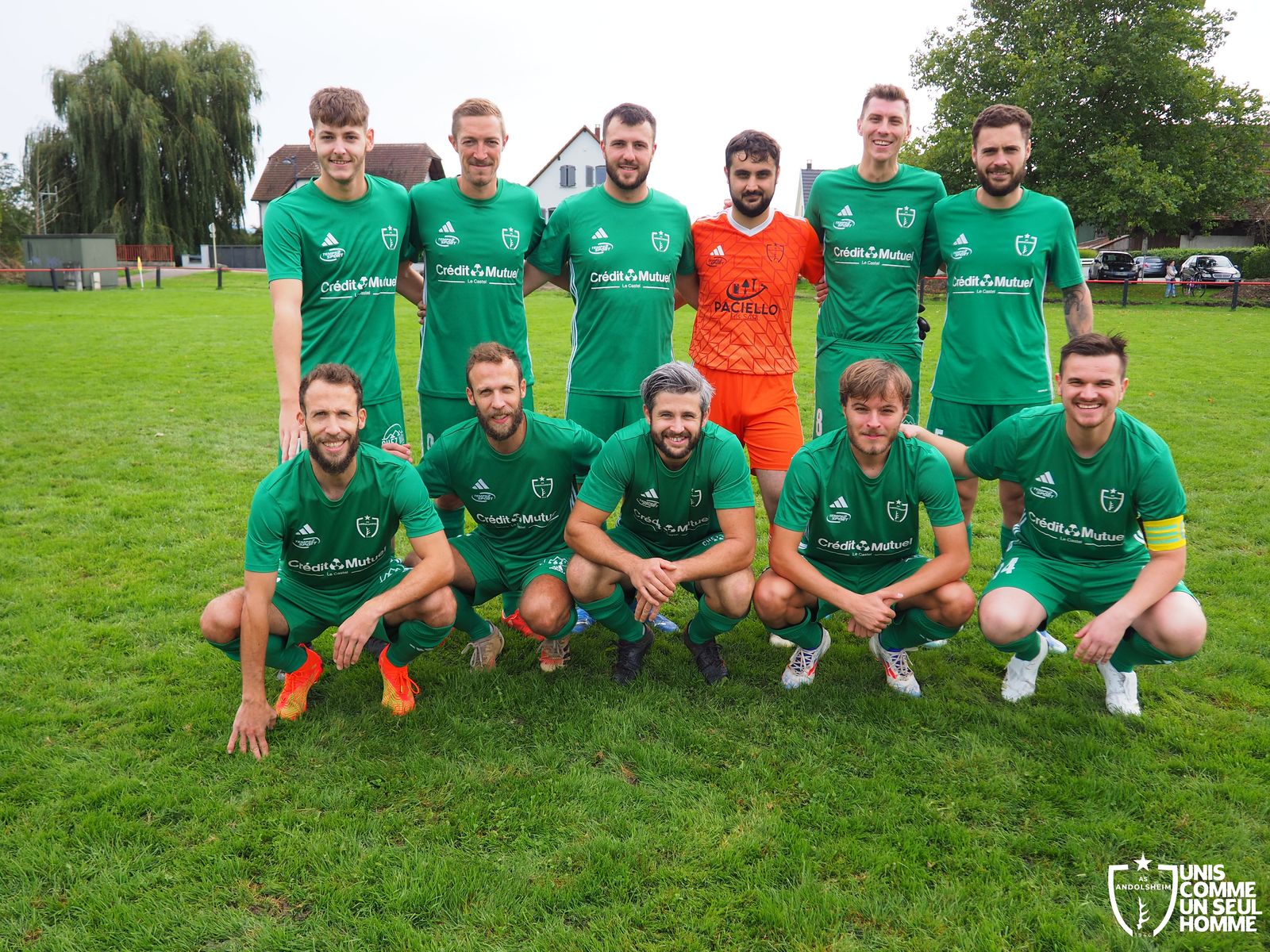 En ce dimanche agréable et automnal notre équipe fanion visite le joli village d’Artzenheim pour la coupe du Crédit Mutuel. Damien assure toujours l’intérim dans les cages, pendant que Vincent, et on félicite les heureux parents, s’occupe de son 3 ème enfant ! Serge se charge de la touche, et de nombreux seniors font le déplacement pour encourager la une. Mais pas que. Notre Pierrot, le Bernie, le couple Ramdame, et même le président Ferdinand Kranzer, et j'oublie beaucoup de monde, sont présents. On note enfin que c’est le premier match officiel, en équipe une, pour Arnaud et pour Loïc Reech. Loïc revient en fait dans son club de cœur puisqu’il a effectué toute sa scolarité footballistique à l’ASA entre 2010 et 2020. Welcome back !