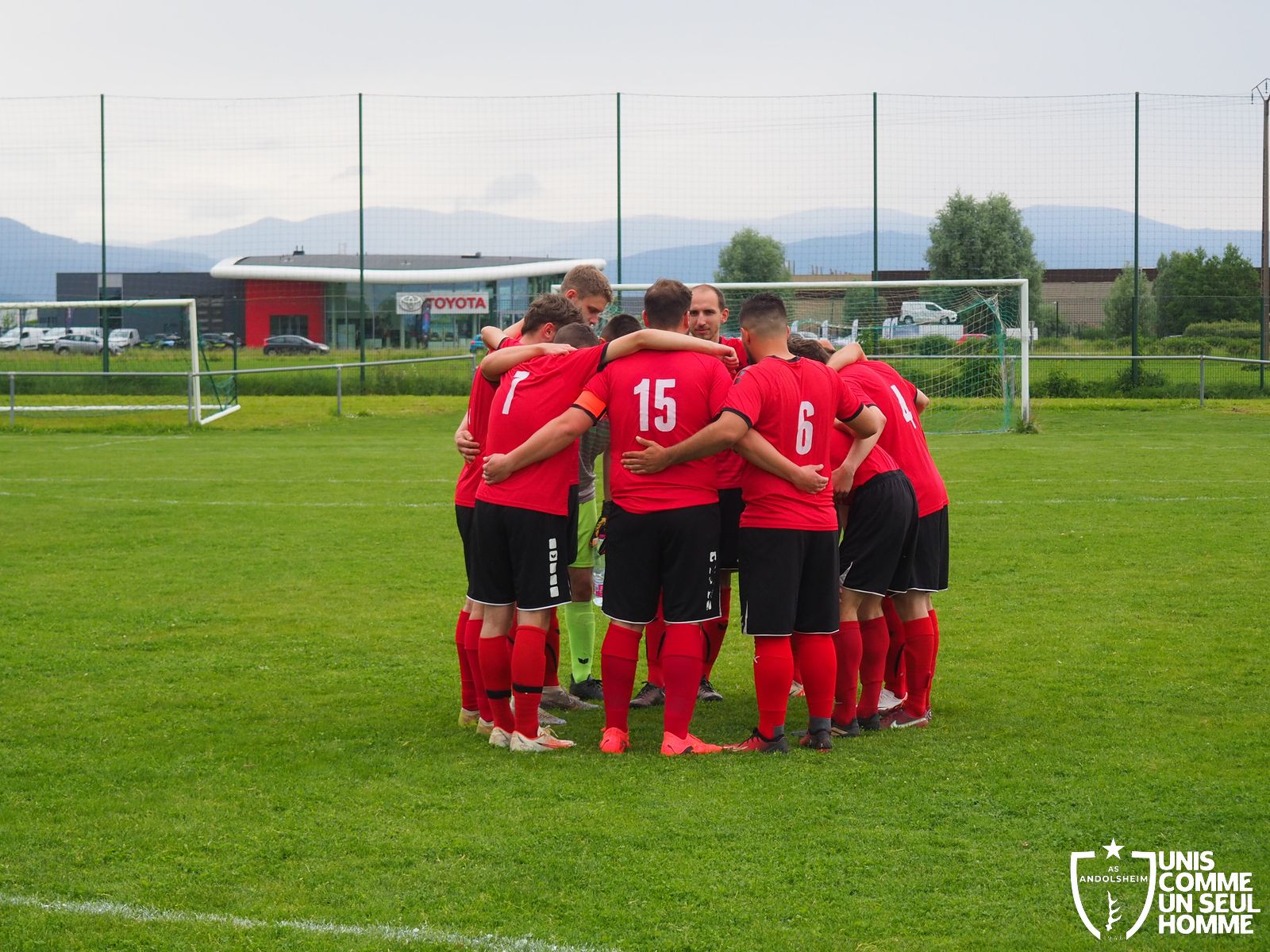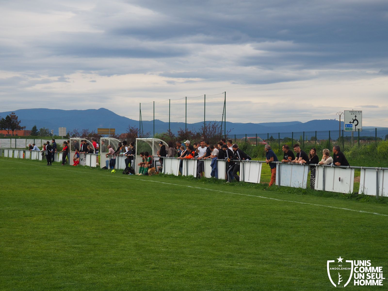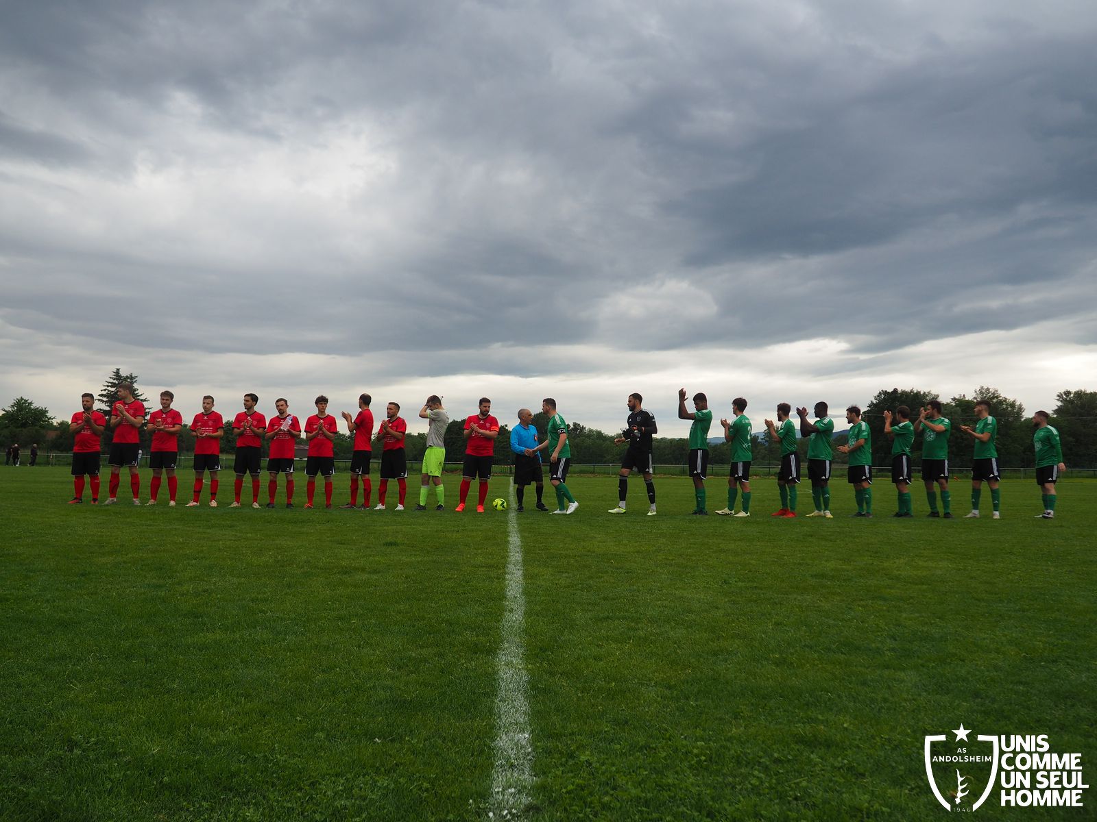 Coup de sifflet à 16 h 05 devant un public fidèle et avec Greg qui se dévoue pour tenir le drapeau de touche. WETTO, on le verra durant toute la rencontre, n’est pas venu faire de la figuration. Plusieurs actions chaudes pour les verts en début de rencontre, mais ça ne paye pas. Ce sont les rouges qui ouvrent le score à la 20e minute suite à un coup franc dévié. Vince est hors de cause, mais ça ne change rien : on est menés 0 – 1 dans un match qu’il faut gagner ! Huit minutes plus tard, Josh Parret trouve la faille… Et c’est l’égalisation pour l’AS ANDOLSHEIM !