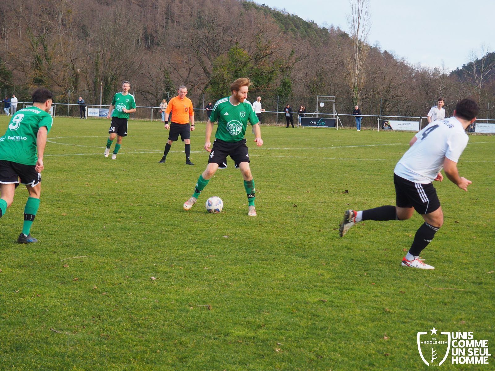 En ce dimanche ensoleillé et doux l’équipe fanion de l’AS ANDOLSHEIM visite le FC WINTZFELDEN OSENBACH. Christophe et Jérôme secondent activement Gilles, et Laury assure la touche avec maestria. (Non, non, ce n'est pas un joueur italien qui profite du mercato, c’est une expression.).