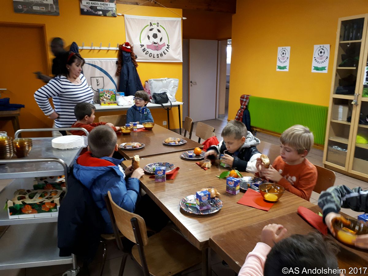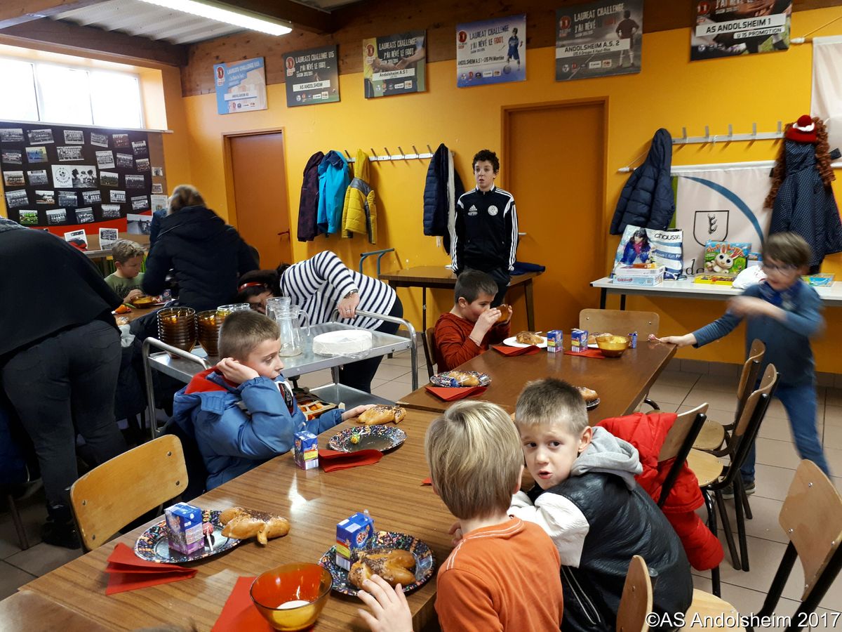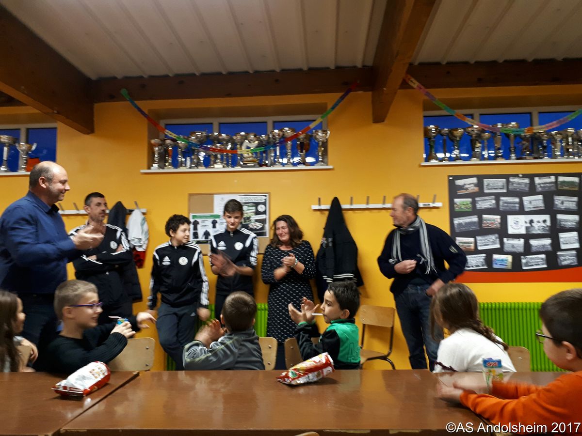 "La fête de Noël des U7 et U9 s'est déroulée dans une superbe ambiance, différents jeux de société suivi d'un goûter (manalas, chocolat chaud, mandarines etc). Le Président était présent, il a fait son allocution en remerciant le dévouement et l'implication des coachs et surtout féliciter les jeunes pour leur comportement. Suite aux compliments du Président Emmanuelle a été très touchée émotionnellement. Ensuite nos jeunes pousses ont tous reçu en cadeau un magnifique tshirt aux couleurs du club. Lidia, mon épouse et moi même apprécions le travail d'Emmanuelle, une vraie maman poule, sans oublier Maxime, un jeune remarquable avec beaucoup de qualités, et Alain qui s'occupe des entraînements gardiens. Grâce à eux, nos jeunes progressent. Bien sûr, bravo à l'ensemble des coachs ainsi qu'au Président qui s'investissent pour ce club."