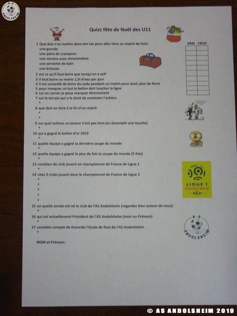 Pascal WUEST coach des U11 a préparé un quizz pour les jeunes avec différentes questions sur les règles sur le terrain, des questions sur la ligue 1 et des questions sur l'ASA.