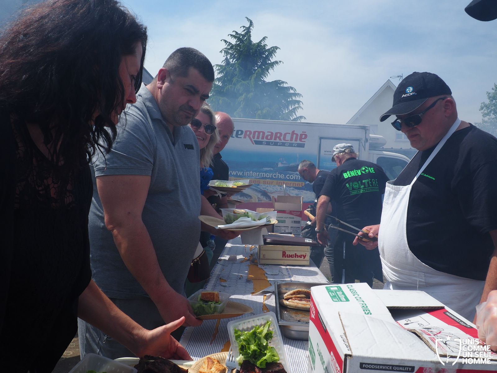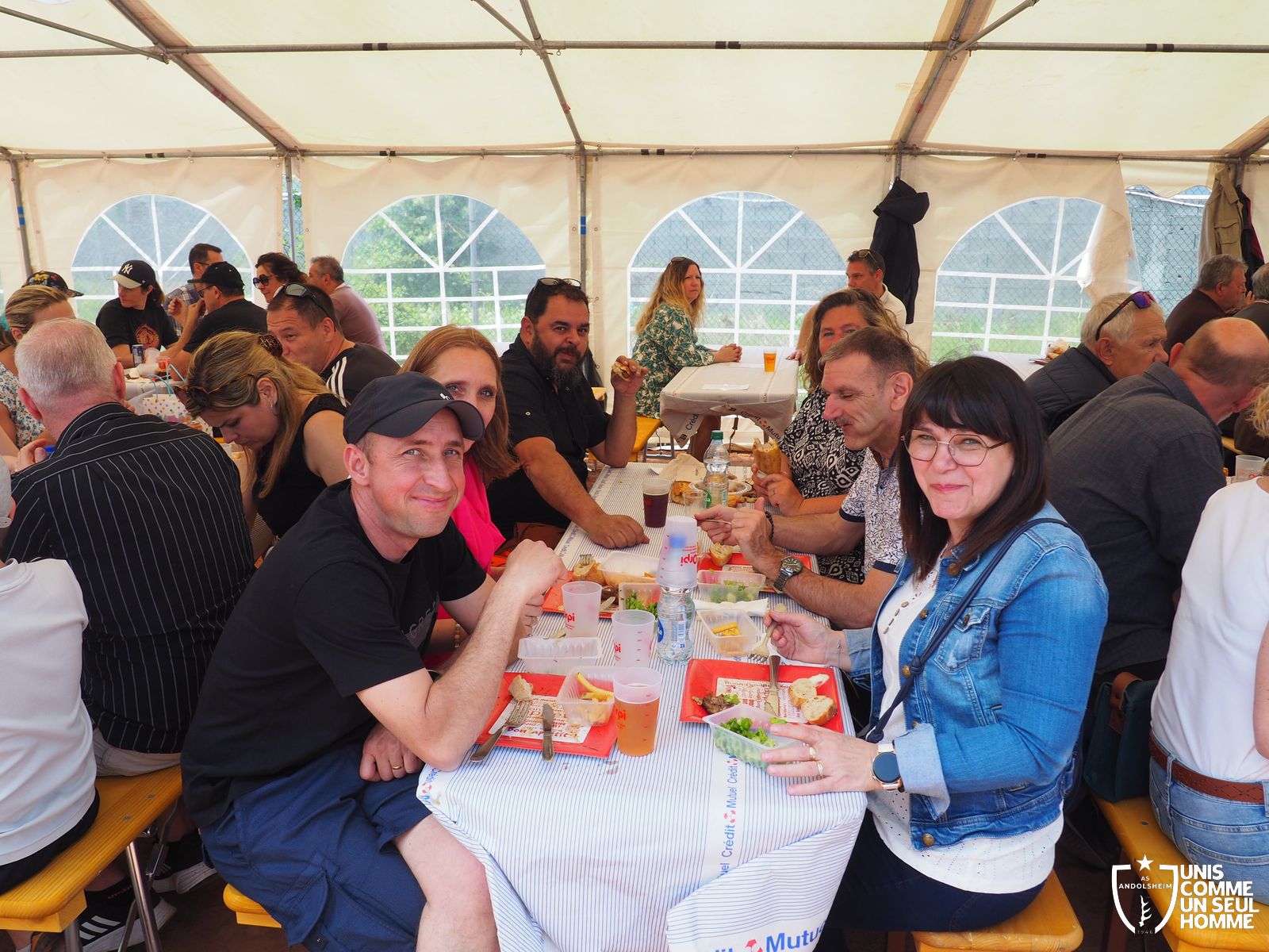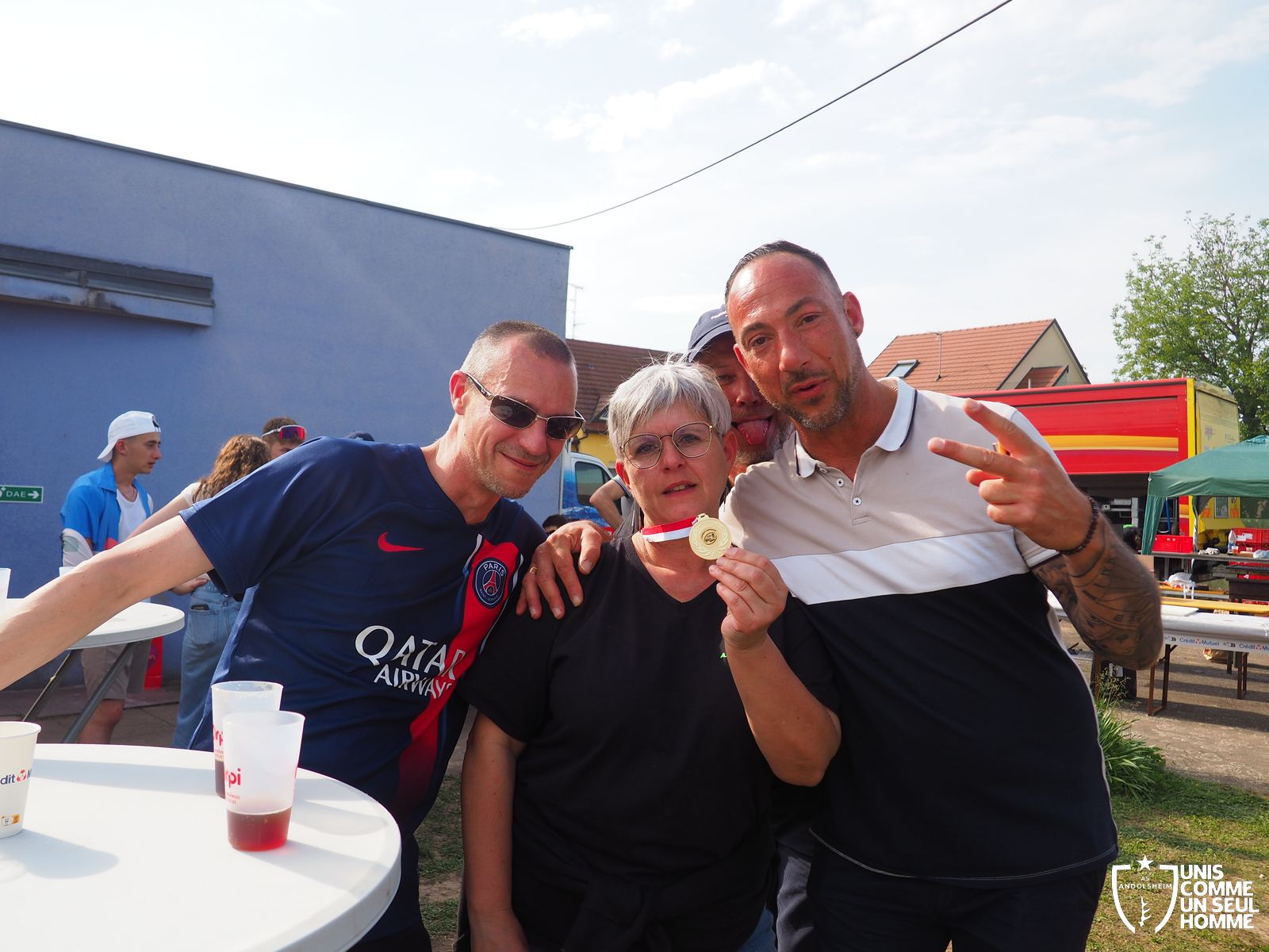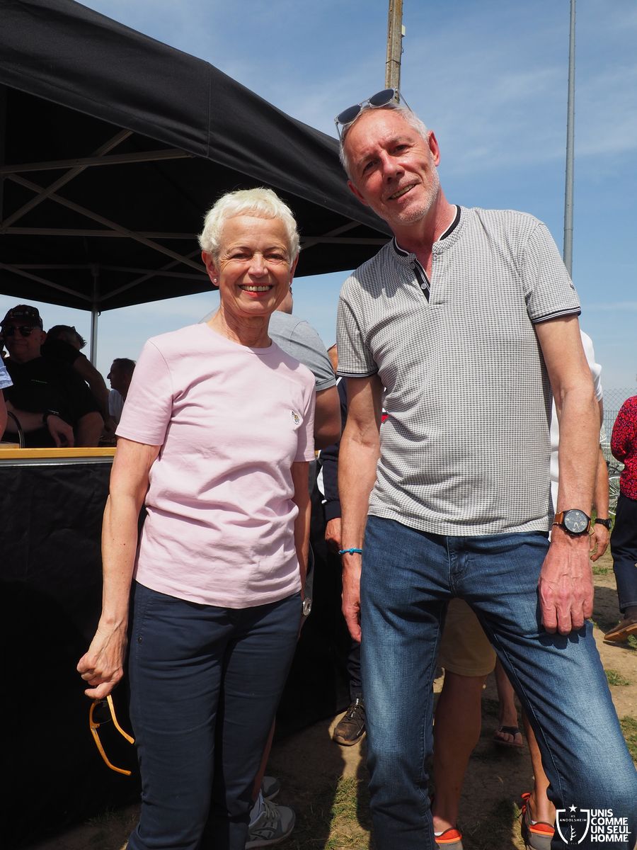 L’ambiance est à son comble dès le début du repas, sous un soleil radieux, mais le point d’orgue est encore à venir… La fédération française des médaillés de la jeunesse, des sports, et de l’engagement associatif, la FFMJSEA, nous honore de sa présence. Son président Rolland Sutter va en effet décorer de la médaille du bénévolat 3 courageux bénévoles, et notamment Christelle et notre président Franz. Notre chère Christelle, aussi étonnée qu'émue, mérite bien cette reconnaissance, comme notre président, et tous deux ont pu parader, médaille au cou, dans une ambiance digne des Jeux olympiques. Bravo à Christel et Francis !