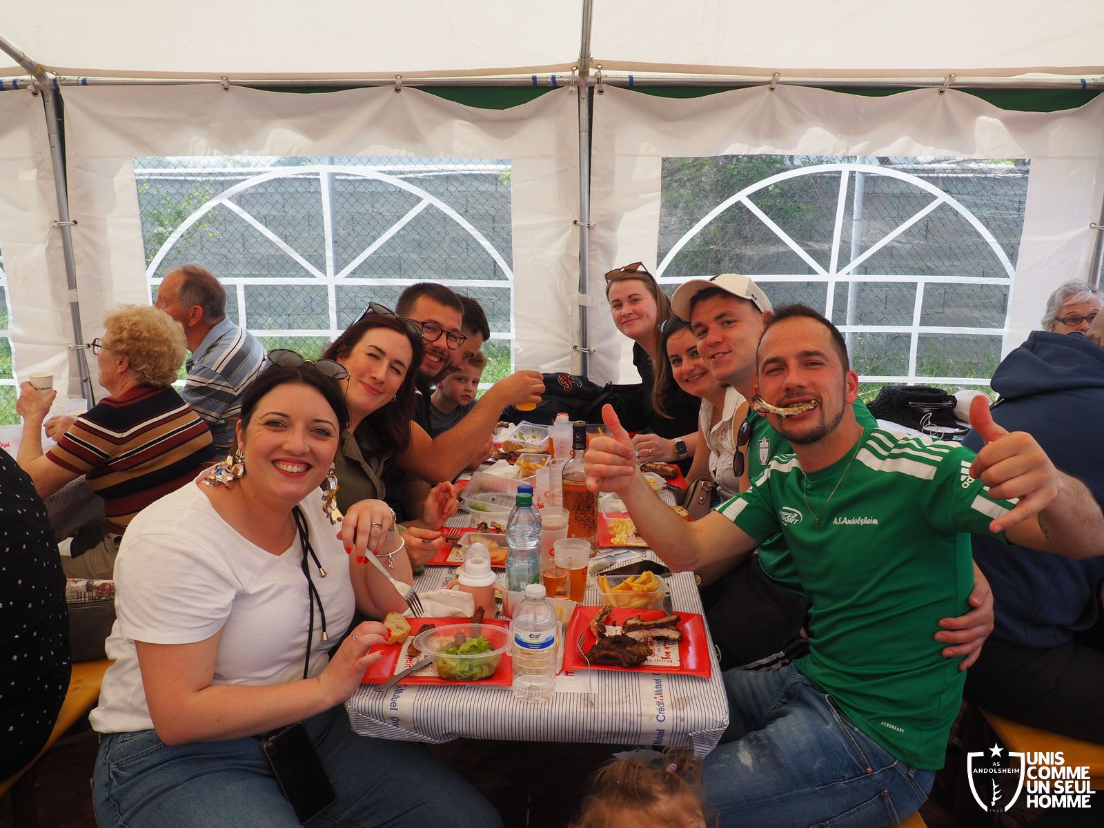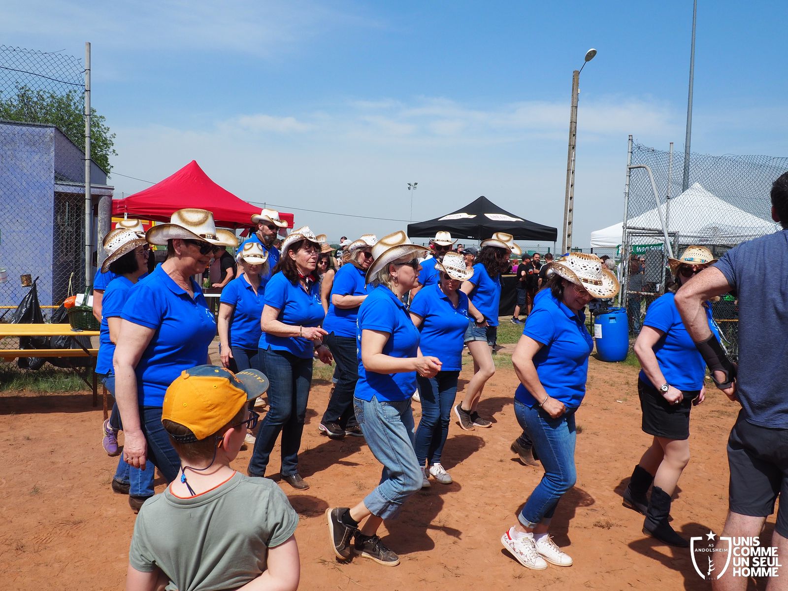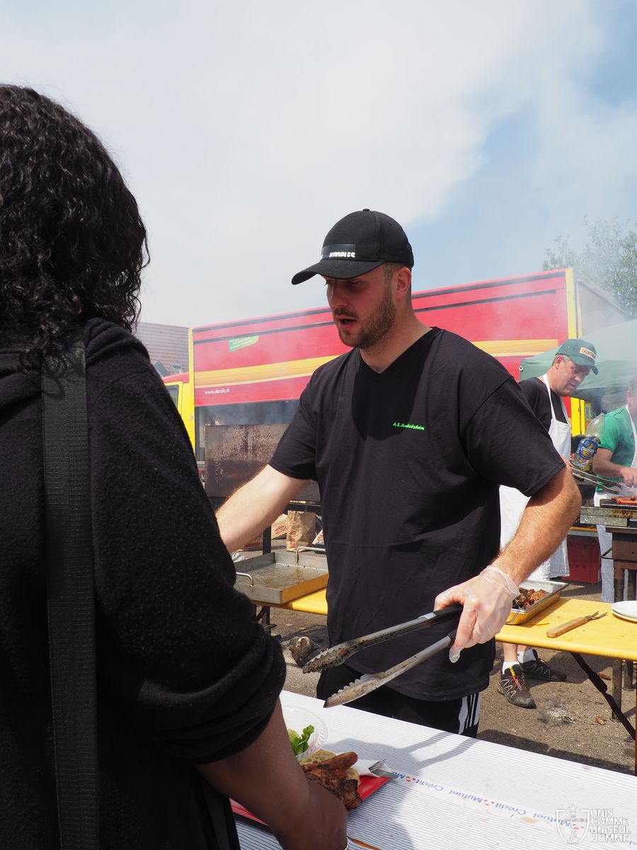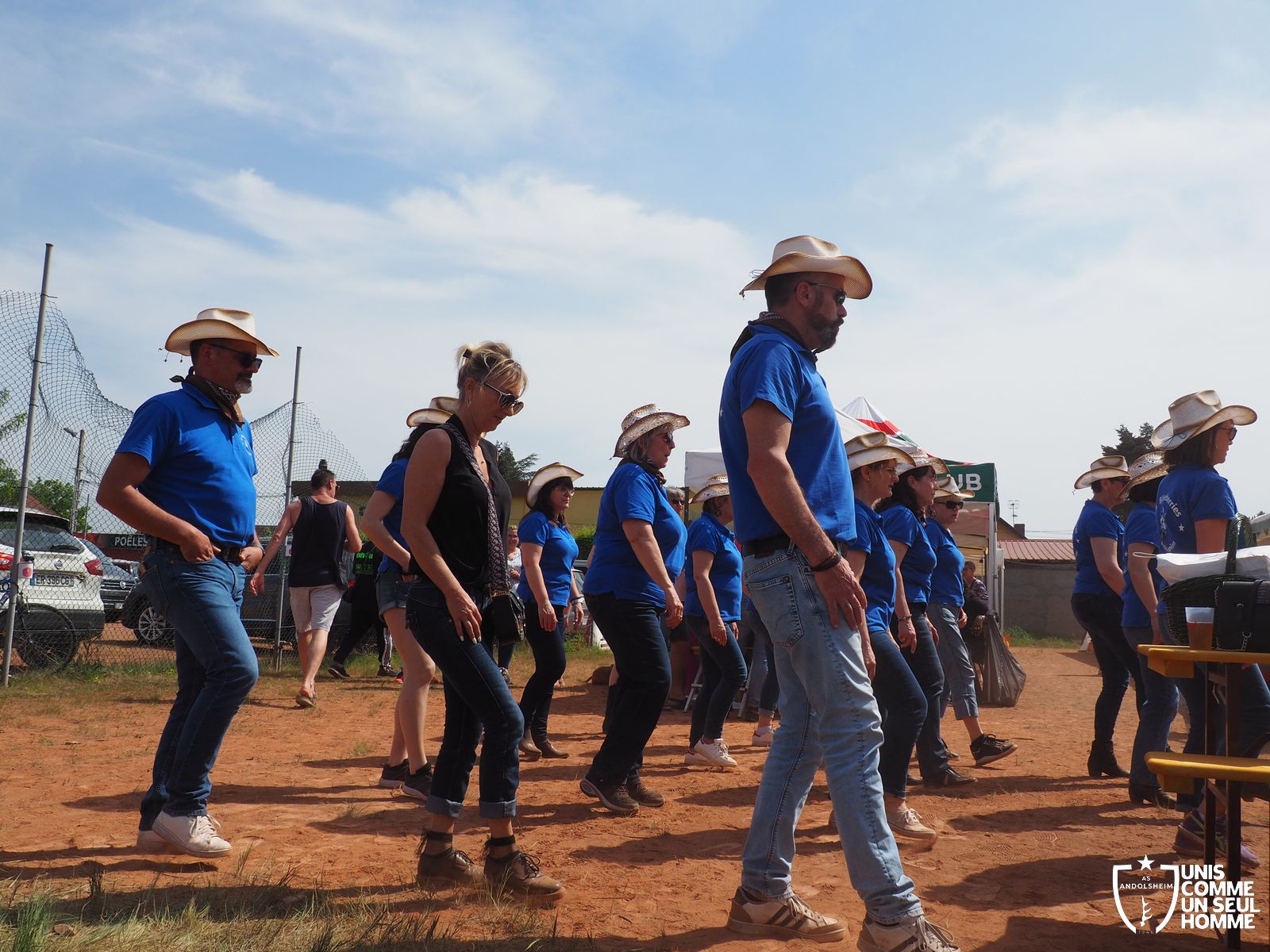En ce mercredi 1er mai l’ASSOCIATION SPORTIVE d’ ANDOLSHEIM organise au stade de l’Ill sa traditionnelle Garden Grill Party. Tous les bénévoles de l’ASA sont mobilisés pour proposer côtelettes, ribs, saucisses blanches, merguez, frites, salades, sandwiches, desserts et boissons diverses, voire carrément alsaciennes. Le public est nombreux, joyeux, et satisfait. On note la présence de l’intégralité du Conseil municipal, autour du maire Christian Rebert, et la participation chaleureuse du groupe de danse américaine les "BLUEBERRIES". Cette sympathique formation du village nous avait déjà régalé avec son entrainante chorégraphie western et country lors de manifestations précédentes.