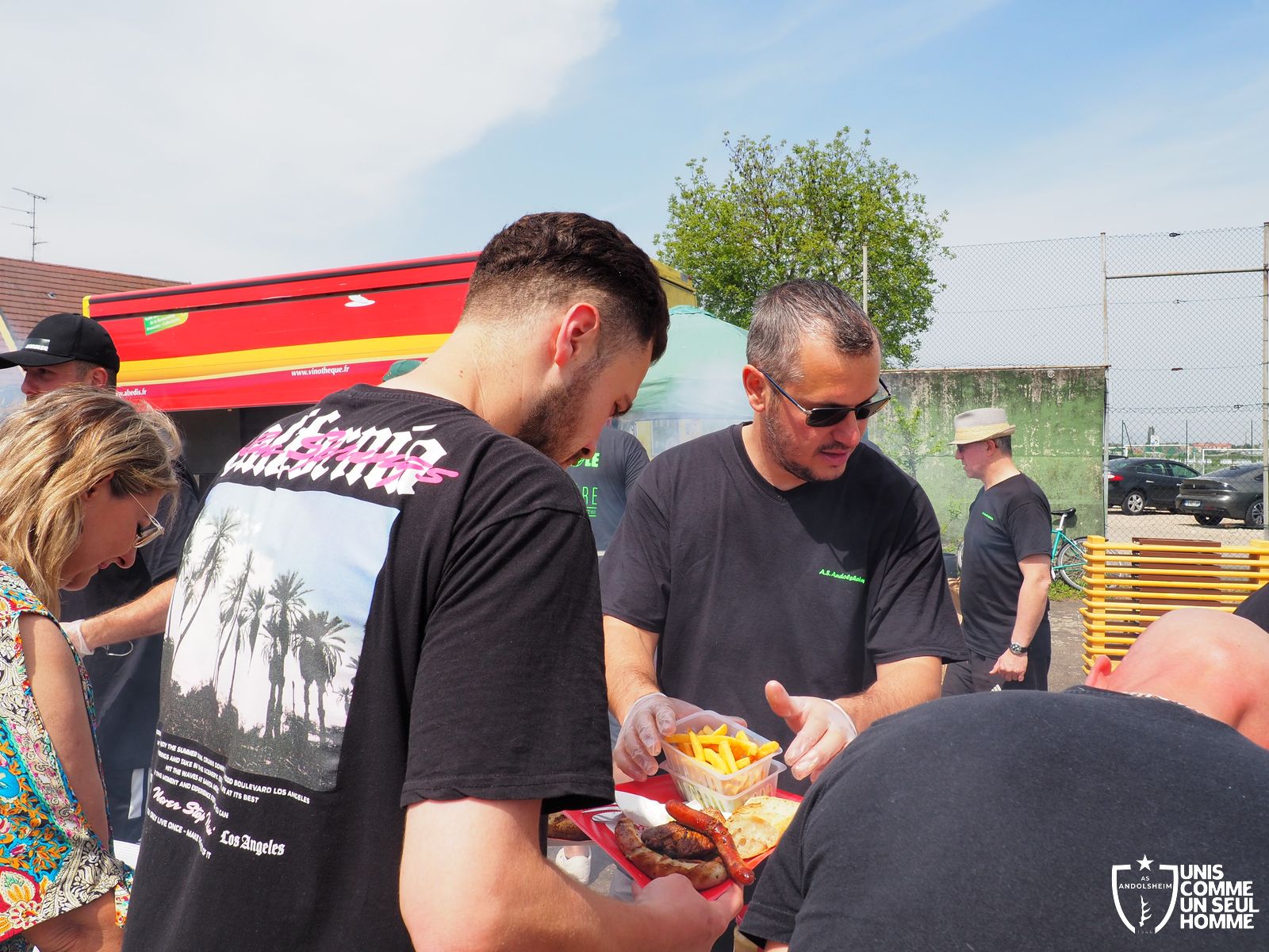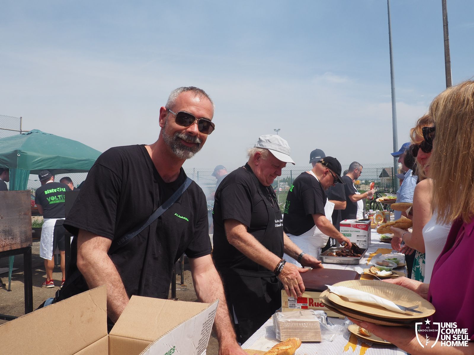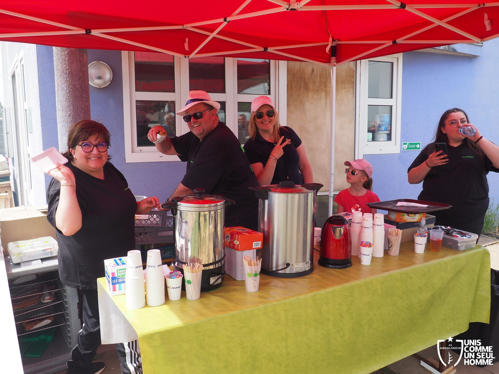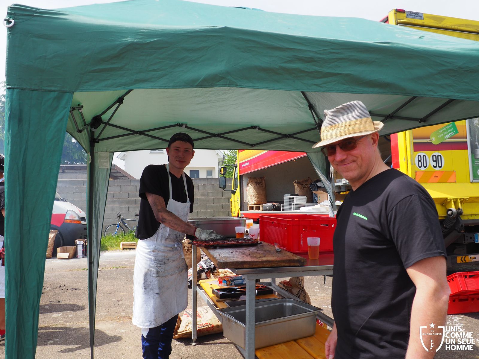 En ce mercredi 1er mai l’ASSOCIATION SPORTIVE d’ ANDOLSHEIM organise au stade de l’Ill sa traditionnelle Garden Grill Party. Tous les bénévoles de l’ASA sont mobilisés pour proposer côtelettes, ribs, saucisses blanches, merguez, frites, salades, sandwiches, desserts et boissons diverses, voire carrément alsaciennes. Le public est nombreux, joyeux, et satisfait. On note la présence de l’intégralité du Conseil municipal, autour du maire Christian Rebert, et la participation chaleureuse du groupe de danse américaine les "BLUEBERRIES". Cette sympathique formation du village nous avait déjà régalé avec son entrainante chorégraphie western et country lors de manifestations précédentes.