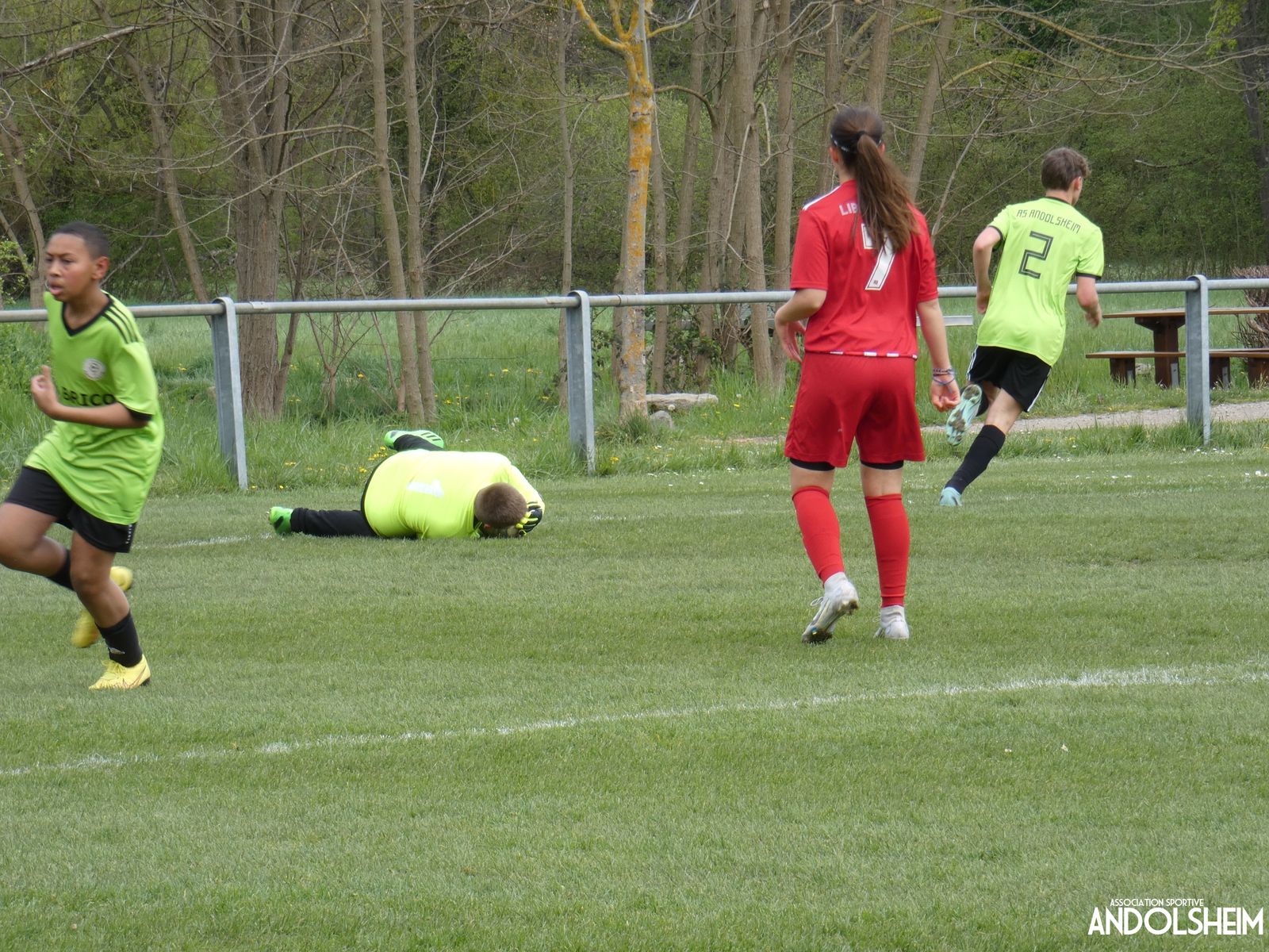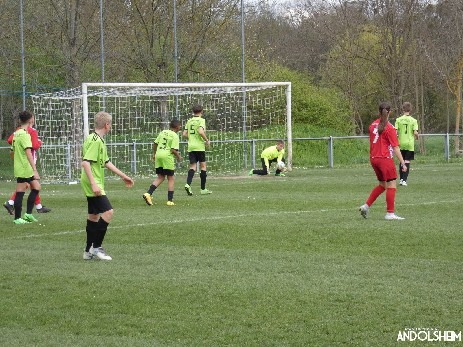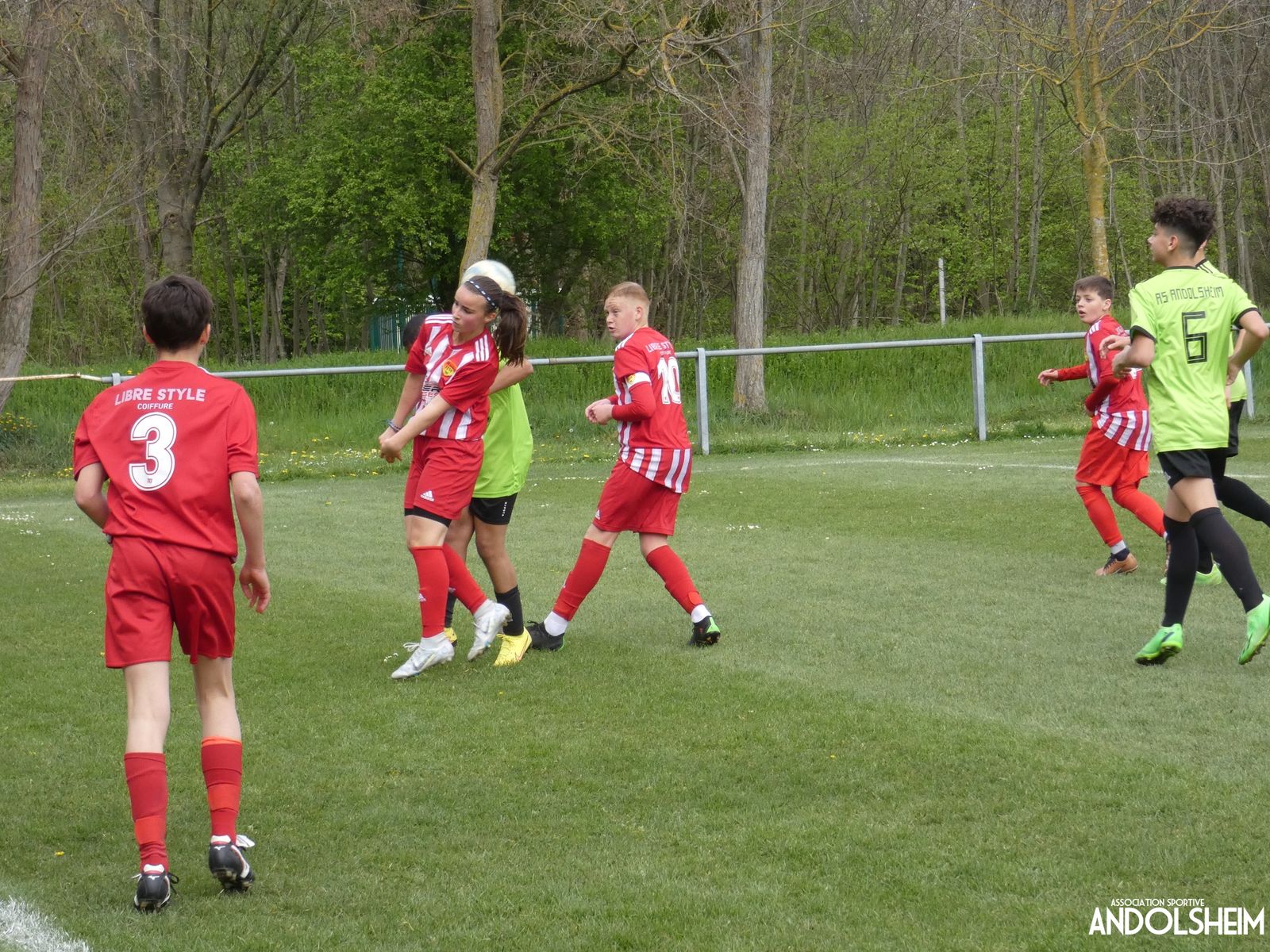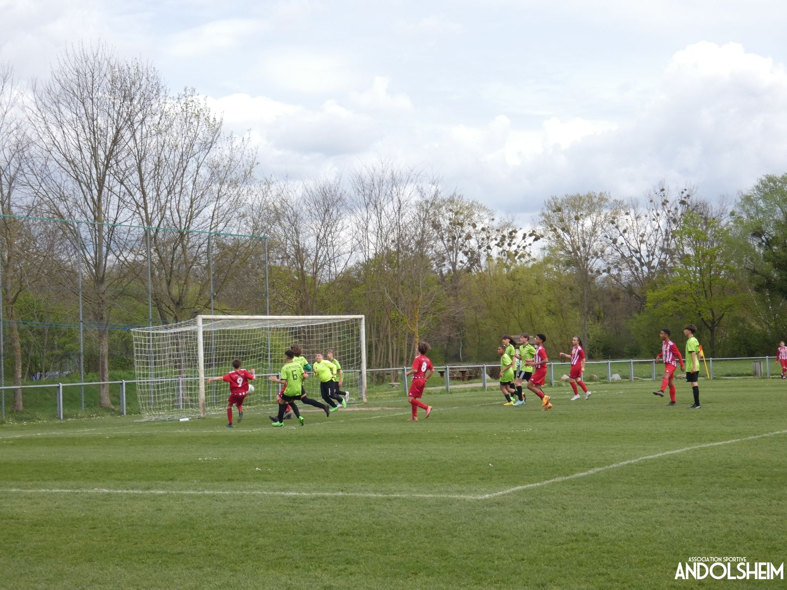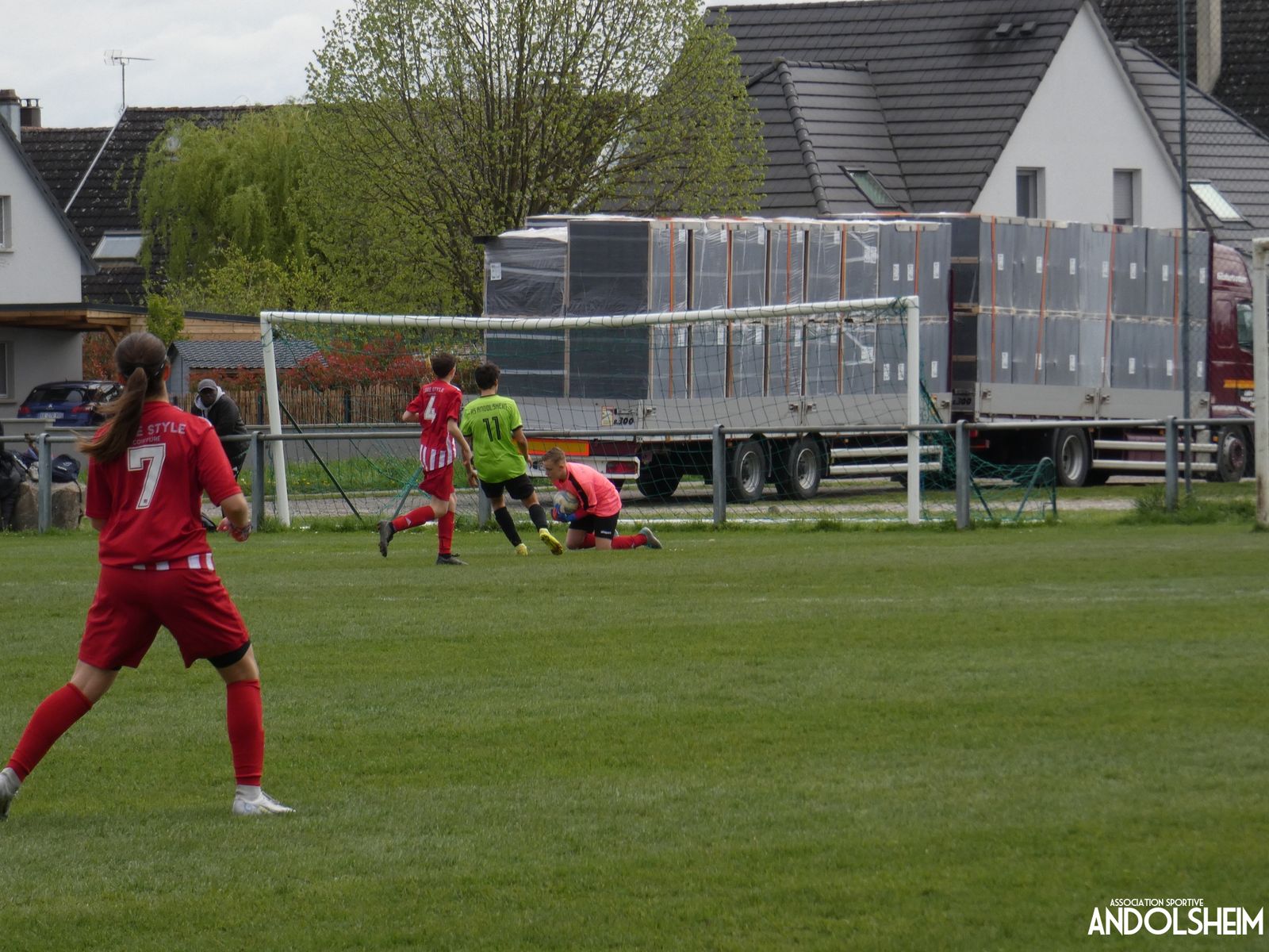 Nos « Verts » sont en place en ce début de rencontre et essaient de construire sur cette surface dure où la balle est plus difficile à maîtriser. Thomas ne cesse de guider nos jeunes dans le placement et cela fonctionne plutôt bien. Le jeu est équilibré et notre défense tient malgré les nombreuses tentatives d’incursions côté gauche. Lucas O. bloque bien la numéro 7 rouge qui possède un beau touché de balle. Toujours pas d’ouverture du score dans cette première mi-temps malgré trois occasions respectives de Ruben, Lucas G. et Justin. « On porte trop le ballon et on le perd, il faut tenter des tirs vers le but » indique Thomas à la pause.