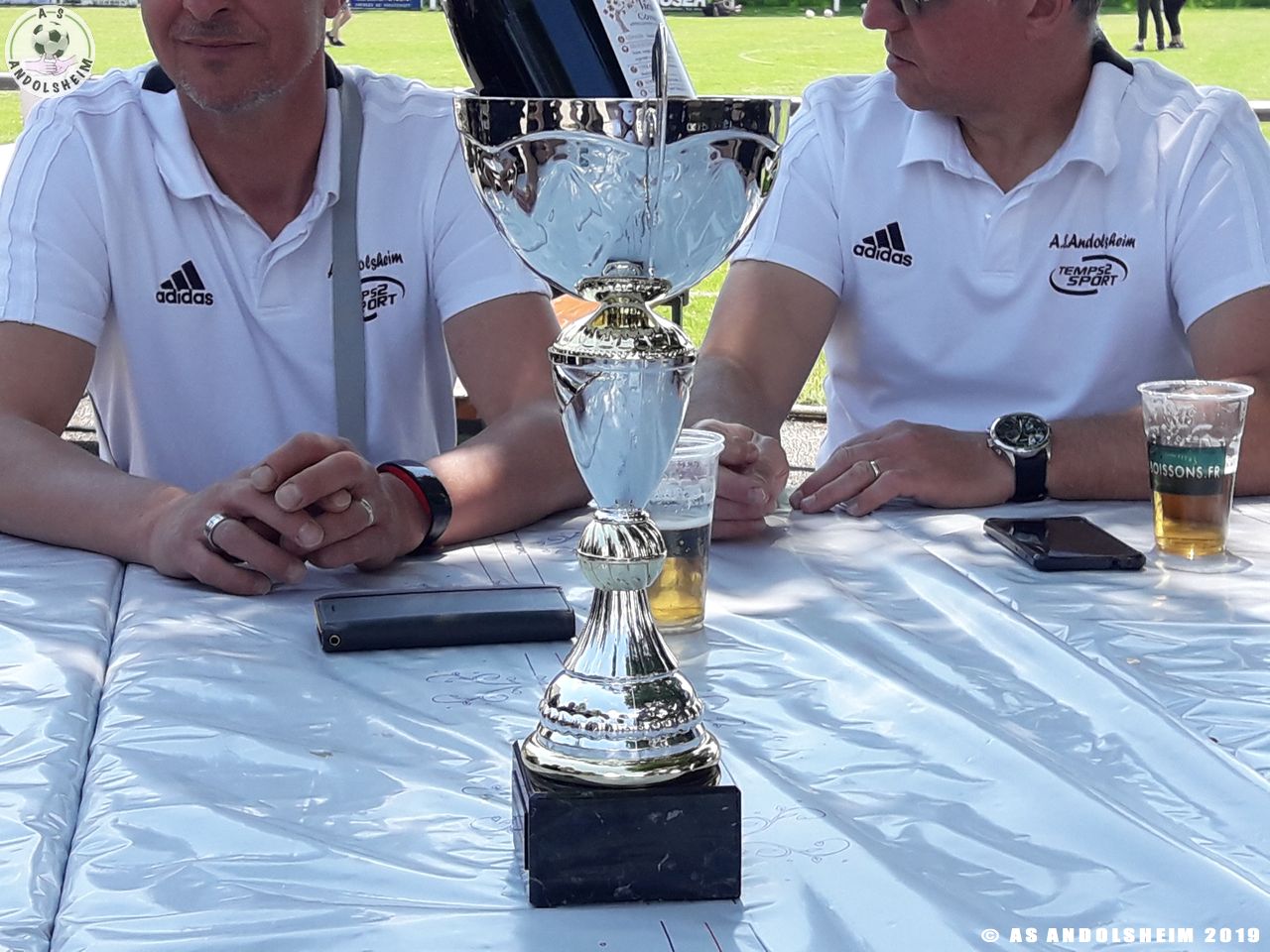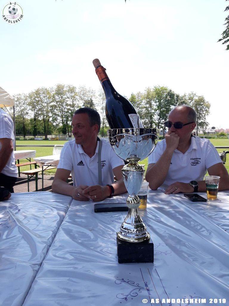 Bravo aux joueurs et surtout à nos buteurs du jour pour les deux matches gagnés et pour le nul de fin de tournoi. A l’issue du premier verre de la victoire, nos Verts ont soulevé la coupe du vainqueur. Le FC Hirzfelden est le dauphin du jour et Fortschwihr complète la troisième marche du podium.