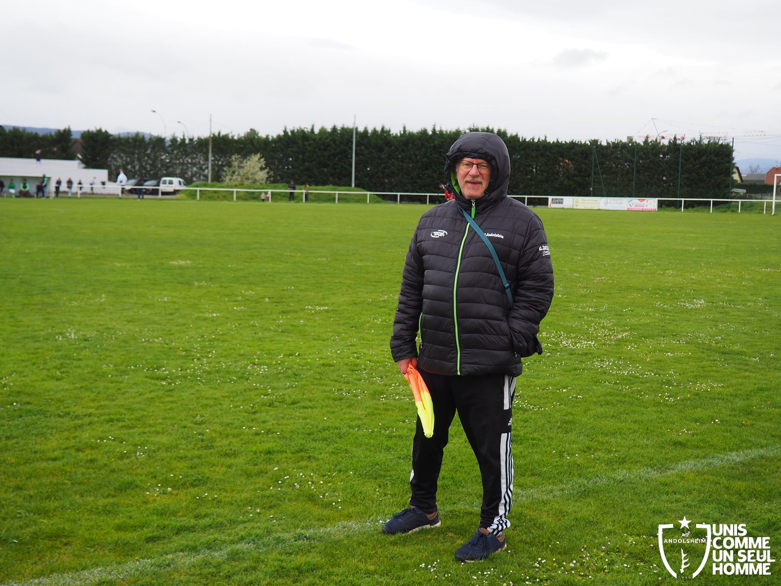 En ce lundi de Pâques gris, venté, et froid, notre équipe fanion visite les doublures de Sainte Croix en Plaine pour le championnat de district 3. Nos garçons réalisent, comme vous le savez chers lecteurs, une saison si bonne que même le journal l’Alsace, pourtant avare de compliments, écrit à présent que « l’ASA survole son sujet » ou « marche sur l’eau ». Yo ! … C’est pour quand le reportage Téléfoot ? Restons calmes. Commençons d’abord par attendre l’arbitre pour ce match matinal… Il ne viendra jamais. Panne d’oreiller ? Changement d’heure oublié ? Peur de l’importance de l’événement ? On ne le saura jamais… Mais le match commence finalement à 10 h 22 , sous un arbitrage principal improvisé, et un arbitrage de touche magistral. Oui, je veux parler, encore une fois, de notre ami Laury, et mentionnons également un public nombreux, et même présidentiel pour L’ASA.