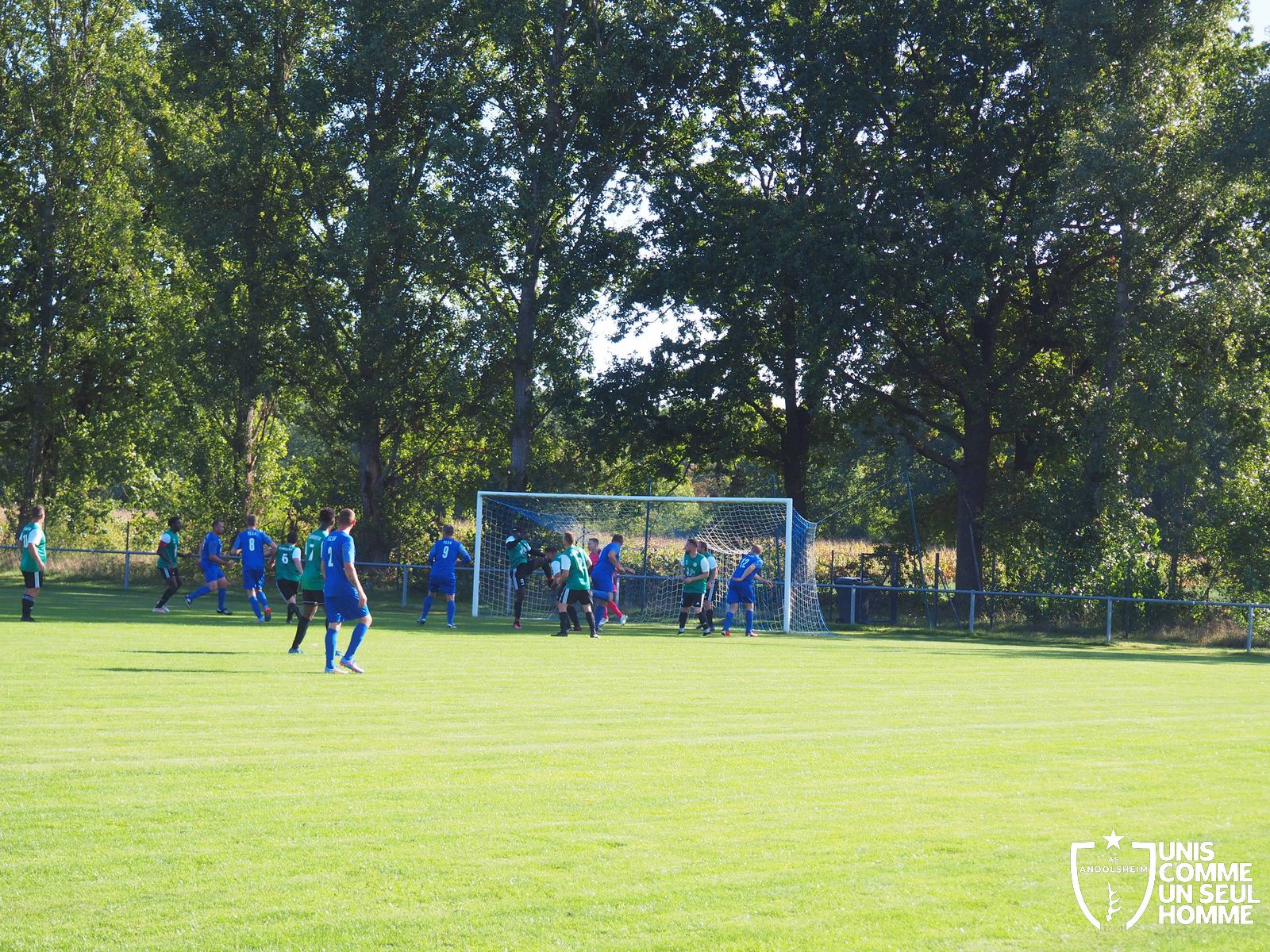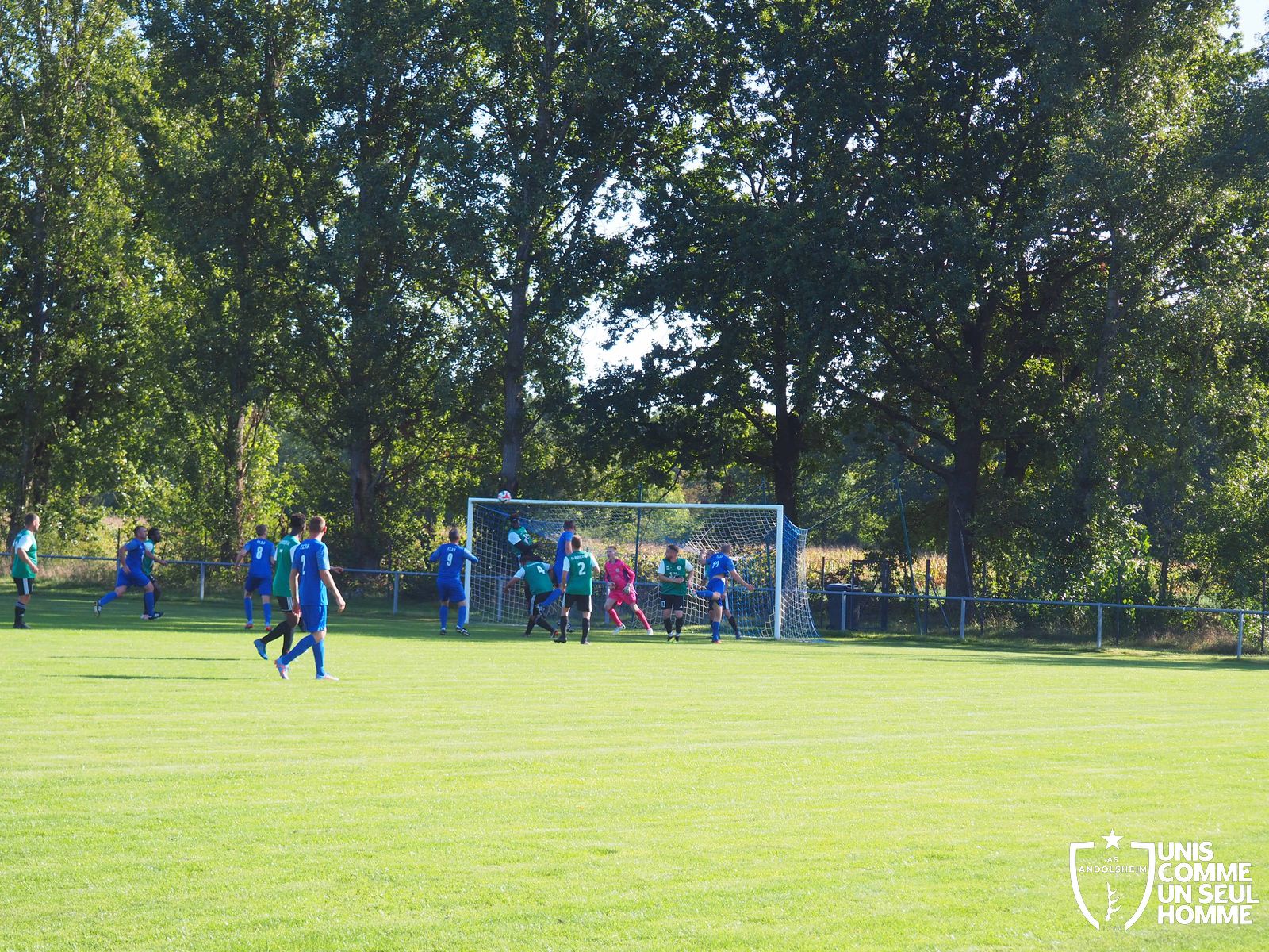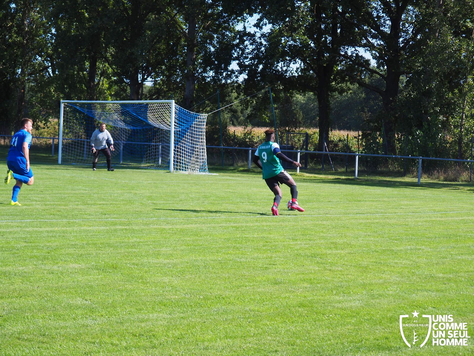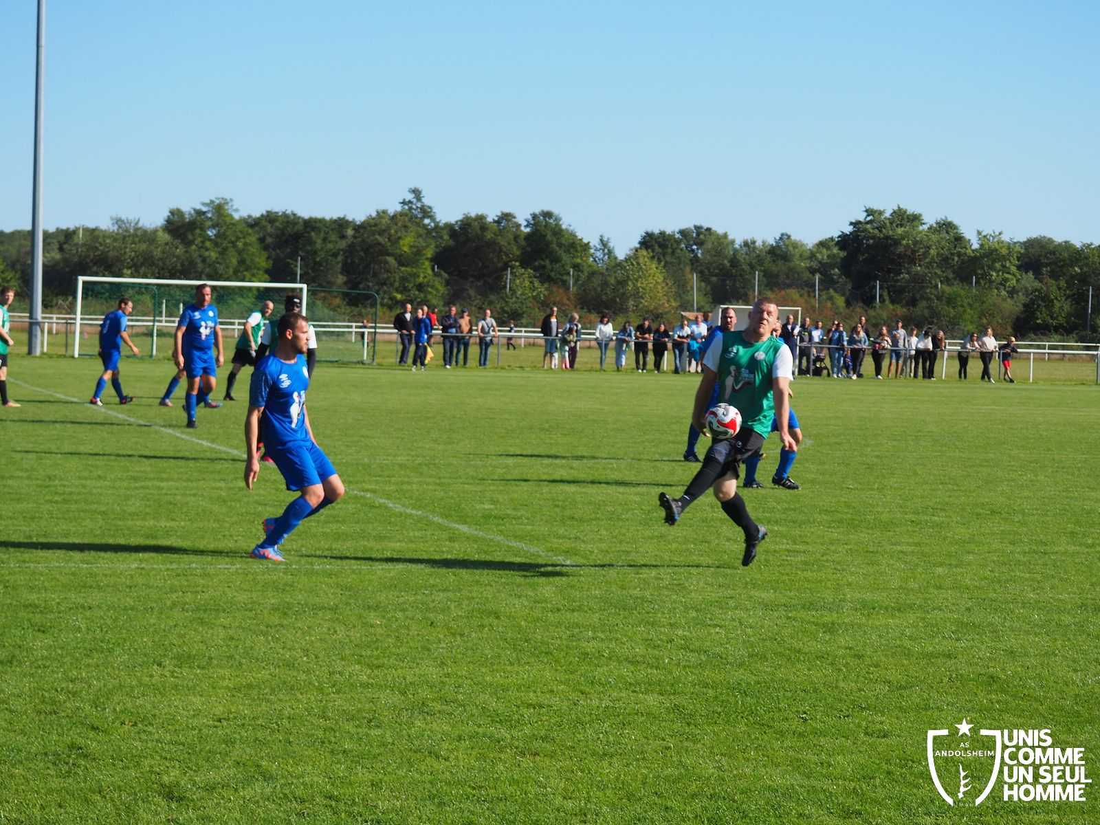 À la vingtième, Luc remet ça : 0 à 2 ! Dix minutes plus tard, le FCOH réduit le score à 1-2. Rien n’est acquis, messieurs ! Les 35 minutes suivantes voient une équipe locale plus précise, plus agressive, proche d’égaliser. Houssen, le retour ? Non… Les bleus ne concrétisent pas au tableau d’affichage… Au contraire des verts, qui tuent le match par Ewen à la 65e et Curtis à la 85e ! L’AS ANDOLSHEIM l’emporte 1 à 4 !