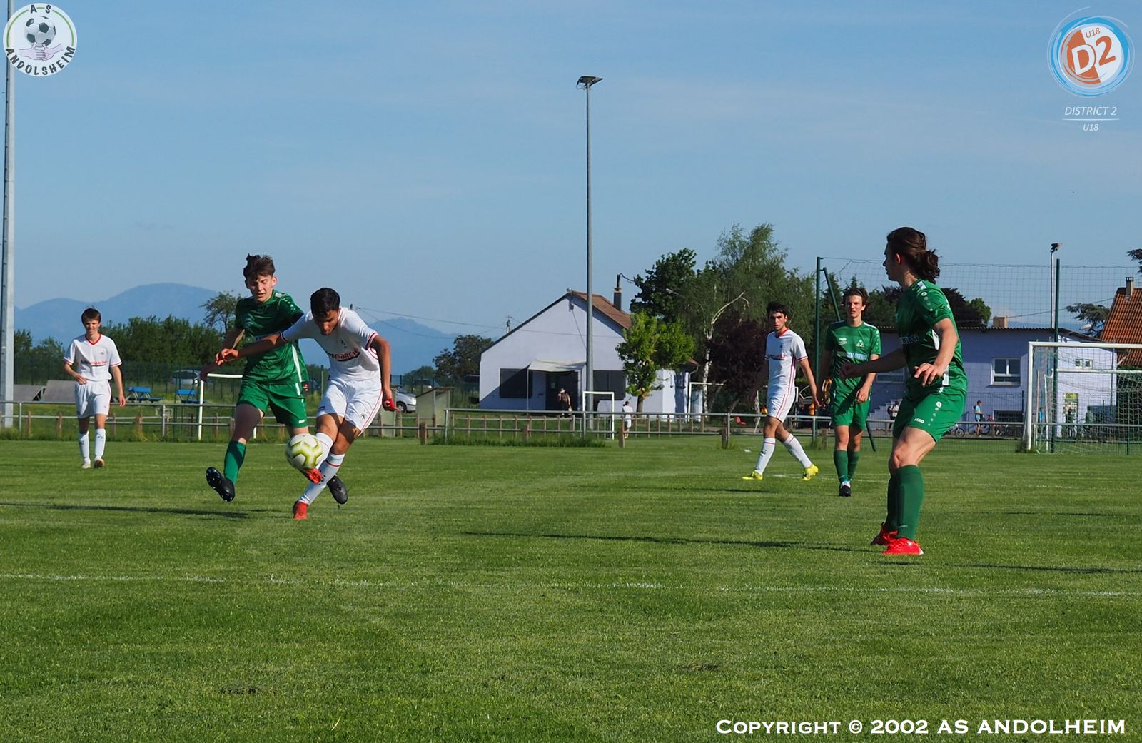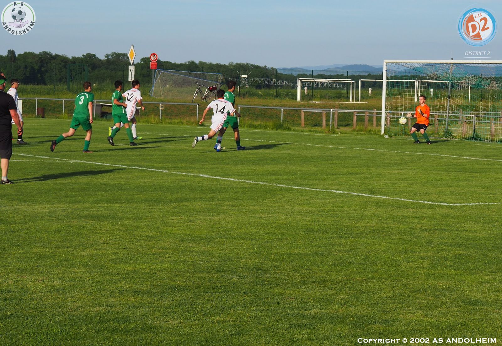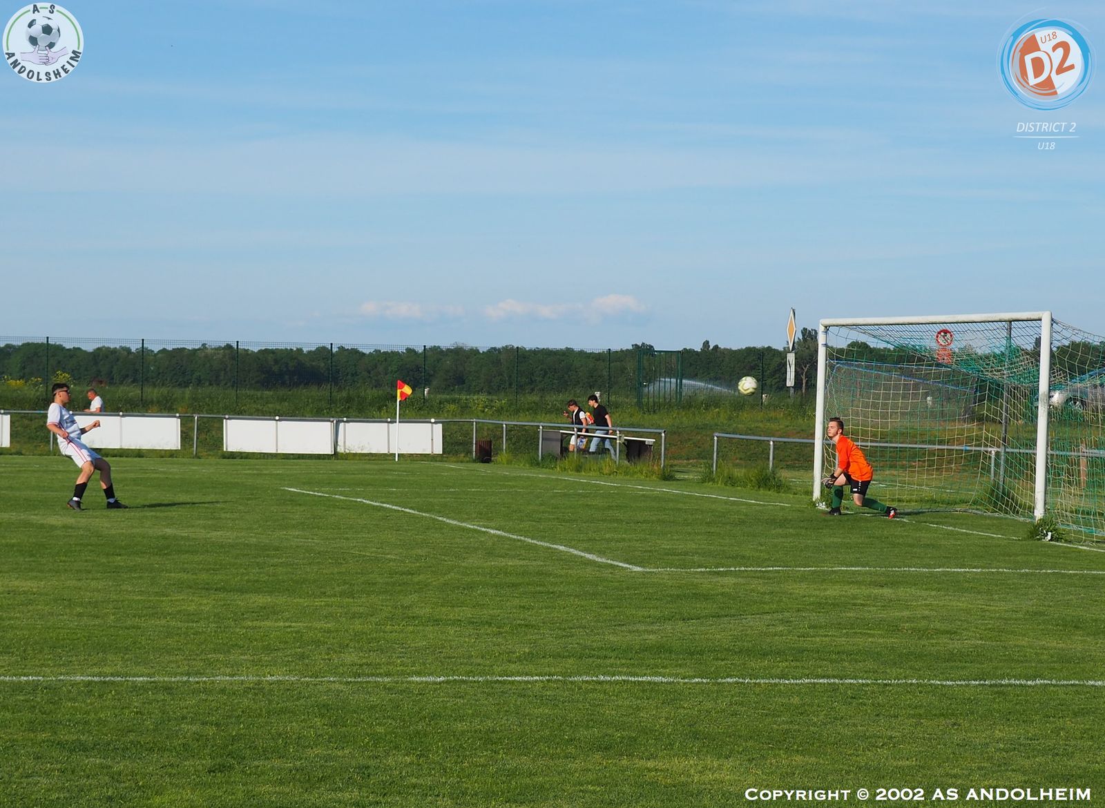 En cette belle soirée de samedi, très chaude, et, avouons-le, parfois un peu fiévreuse, nos 18, qui évoluent en D2, reçoivent Turckheim. Laurie va arbitrer courageusement, au pied levé, puisque l’arbitre officiel nous fait défaut au dernier moment. Merci pour le dépannage ! La rencontre débute bien puisque Mathieu, sur une passe de Valentin, ouvre le score à la 9 ème. Les visiteurs réagissent et égalisent 14 minutes plus tard. Tout est à refaire. Puis, patatras, Andolsheim encaisse deux buts à la 41 ème et la 45 ème. A la pause les locaux sont menés 1 à 3. Dès la reprise, Sacha réduit le score à 2 – 3 en transformant magistralement un penalty, bien vu ! Mais l’AS TURCKHEIM remet ça à la 70 ème et l’emporte 2 à 4 . Ce n’est pas catastrophique. Nos 18 sont toujours en milieu de tableau, ont des matches de retard, des joueurs blessés mais convalescents, et l’équipe de Laouari et Thomas peut donc encore marquer beaucoup de points cette saison. C’est une saison très correcte et elle est loin d’être terminée, Messieurs, ne lâchez rien !
