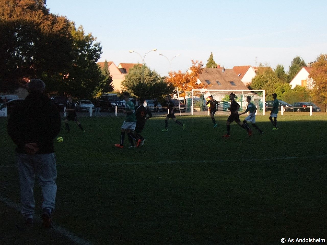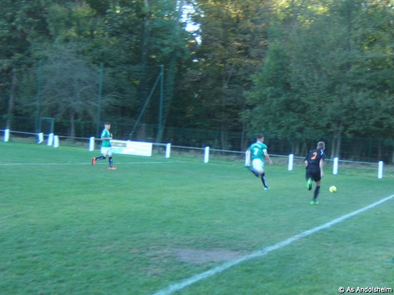 "Nos U18 jouaient samedi 15 octobre à Widensolen pour rencontrer une équipe qu’ils battent généralement sur leur terrain. Dès la 20 eme seconde les locaux ont failli marquer, et ils eurent beaucoup plus d’actions que l’ASA sur l’ensemble de la première période. Ando s’en tire bien à la pause avec un score vierge. Peut-être que la grotte de Widensolen , située à 100 m de là et justement dédiée à la vierge, leur porte bonheur. Nos garçons ouvrent le score à la 60 eme minute suite à un dribble à double contact , précision technique de Jean Matter, et à un tir tendu foudroyant de Dicklan. La municipalité de Widensolen va devoir demander une aide de l’Etat pour faire réparer le filet. Mais mener n’est pas gagner. En 20 minutes nous encaissons 3 buts dont un sur penalty. 3 à 1 pour le club hôte. Prier à la grotte n’a pas suffi.De notre envoyé spécial à Widensolen."