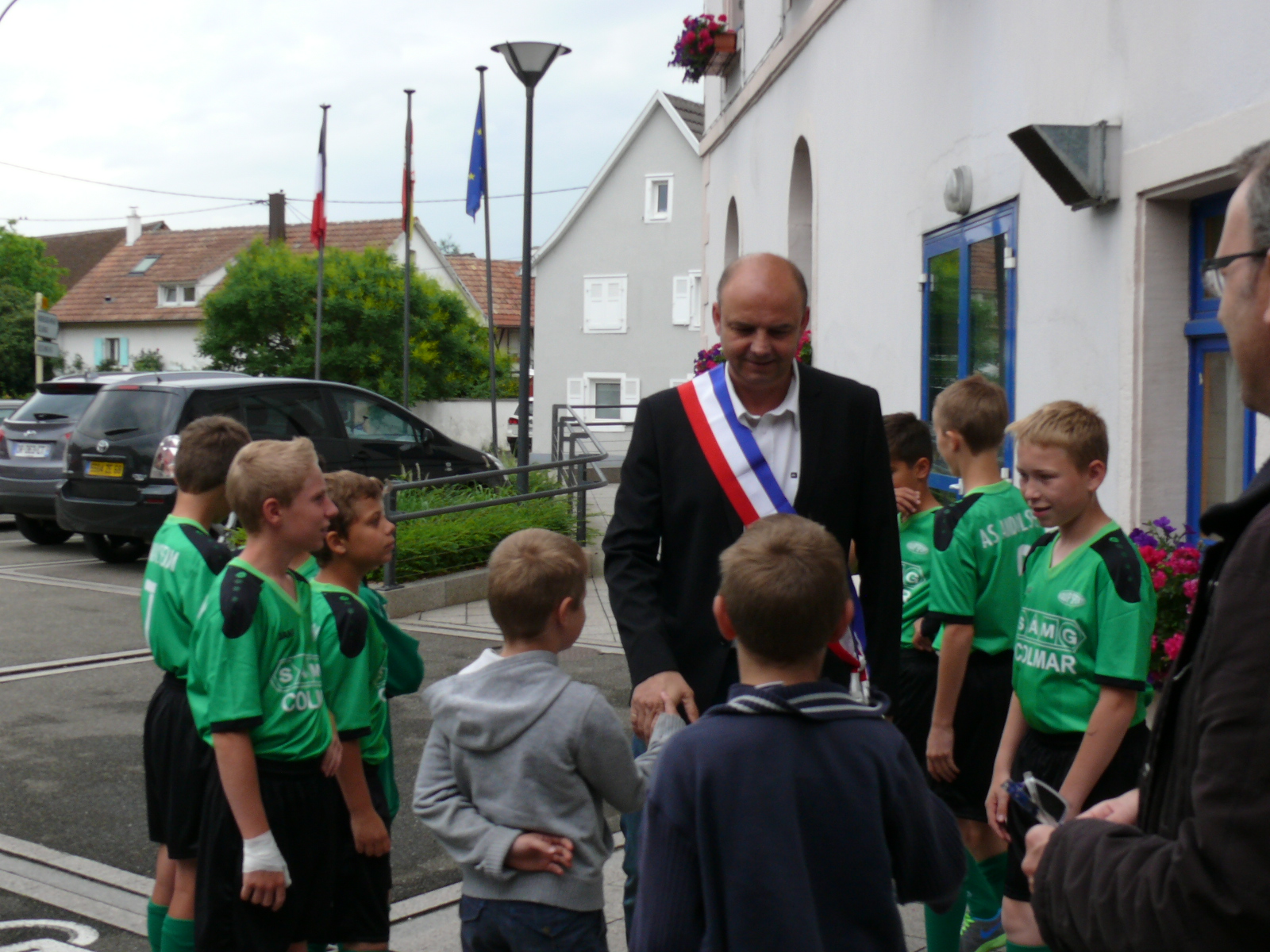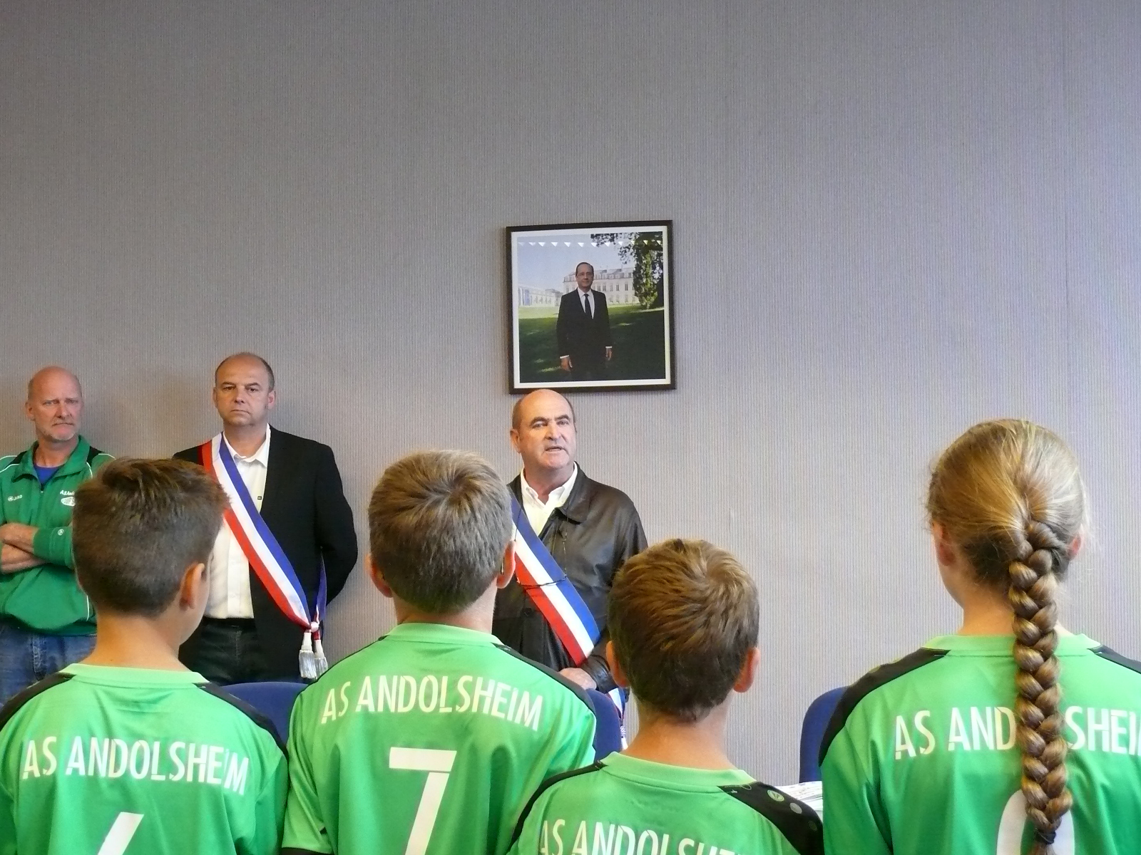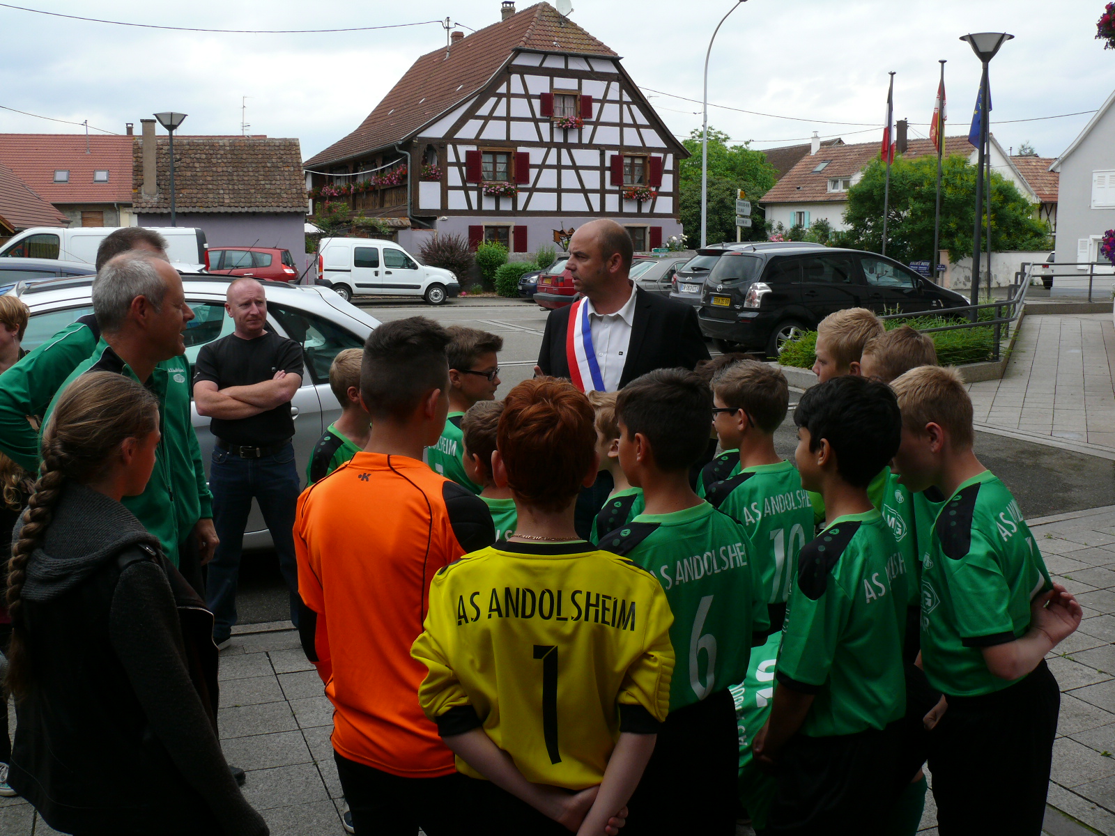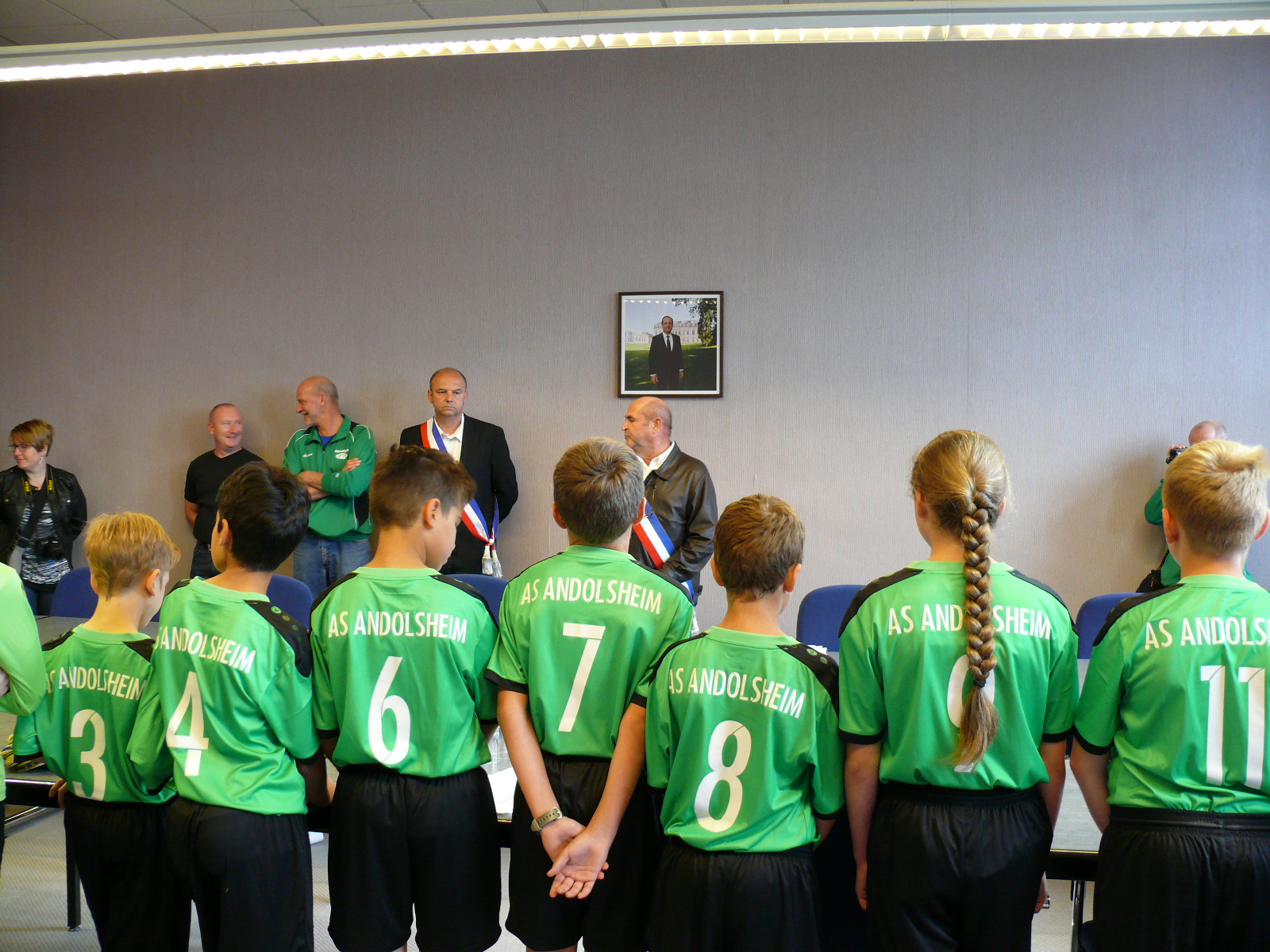 Samedi matin 20 juin 2015, à la mairie, la commune a reçu l’équipe des U13/2 de l’ASA pour l’obtention de son titre de champion. En l’absence du maire, retenu par d’autres obligations, ce fut l’adjoint Raymond Husser, accompagné de l’adjoint Francis Bonzon, qui a présidé la cérémonie.