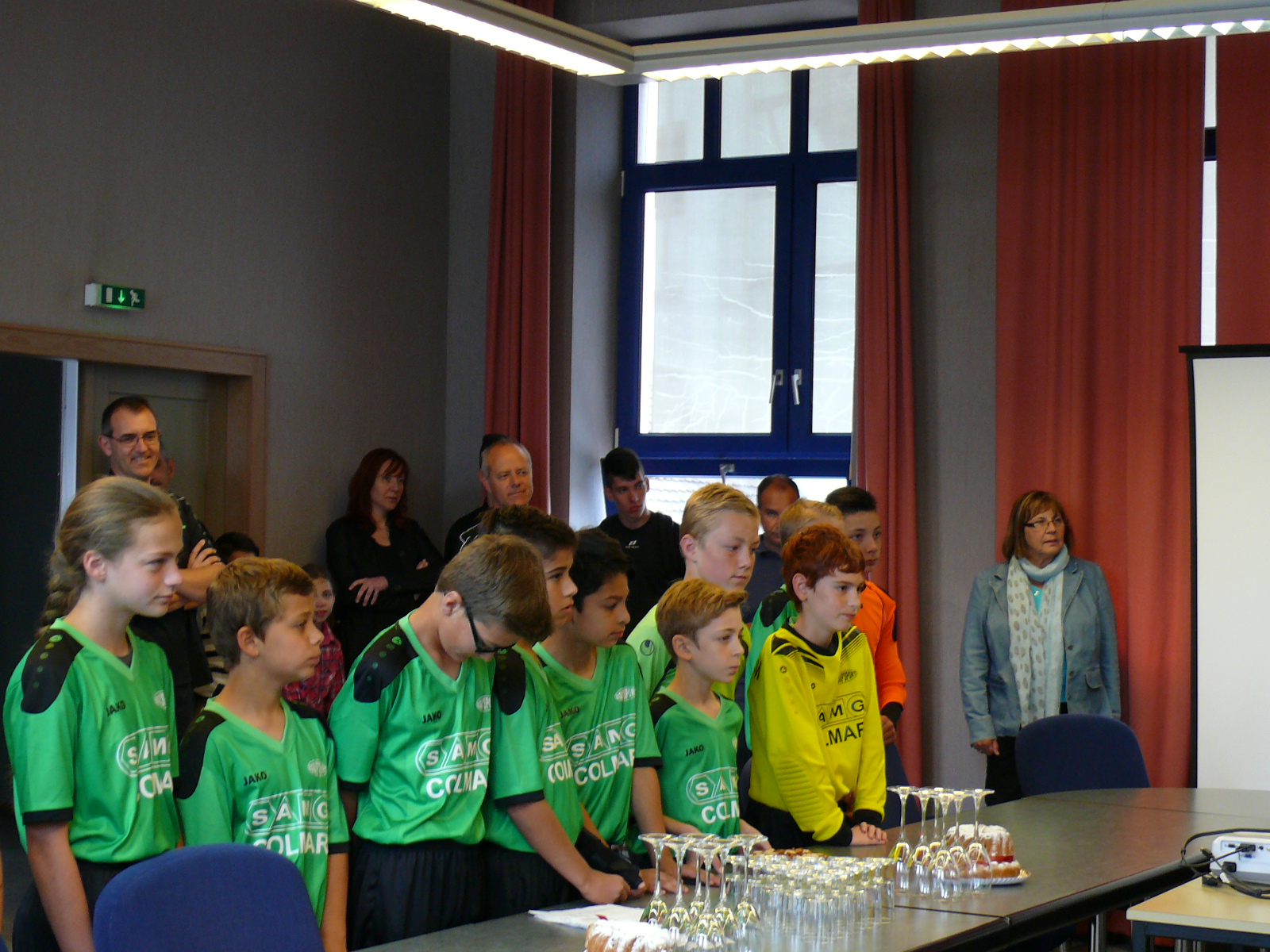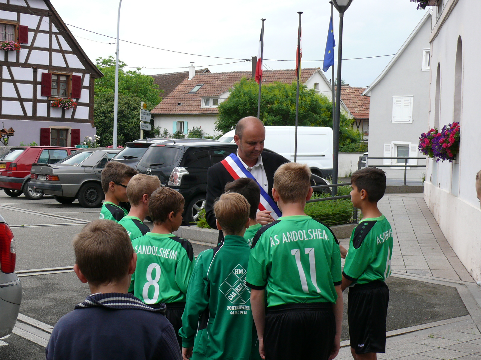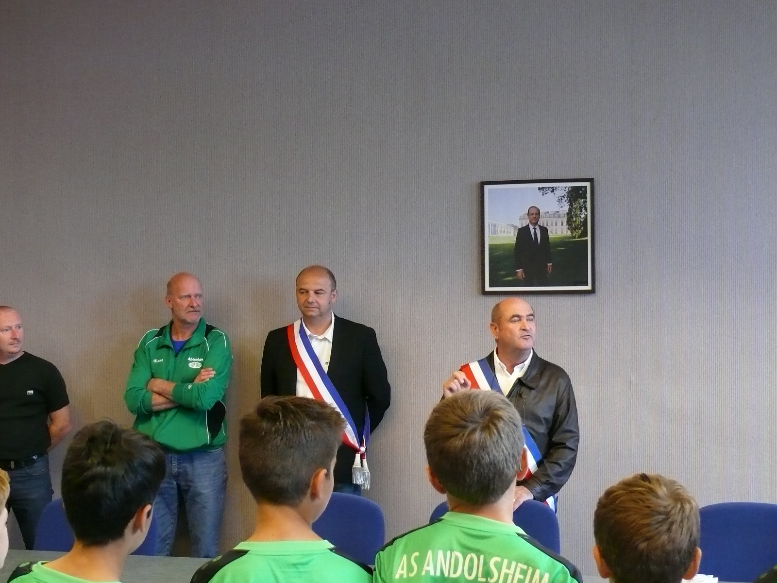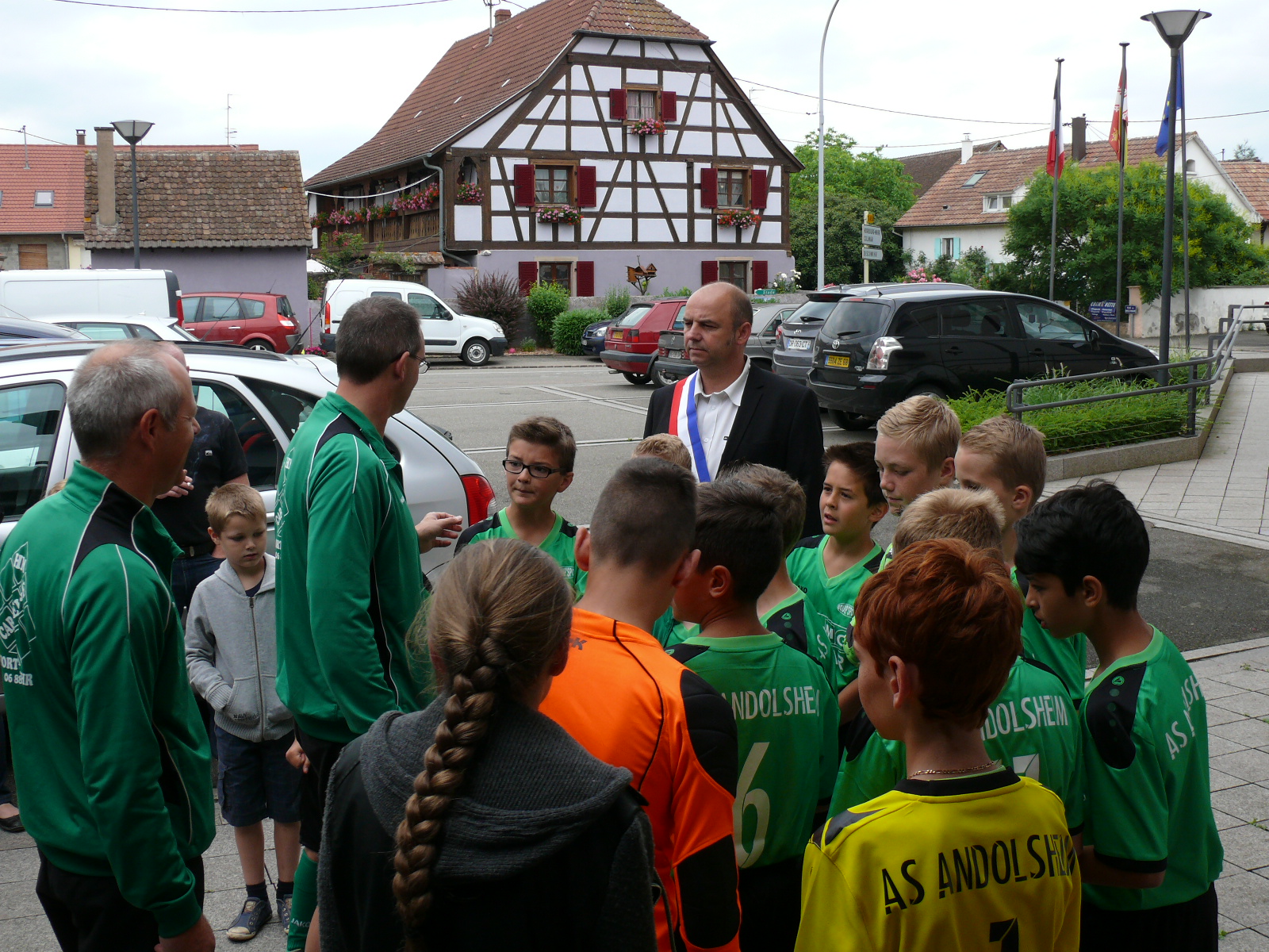 Samedi matin 20 juin 2015, à la mairie, la commune a reçu l’équipe des U13/2 de l’ASA pour l’obtention de son titre de champion. En l’absence du maire, retenu par d’autres obligations, ce fut l’adjoint Raymond Husser, accompagné de l’adjoint Francis Bonzon, qui a présidé la cérémonie.